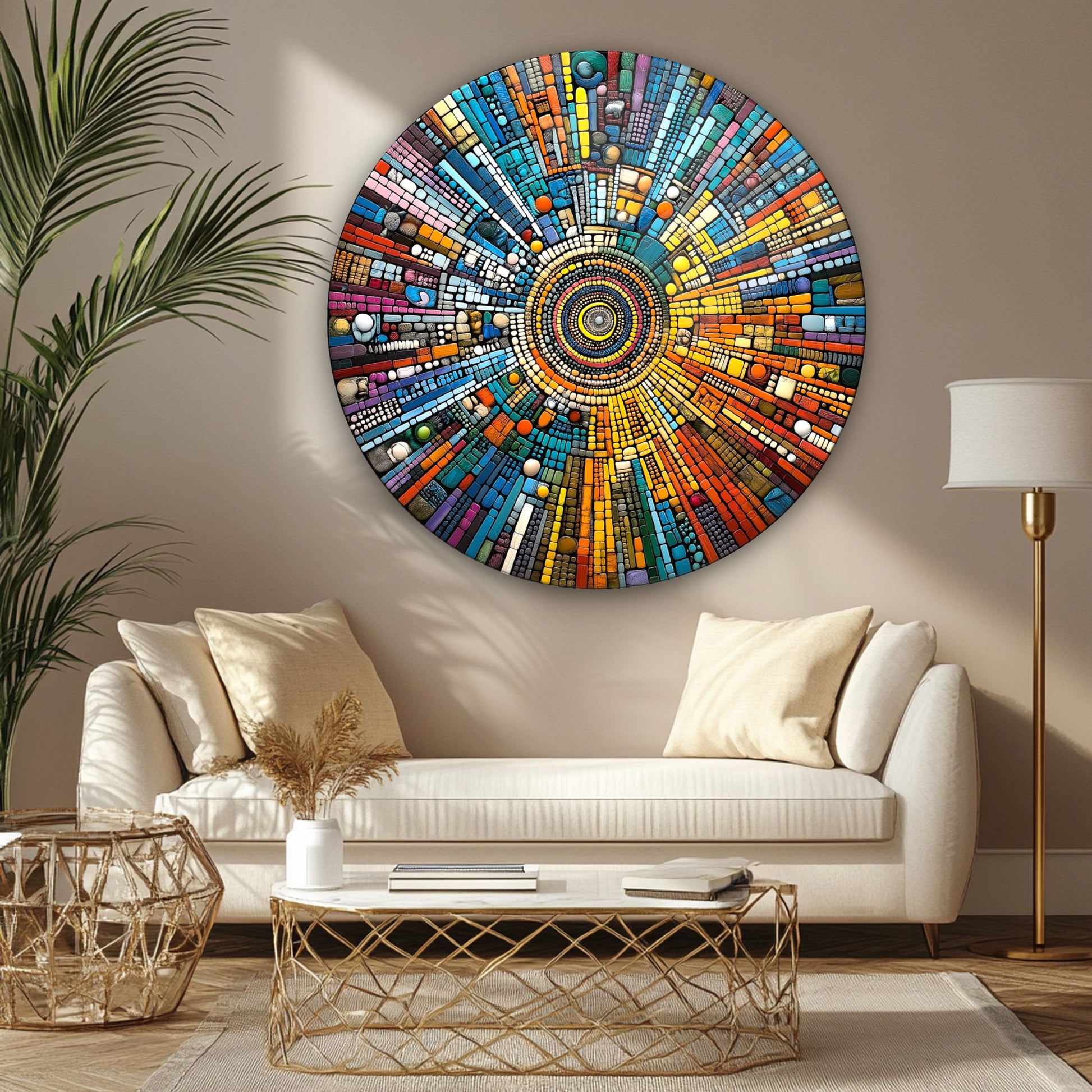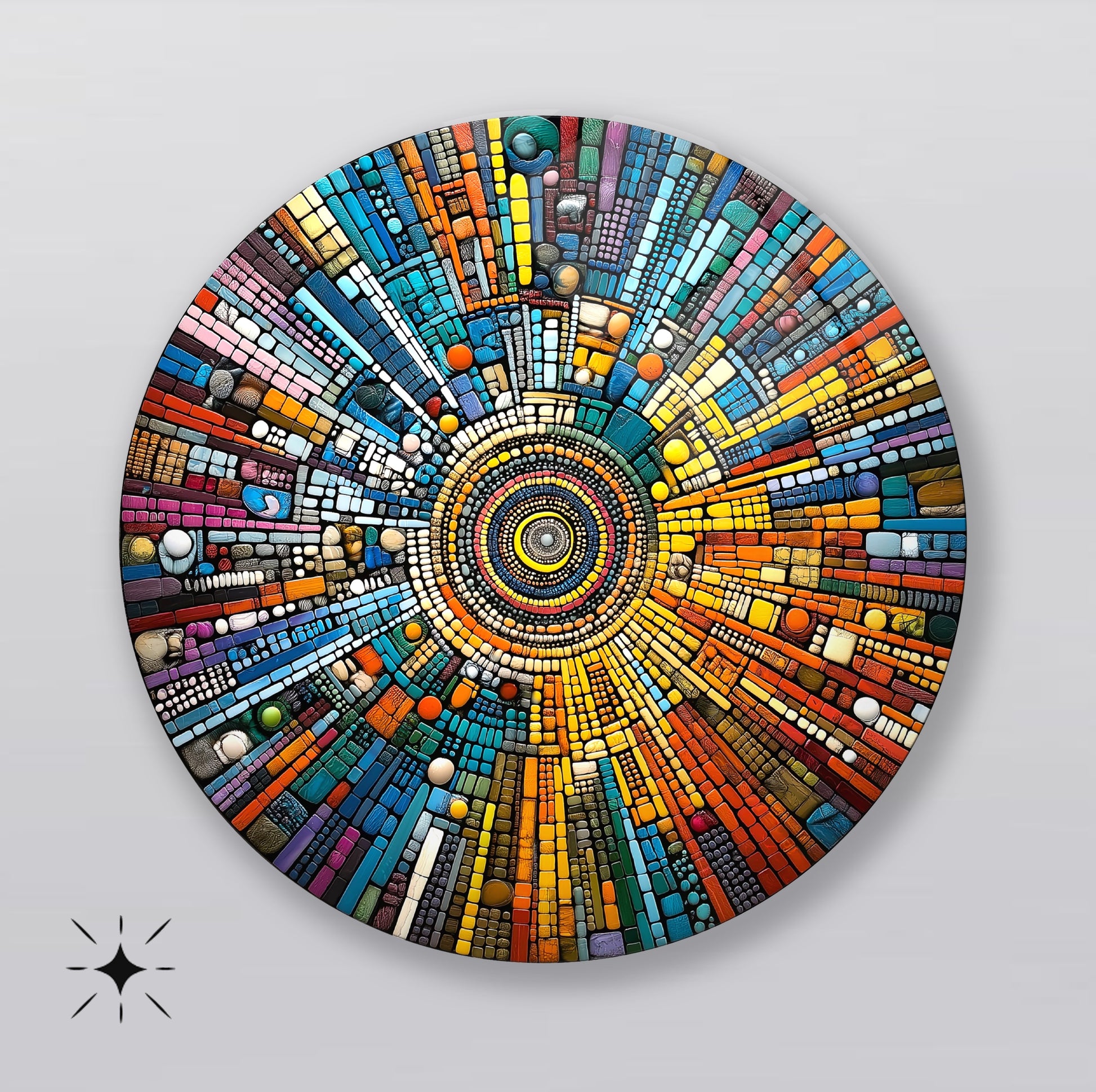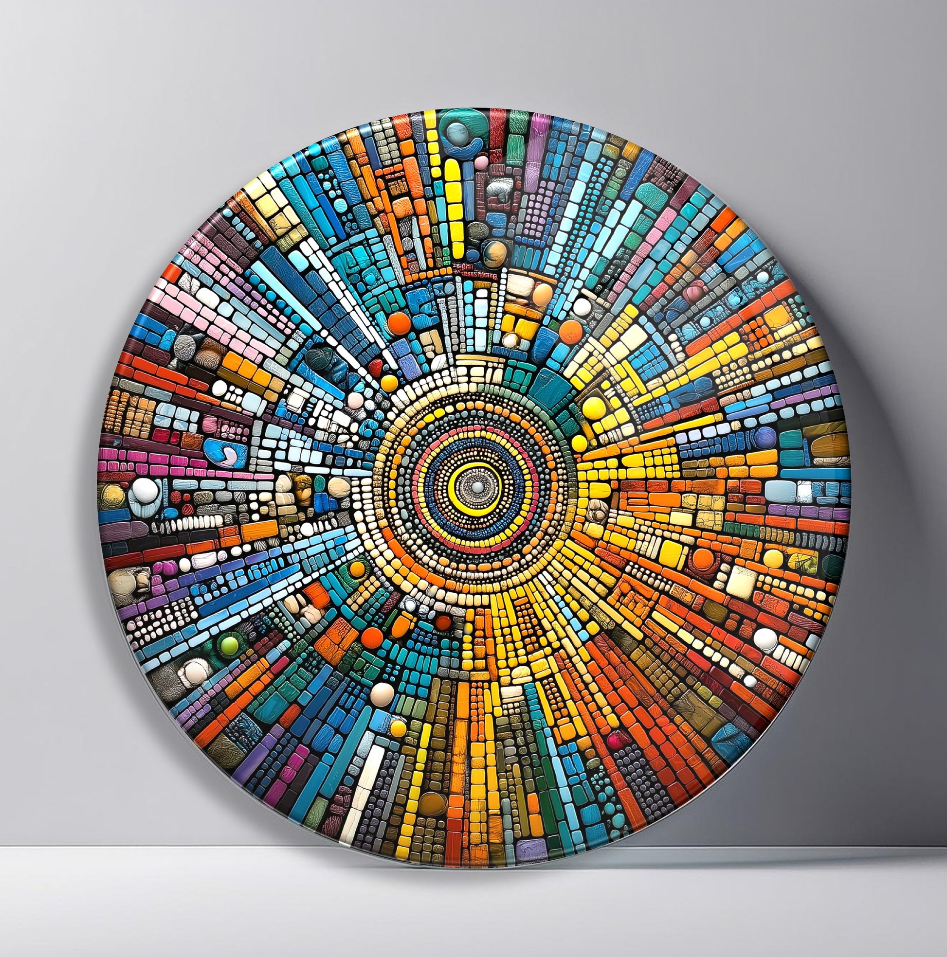 Soyut Mozaik Desen Yuvarlak Cam Tablo