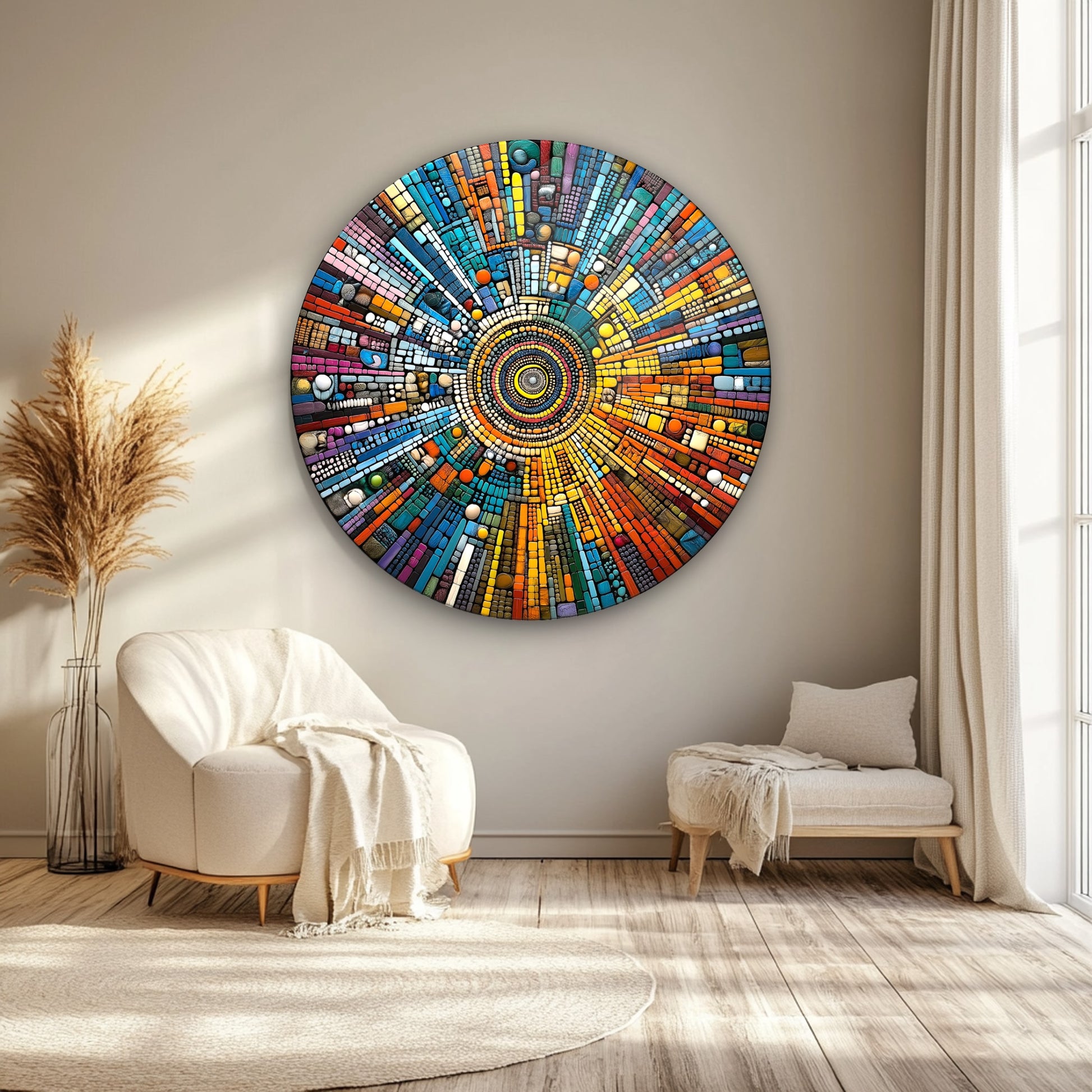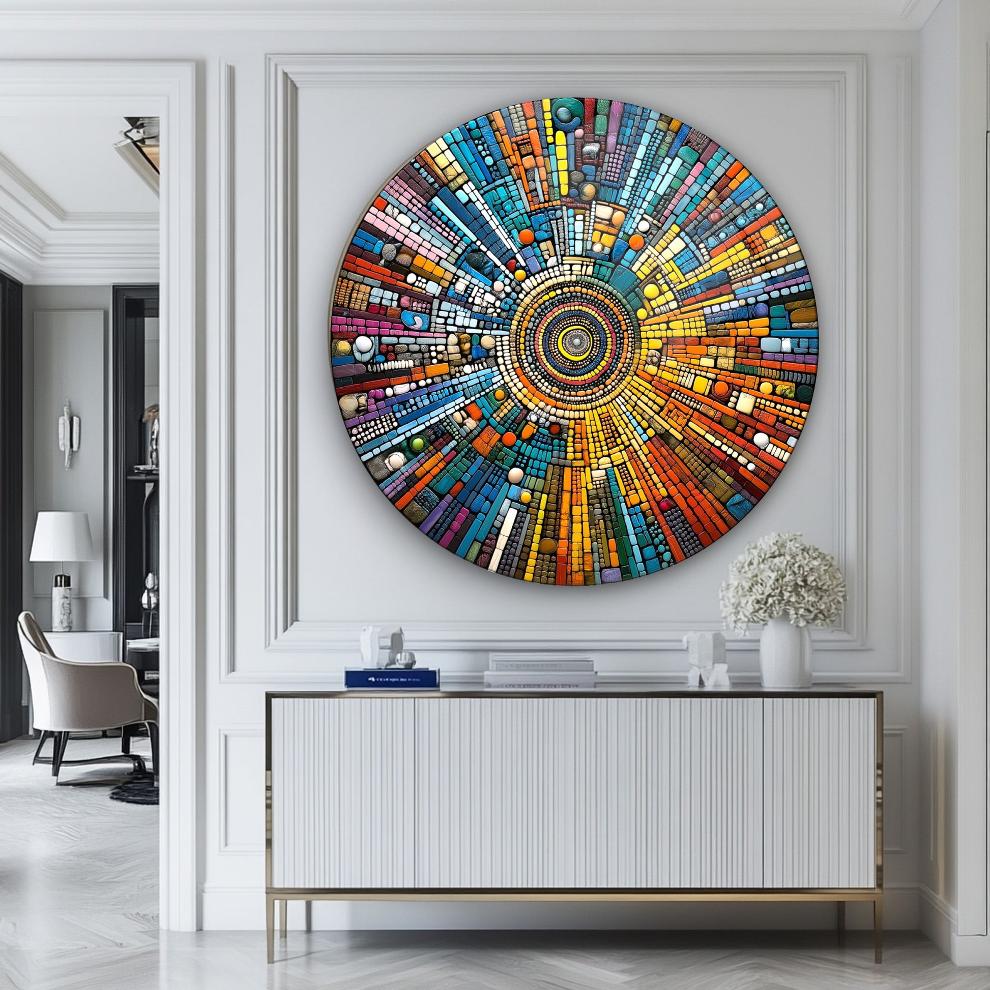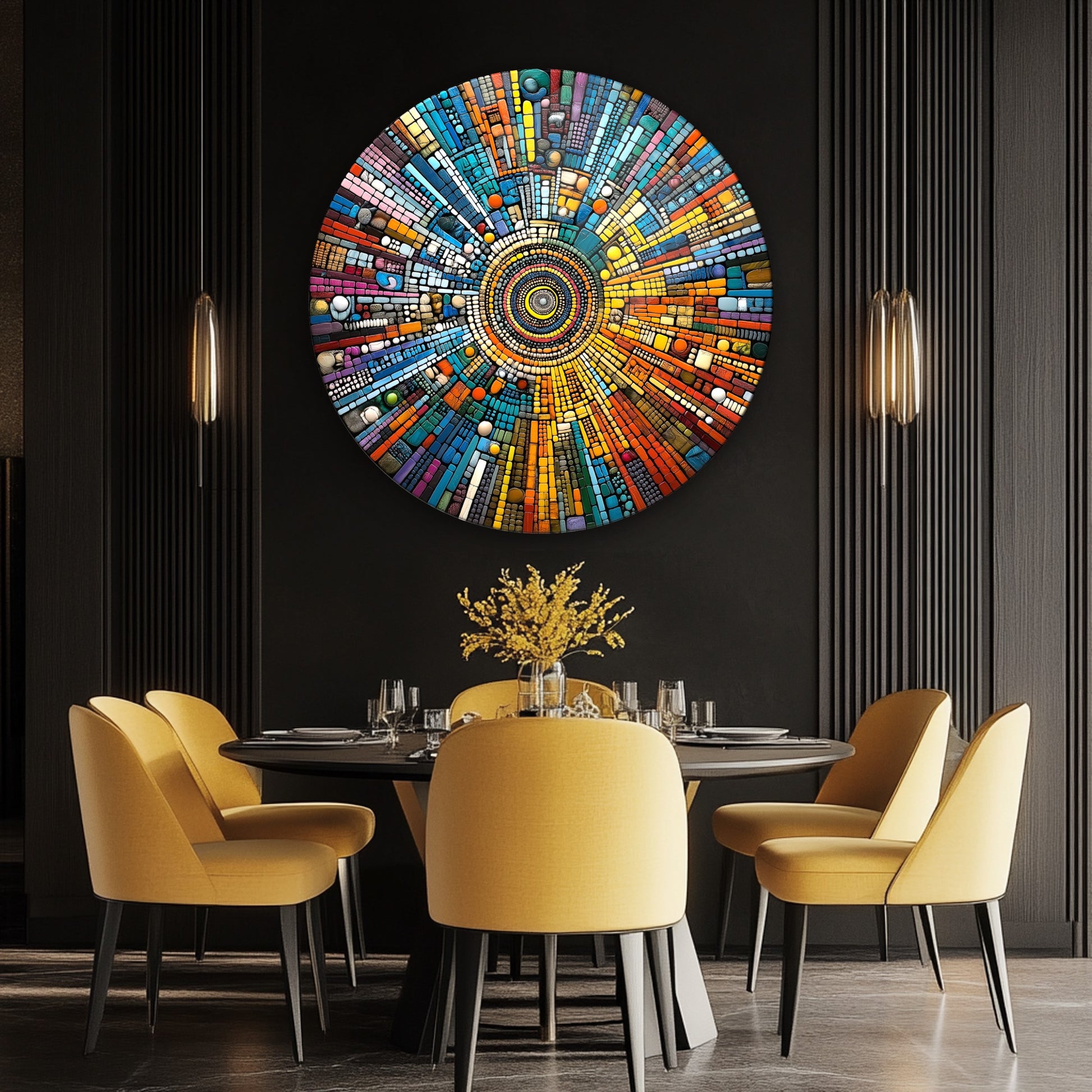 Soyut Mozaik Desen Yuvarlak Cam Tablo