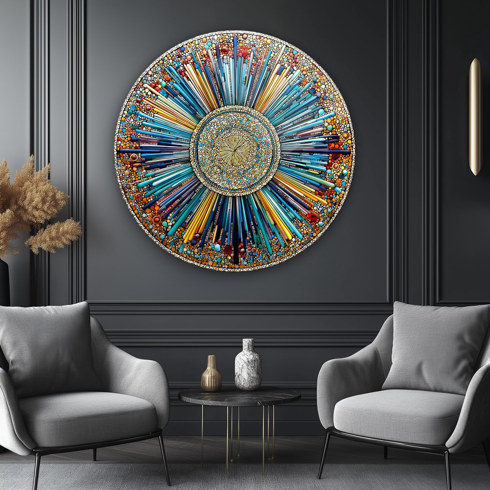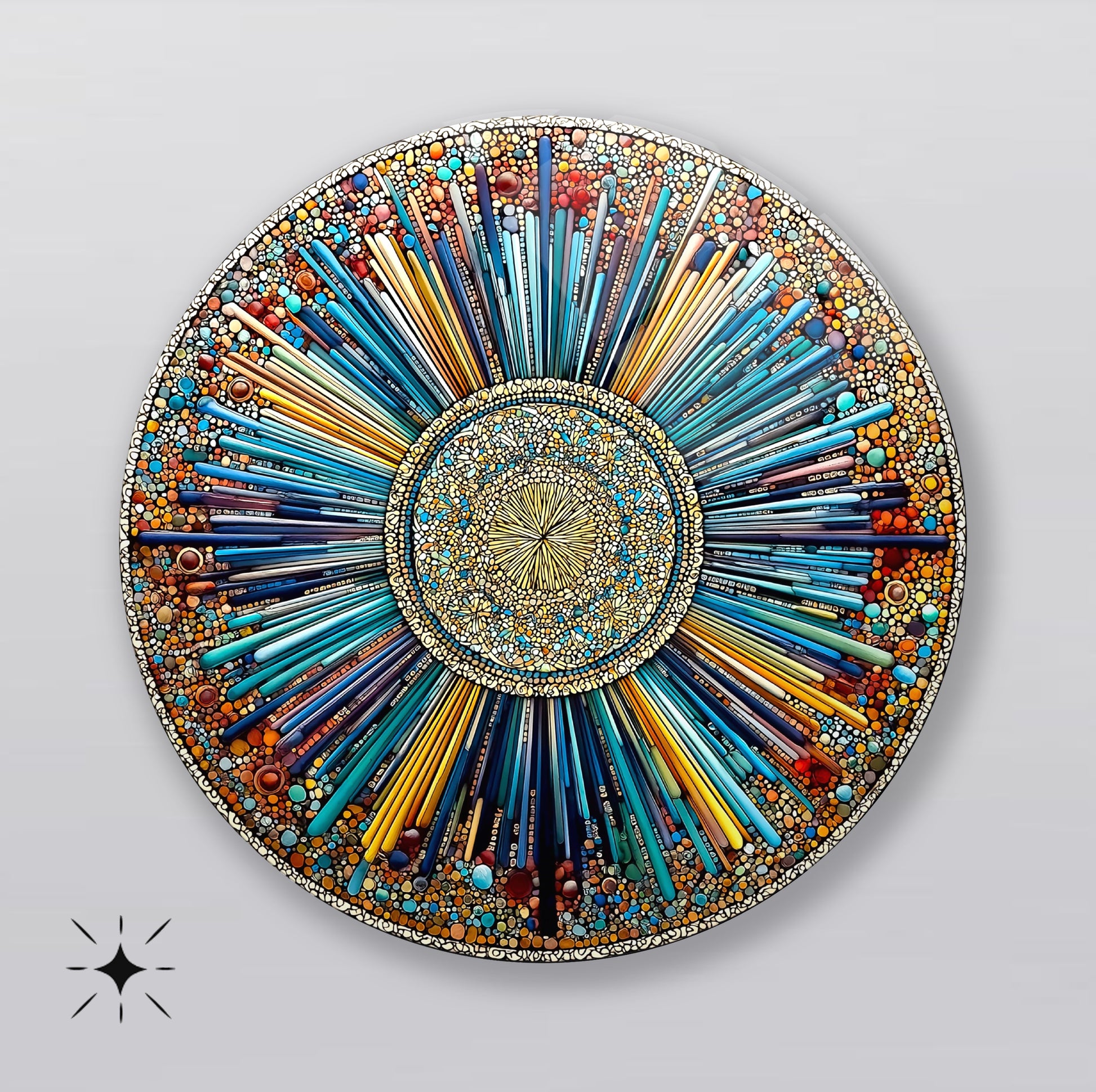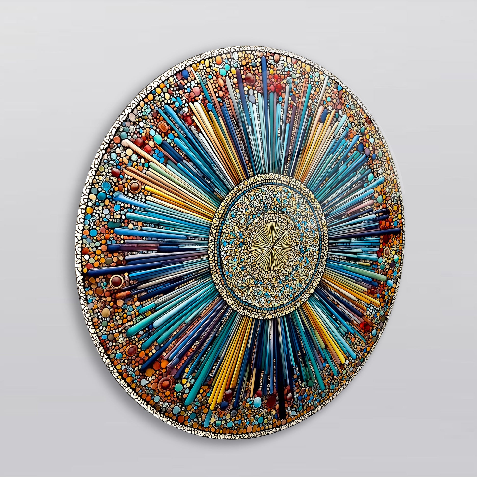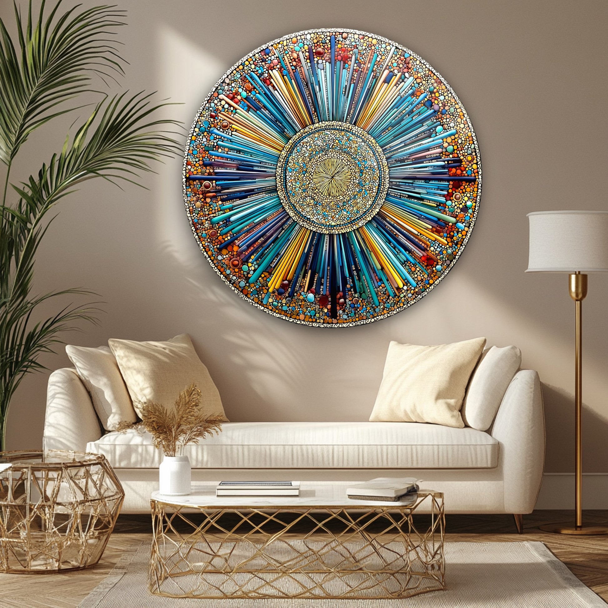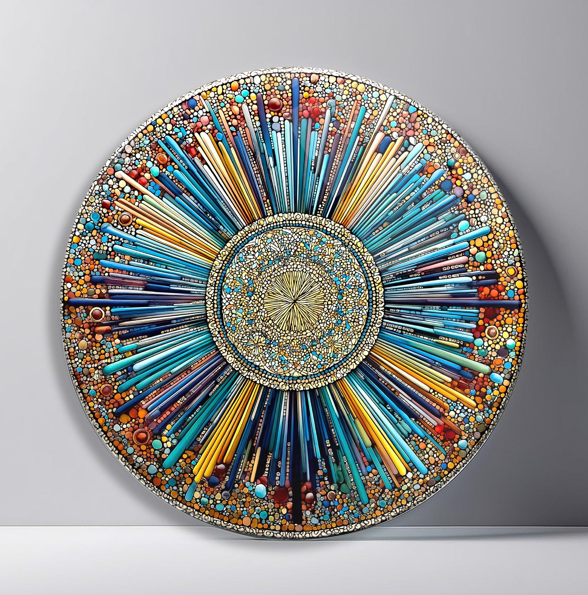 Soyut Mozaik Desen Yuvarlak Cam Tablo