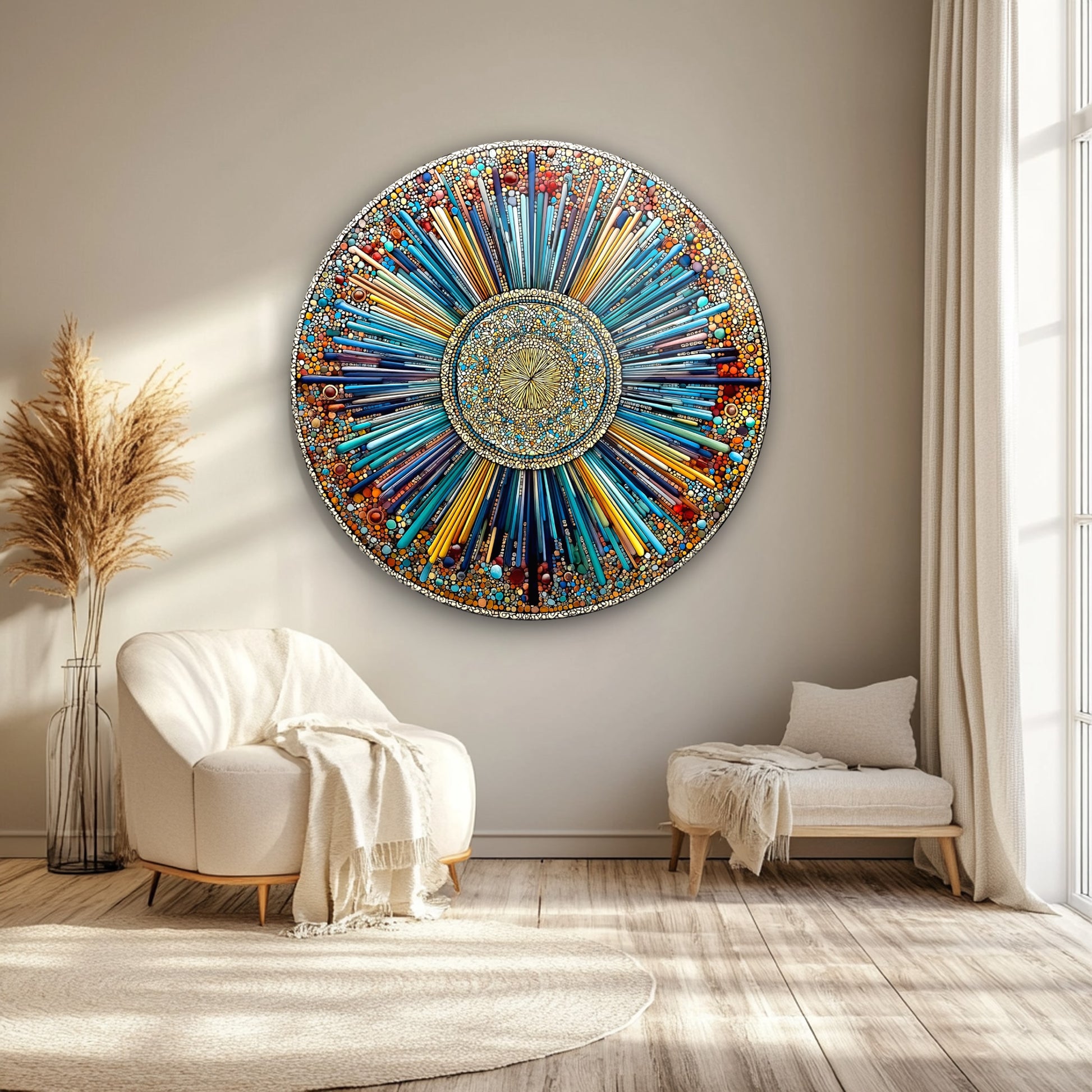 Yuvarlak cam tablolar, klasik çerçeve formlarından farklı, modern ve yaratıcı bir dekorasyon arayanlar için mükemmel bir seçimdir. Ultra-clear temperli cam ve HD UV baskı teknolojisi ile üretilmiştir, bu sayede renkler canlı kalır ve solmazRodajlı kenarlar sayesinde güvenli kullanım sağlanırken, çizilmeye dayanıklı yüzeyi uzun ömürlü kullanım sunar. Özellikle yatak odası, oturma odası ve çalışma alanları için benzersiz bir dekoratif unsurdur. Kolay montaj için tüm aksesuarlar kutu içeriğine dahildir.
