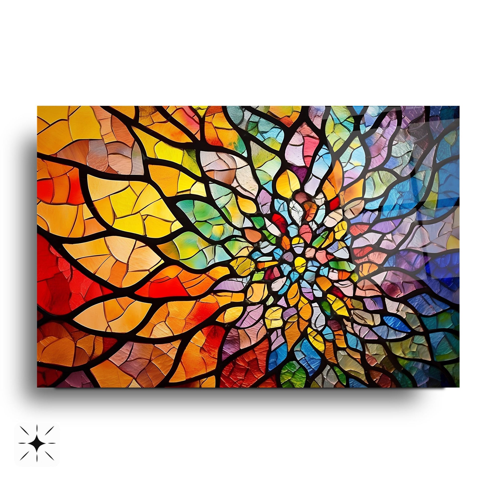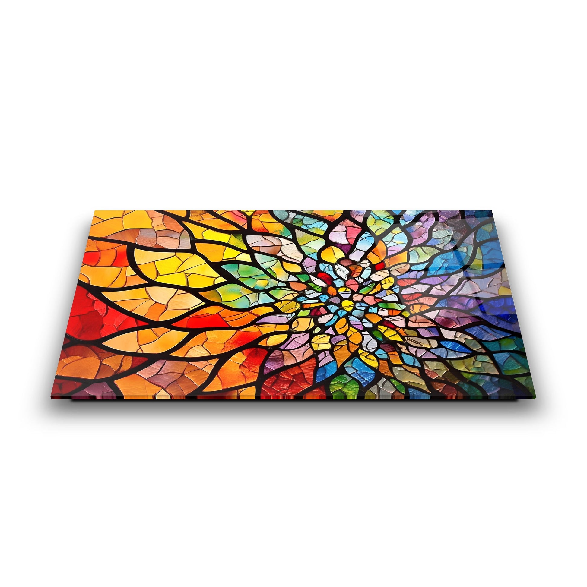 CamDeko'dan ev ve iş yerlerinize huzur ve sanatsal bir derinlik katan özel bir eser: Renkli Soyut Vitray Desen Mandala Kırılmaz Modern UV Baskı Cam Tablo! İçsel dengeyi ve evrensel uyumu simgeleyen Mandala'nın büyüleyici vitray desenleri ve canlı renkleriyle yaşam alanlarınıza dinamik ve huzurlu bir atmosfer katıyor.