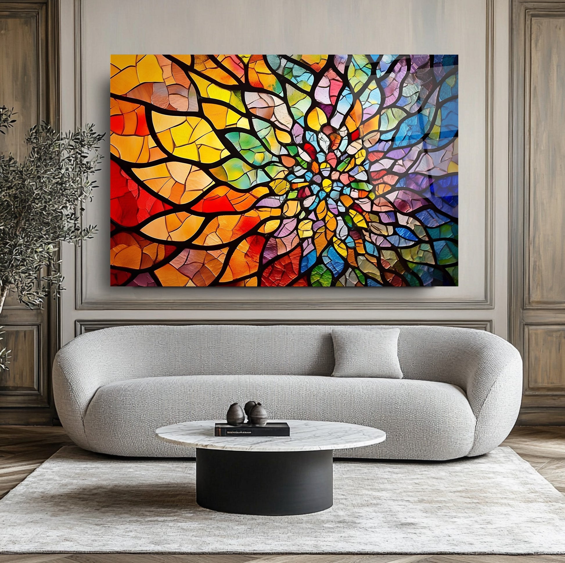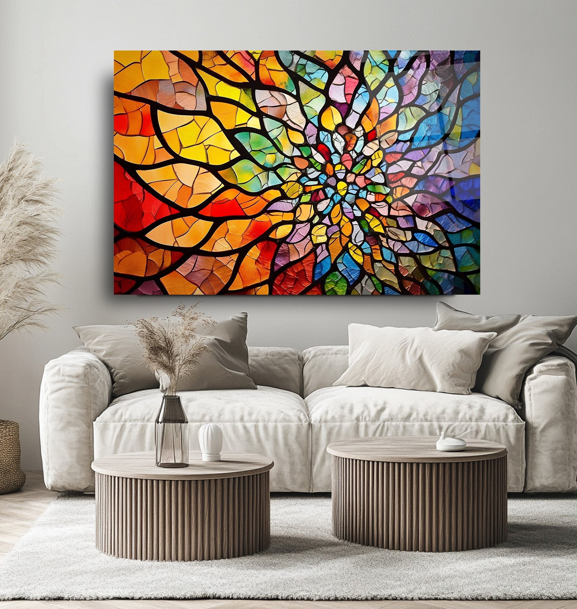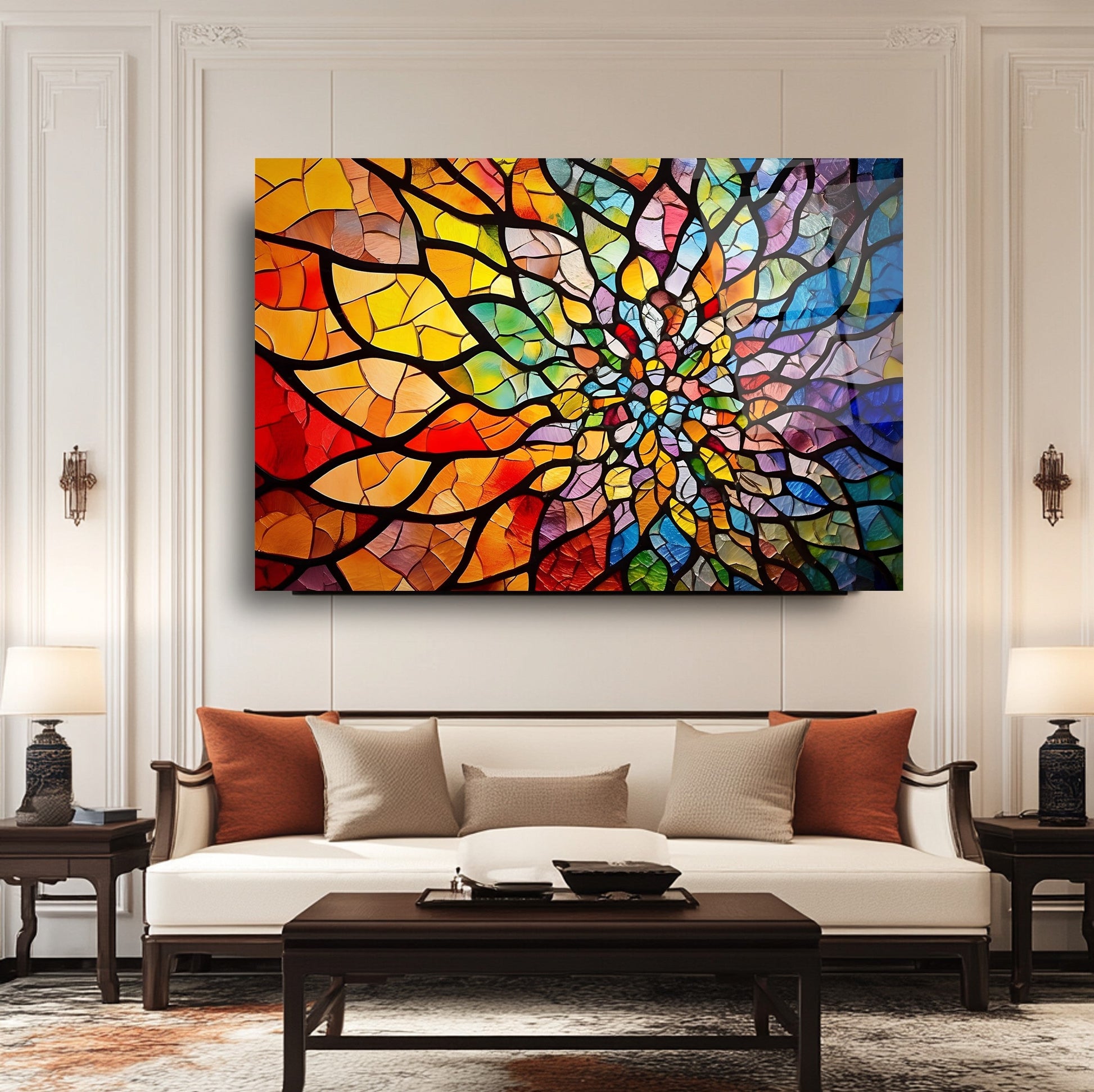 Mekanlarınıza Renkli Bir Sanat ve Huzur Katın: Vitray Desen Mandala Cam Tablo