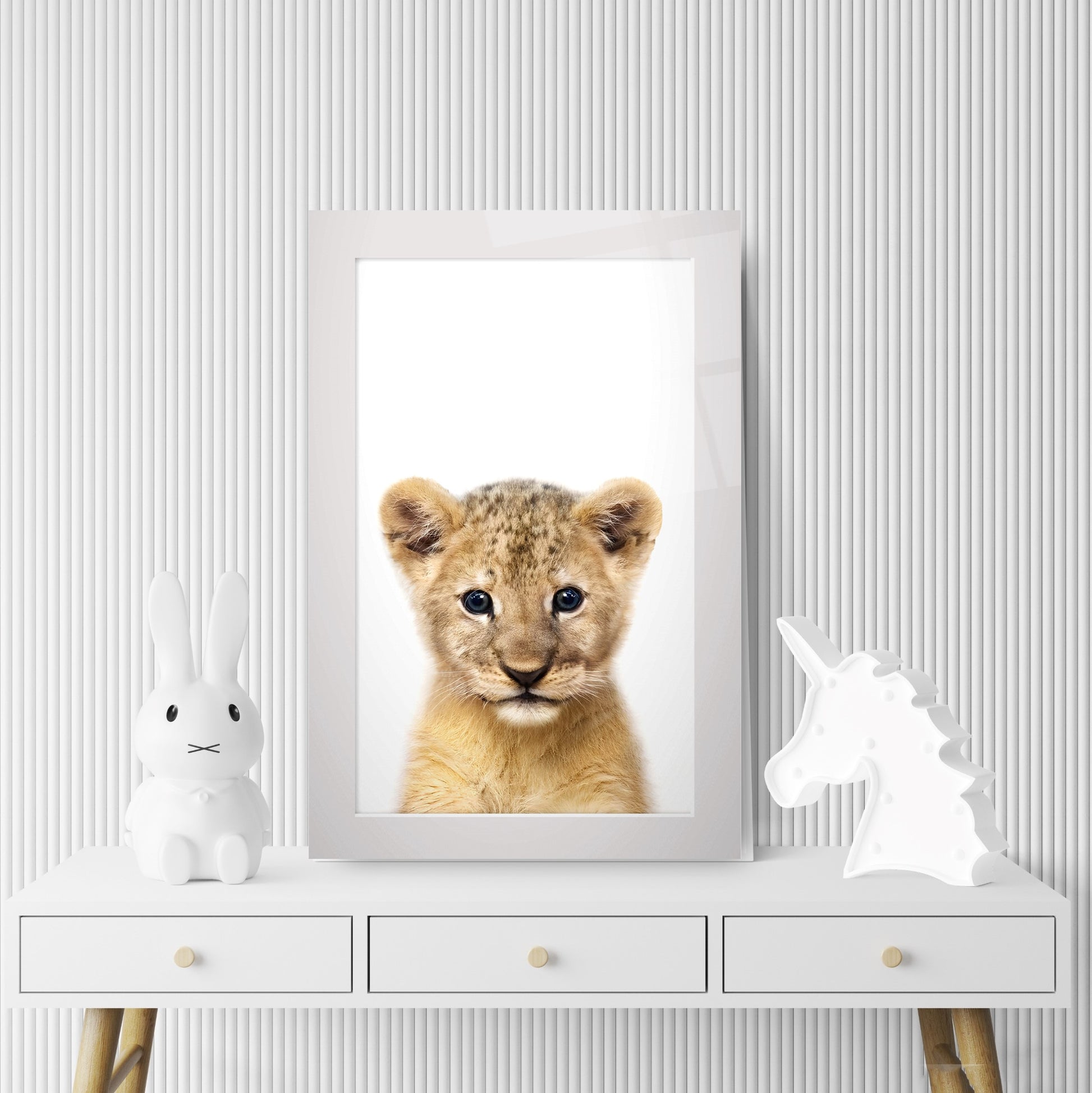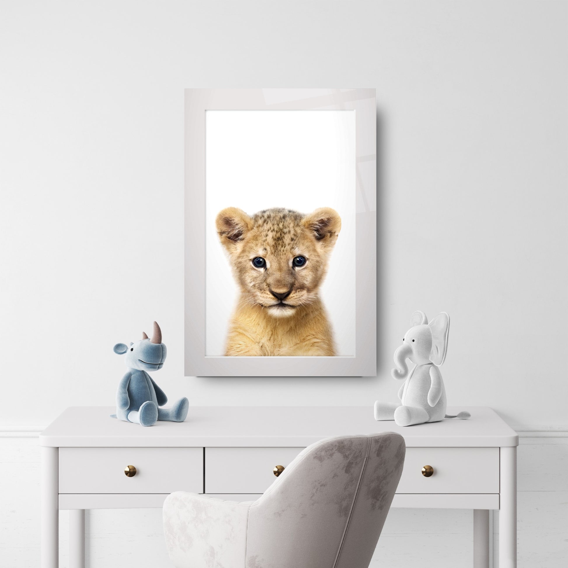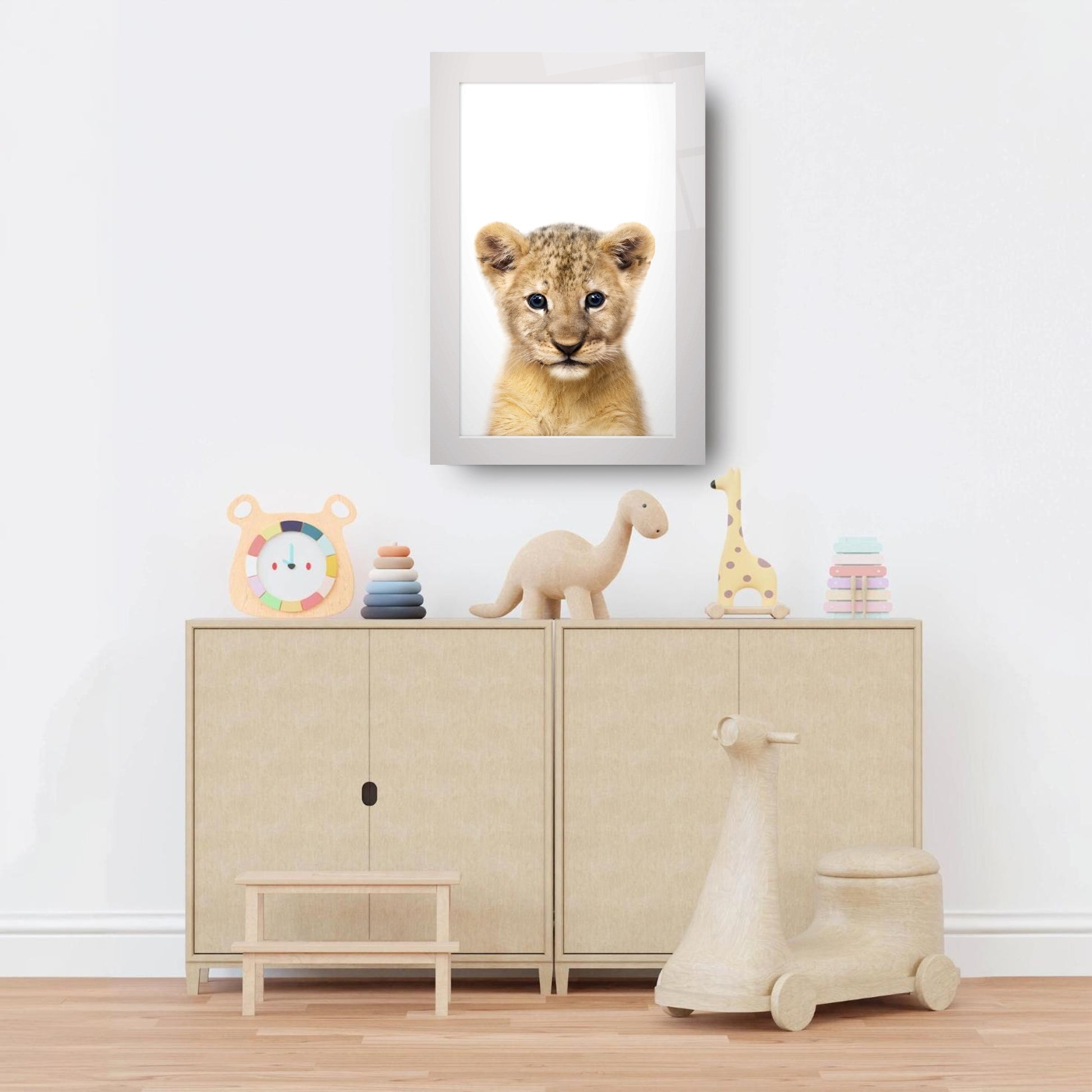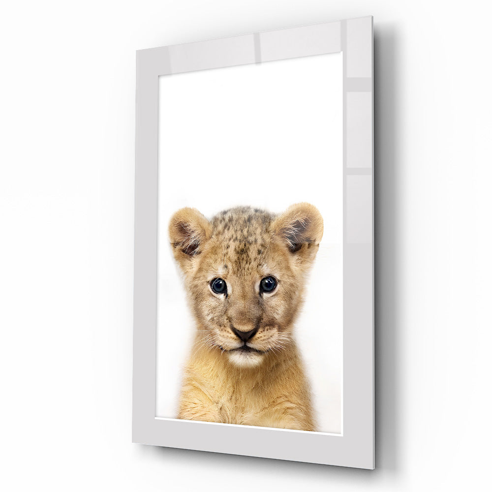 Çocuk ve Bebek Odalarına Huzur Katan: Sevimli Yavru Aslan Cam Tablo