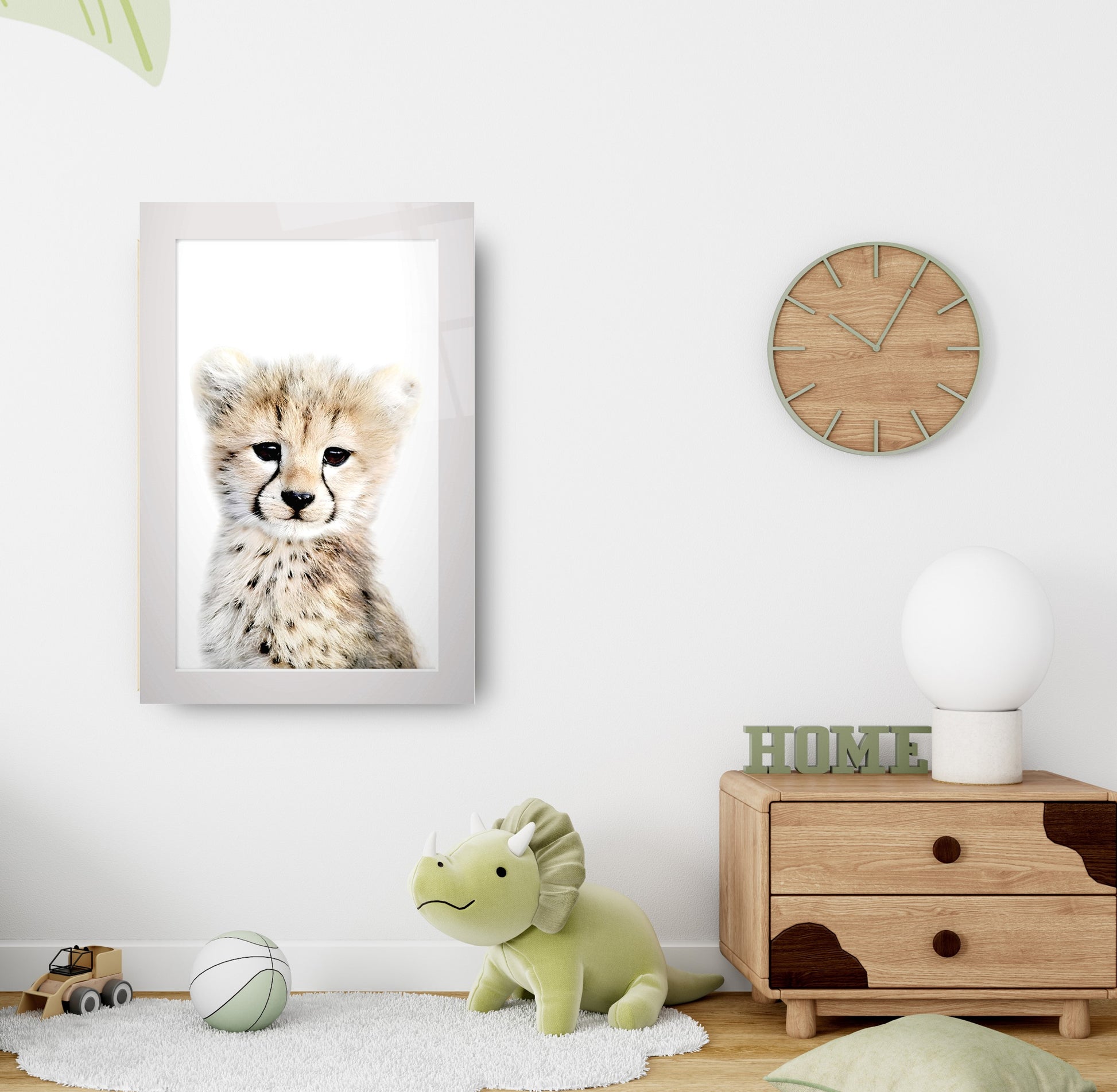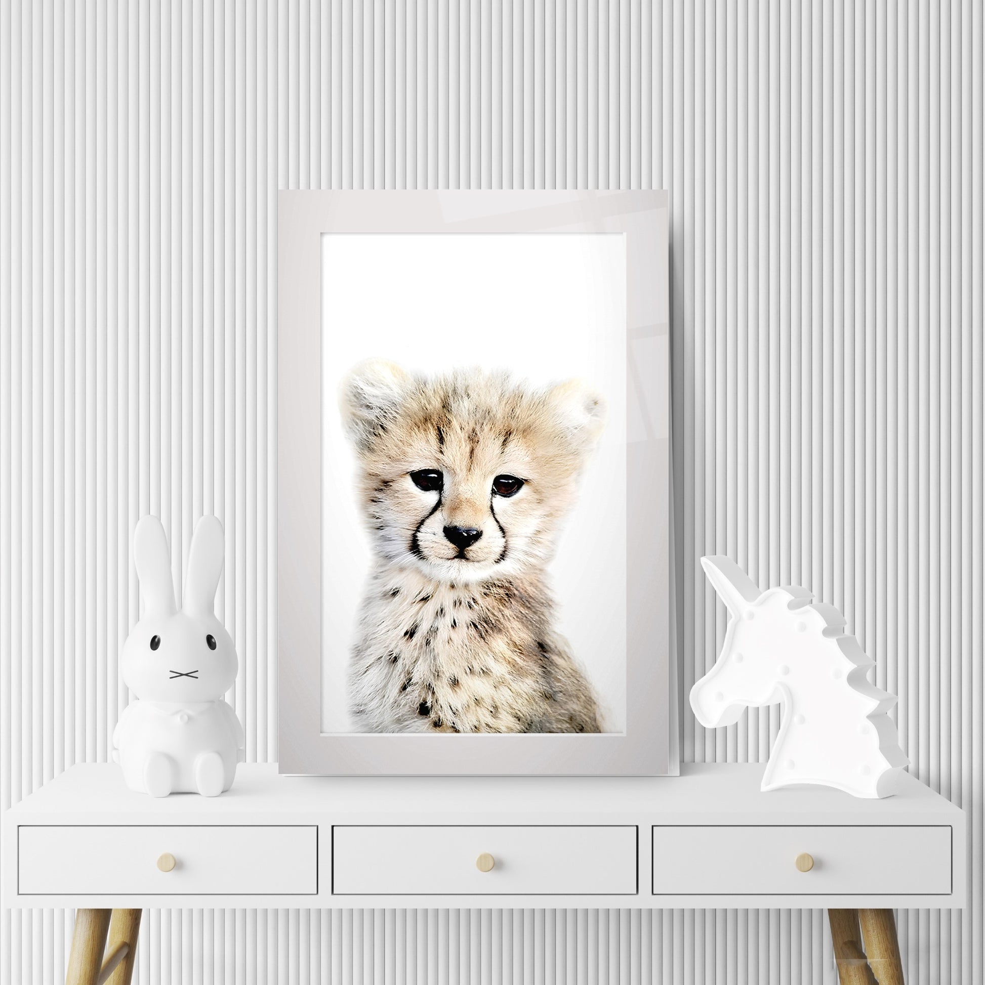 Çocuk ve Bebek Odalarına Huzur Katan: Sevimli Yavru Leopar Cam Tablo