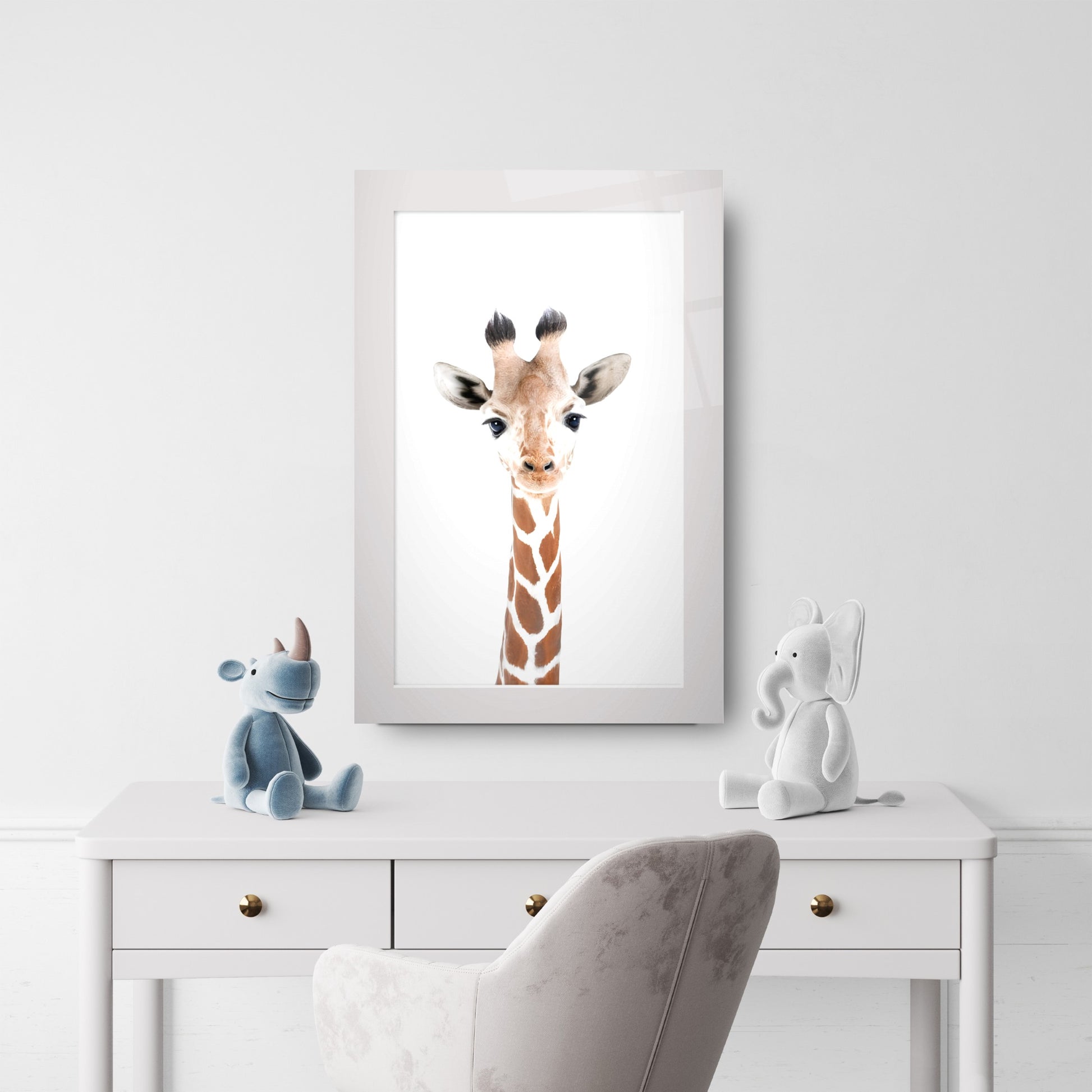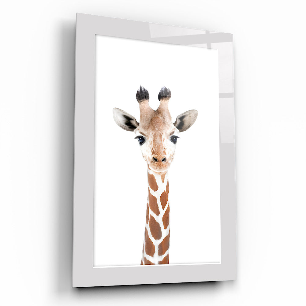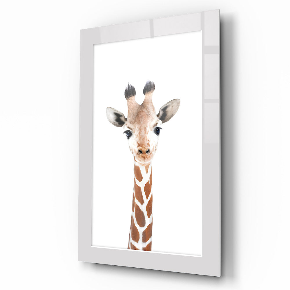 Çocuk ve Bebek Odalarına Huzur Katan: Sevimli Yavru Zürafa Cam Tablo