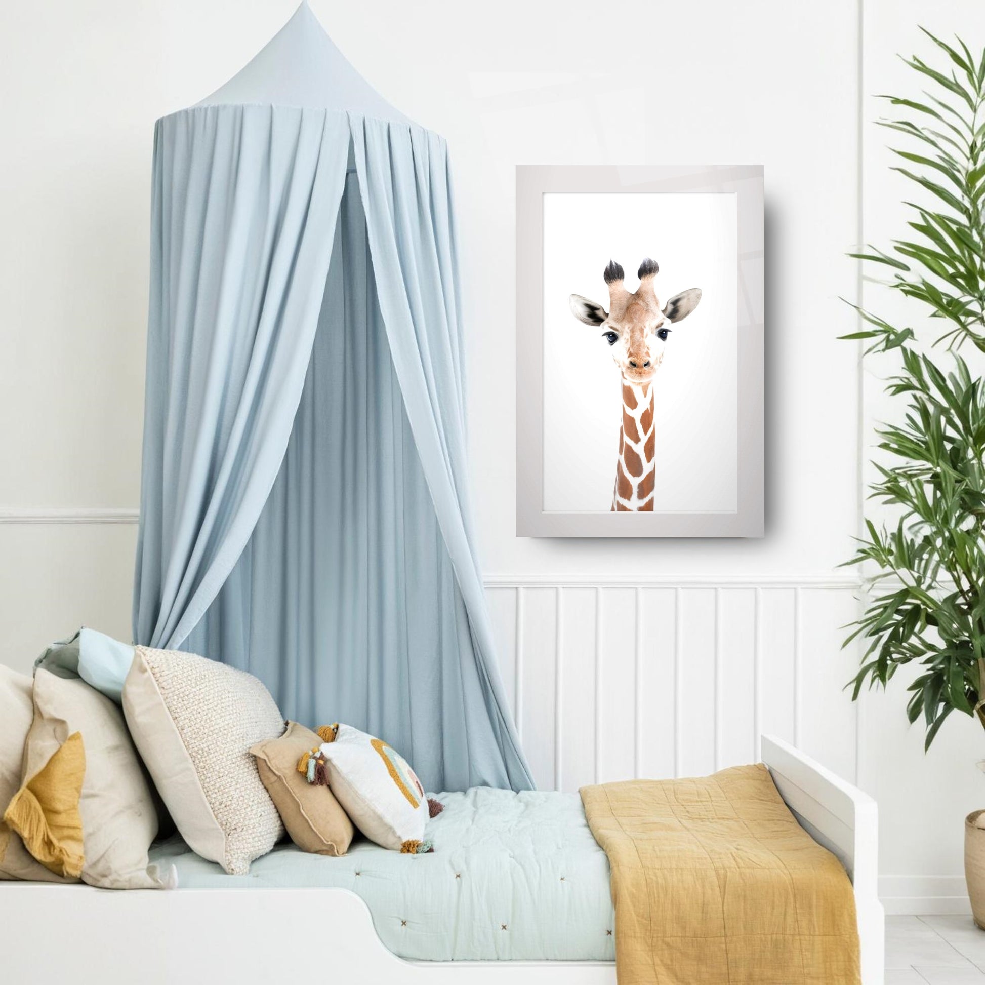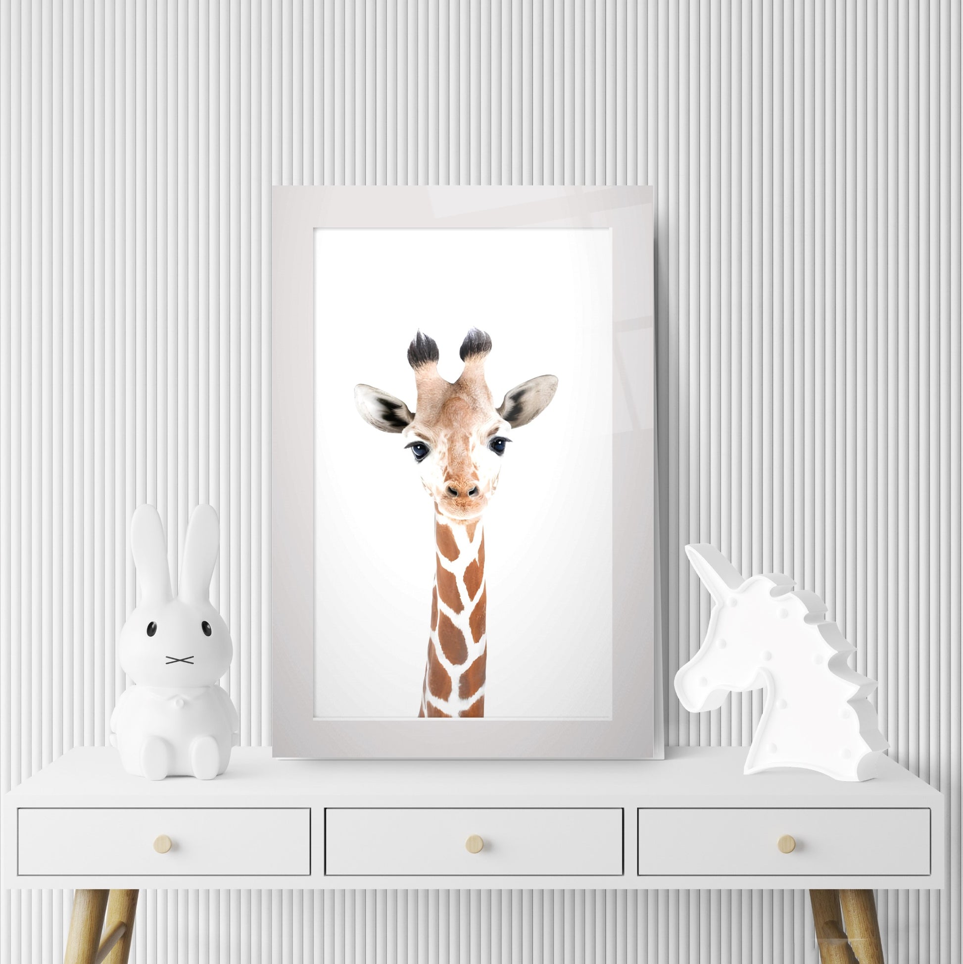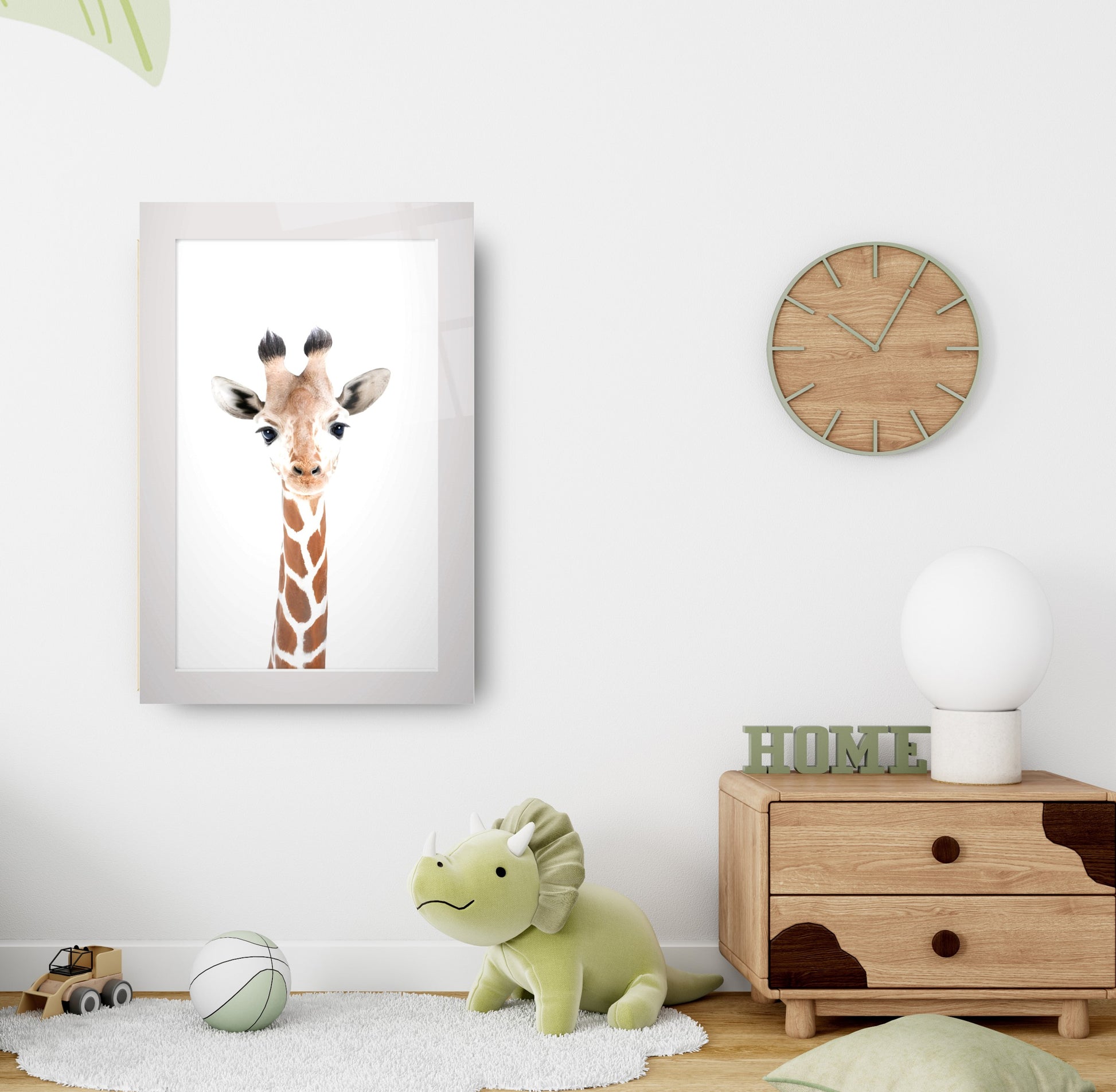 Çocuk ve Bebek Odalarına Huzur Katan: Sevimli Yavru Zürafa Cam Tablo