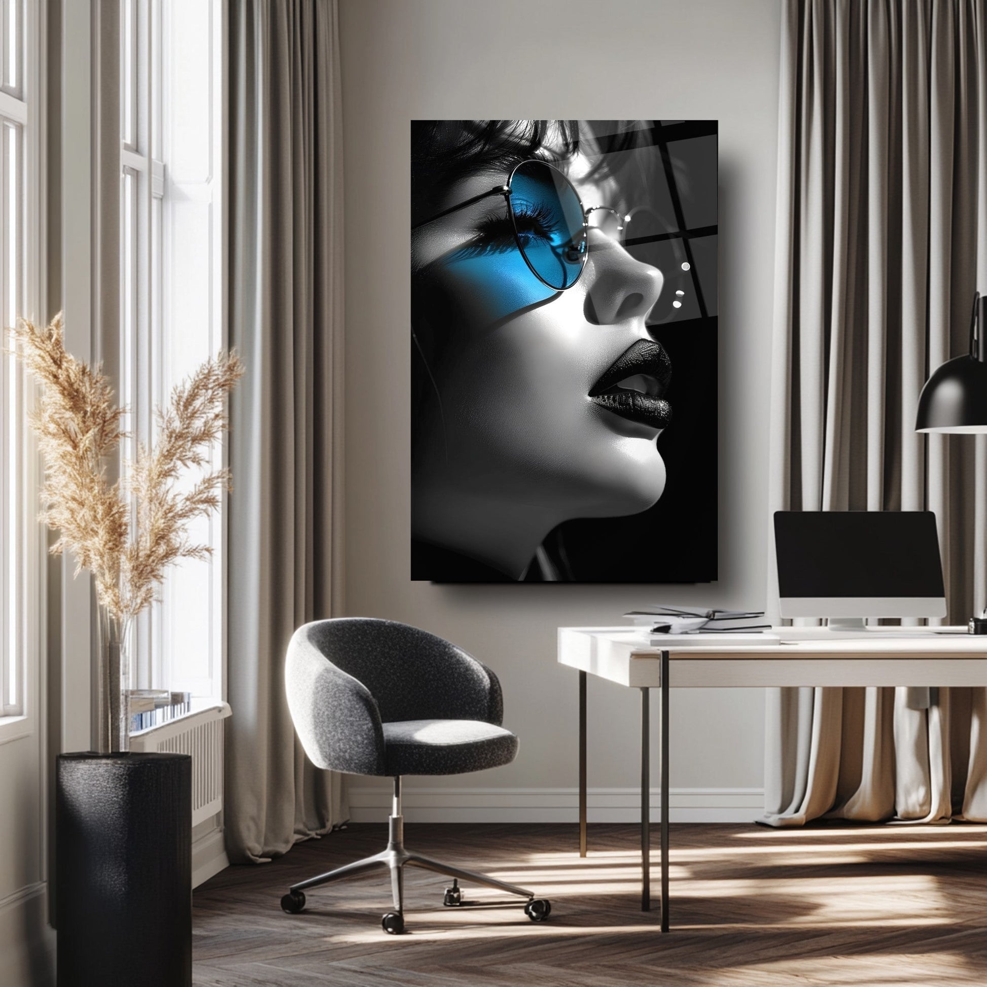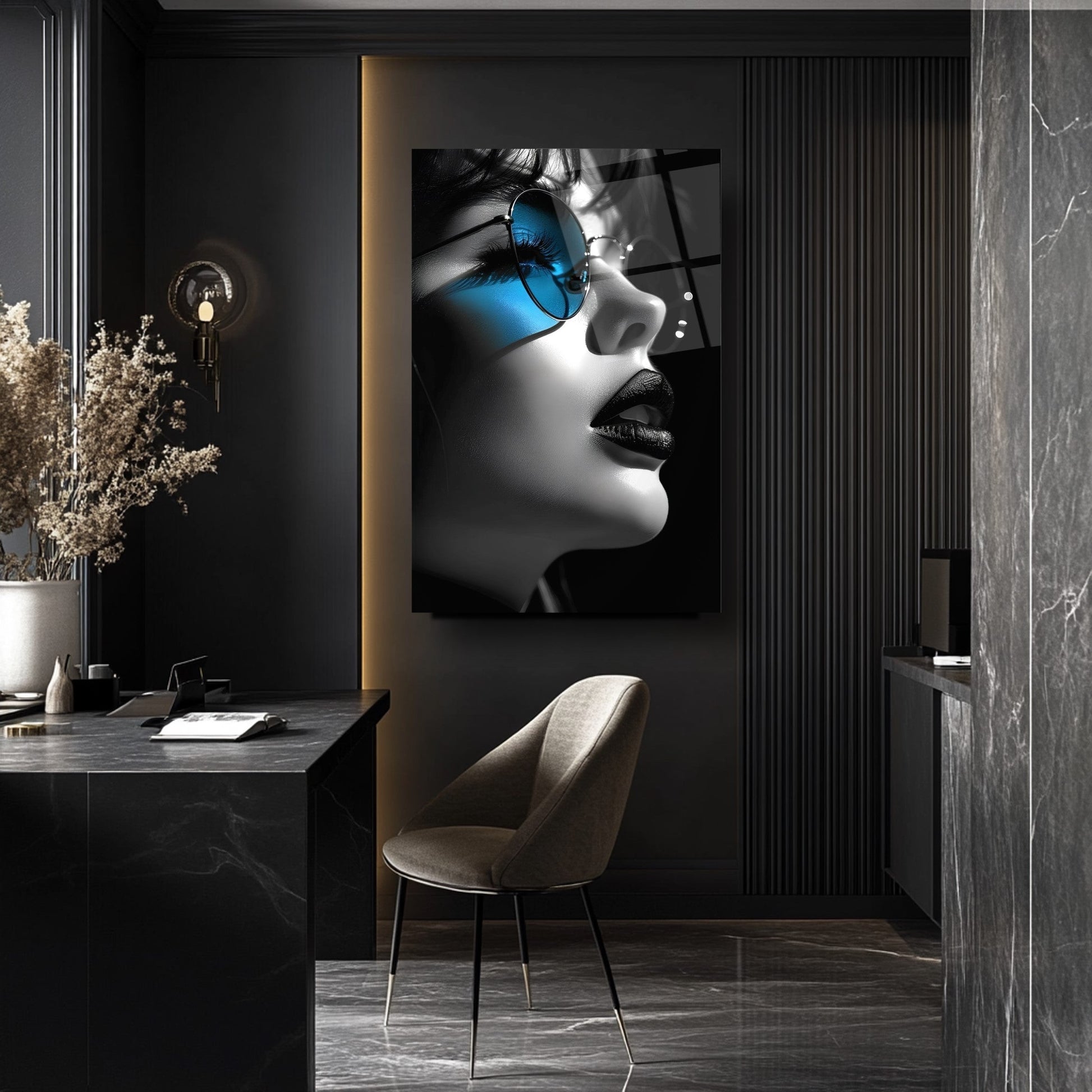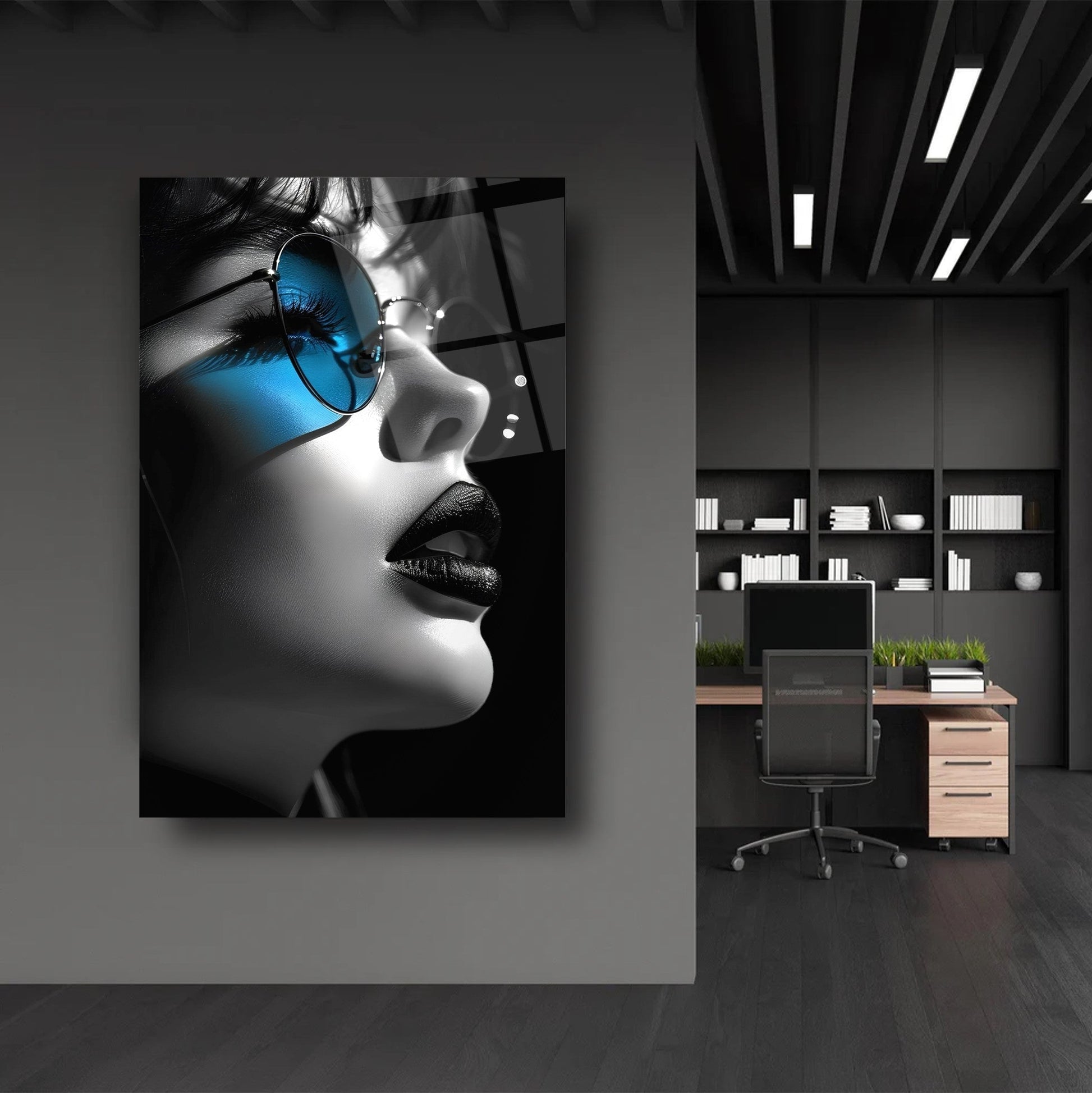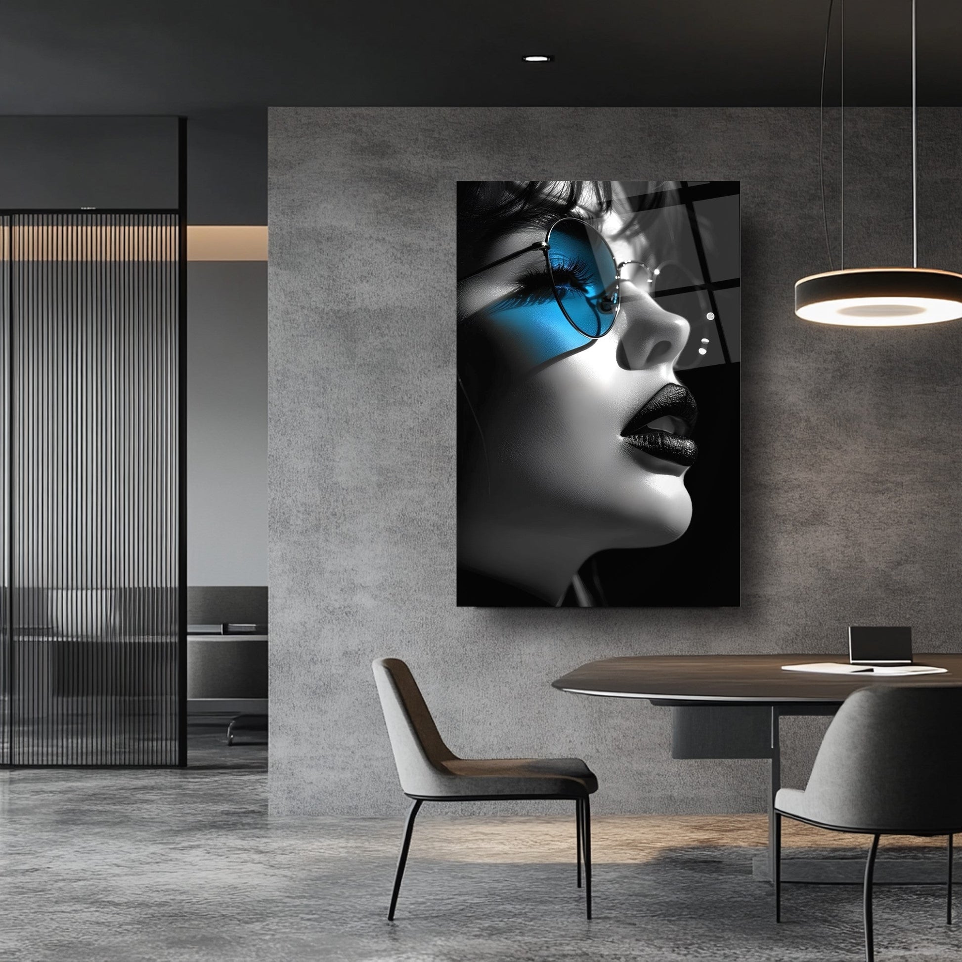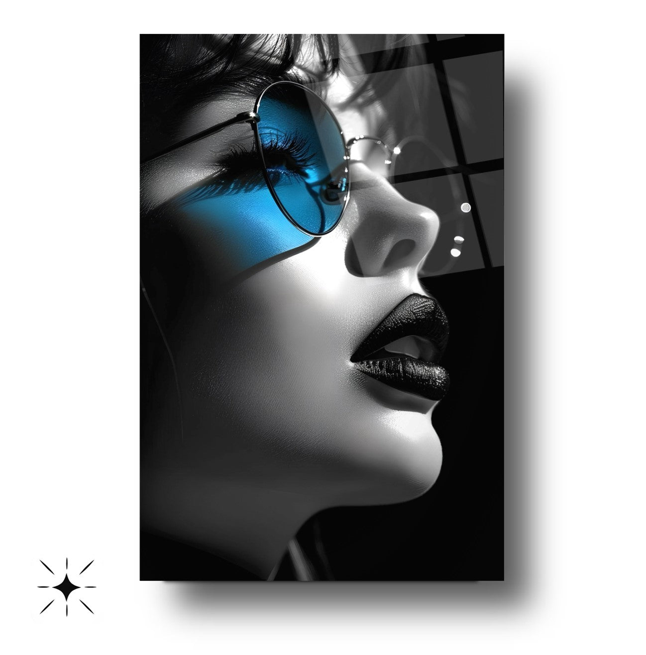Güzellik ve Optik Mekanlarına Sanatsal Dokunuş: Renkli Gözlüklü Kadın Model Cam Tablo