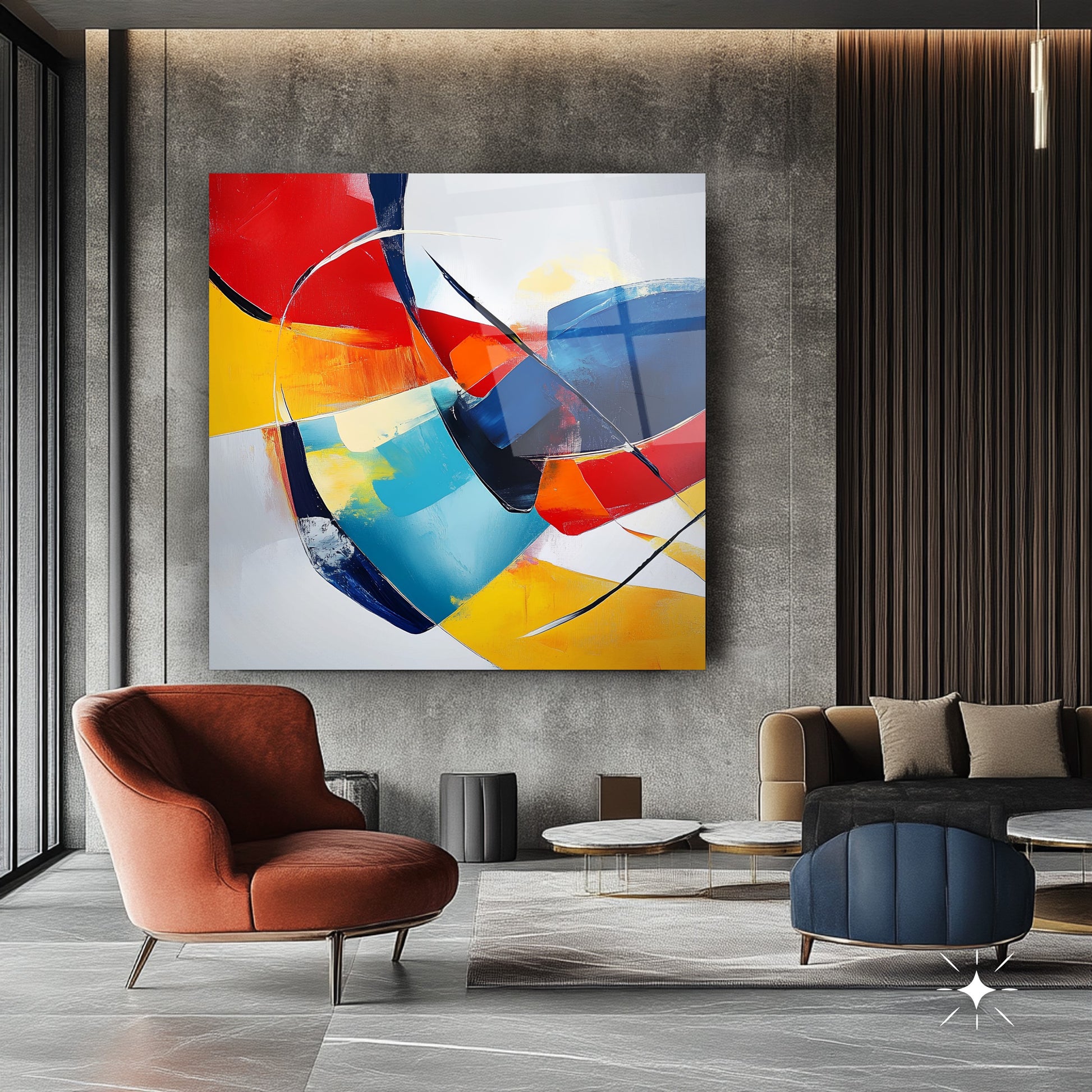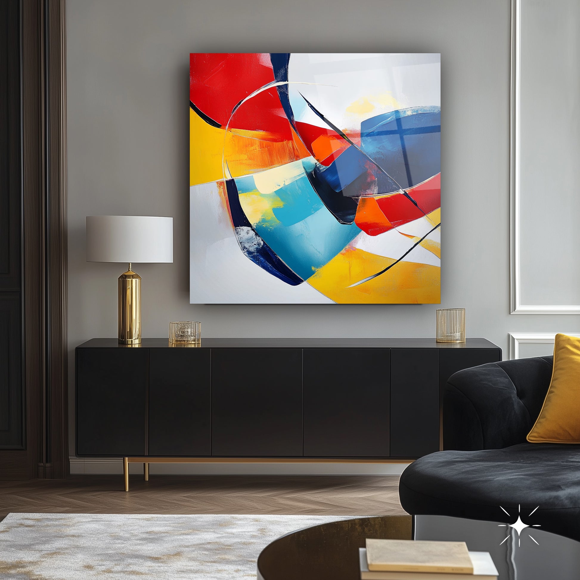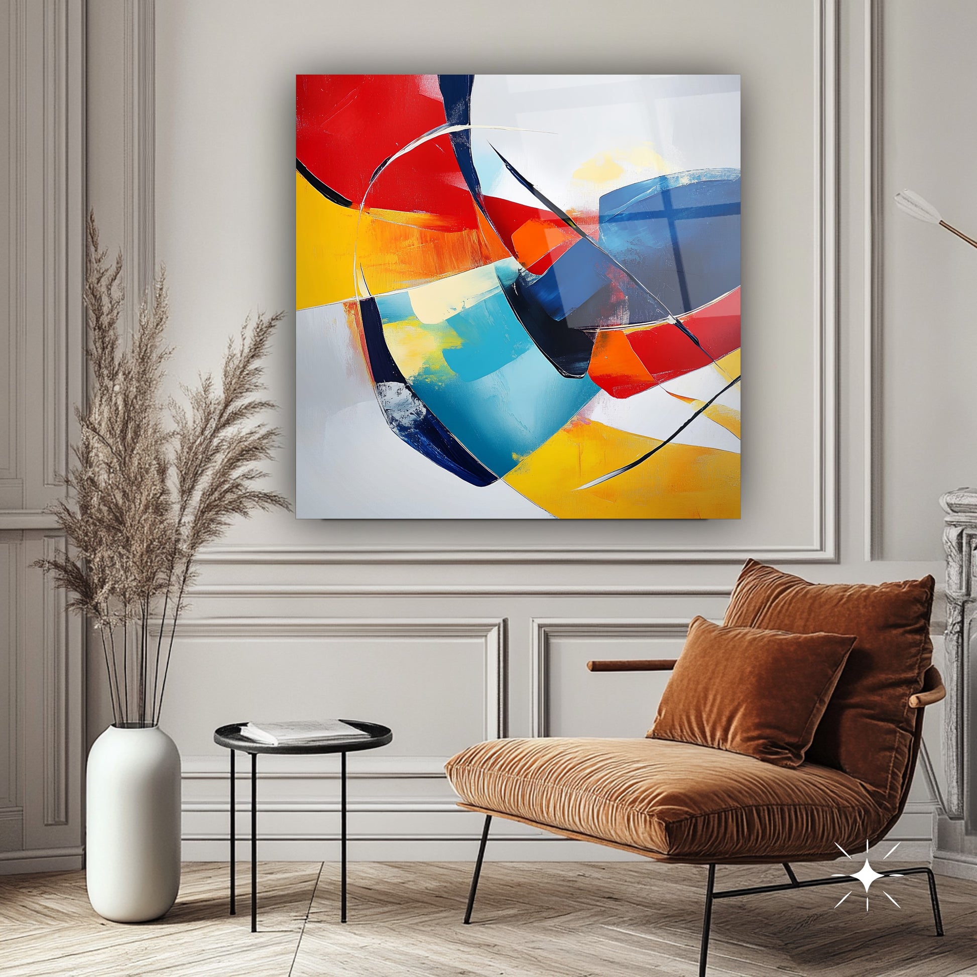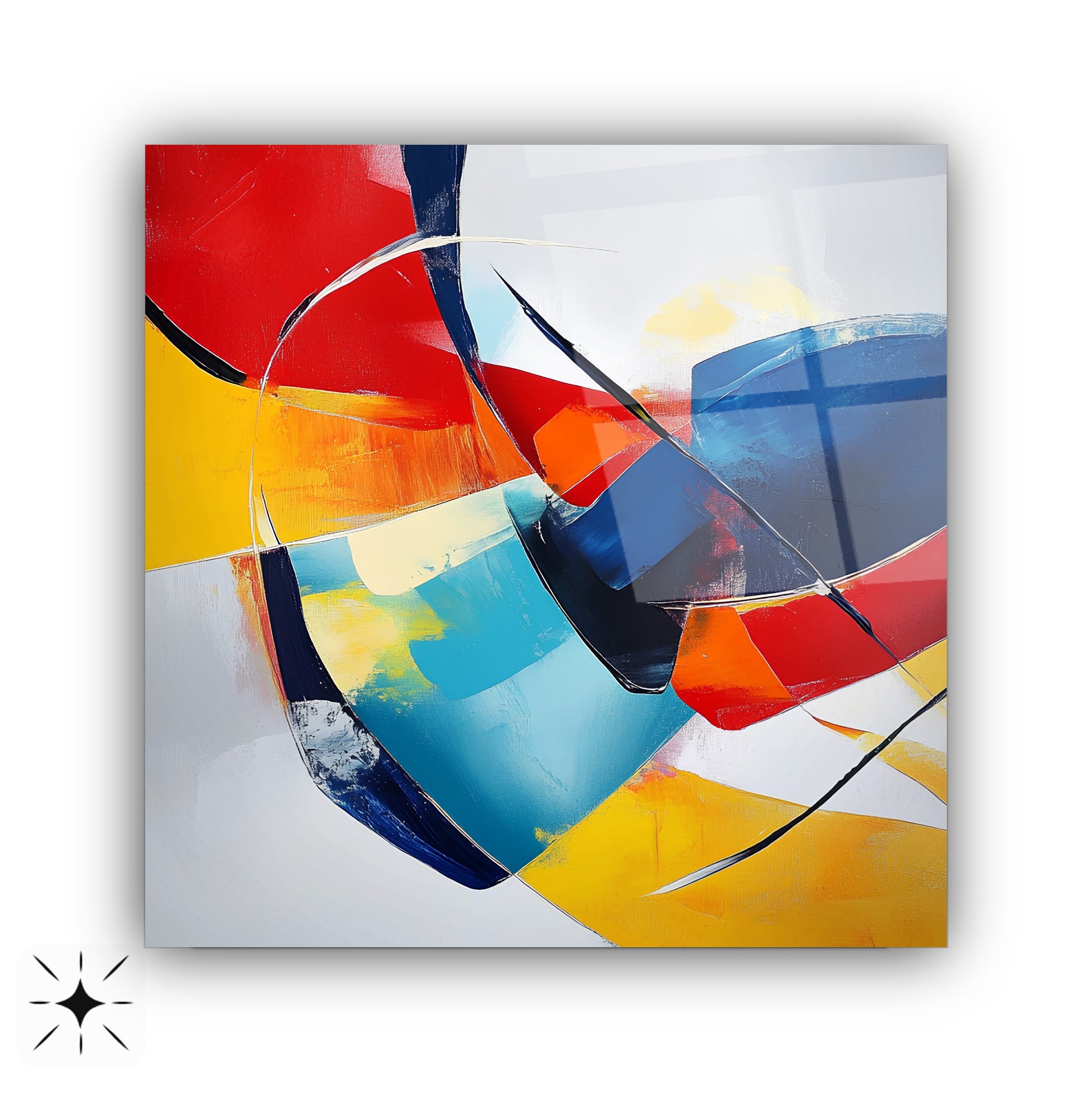 Sarı, kırmızı ve mavi renklerin canlı ve etkileyici birleşimiyle tasarlanan bu soyut cam tablo, mekanlarınıza modern ve enerjik bir dokunuş katıyor. CamDeko kalitesiyle kırılmaz temperli cam üzerine UV baskı teknolojisi kullanılarak üretilen ürün, zengin renk geçişleri ve özgün desenleriyle mekânda dikkat çekici bir atmosfer yaratır. Ev salonlarından ofislere, yaratıcı çalışma alanlarından butik mekanlara kadar geniş kullanım alanına sahip olan tablo, dayanıklı yapısıyla uzun yıllar boyunca ilk günkü parlaklığını ve kalitesini korur. Modern ve estetik dekorasyon arayanlar için ideal, fonksiyonel ve şık bir seçimdir.