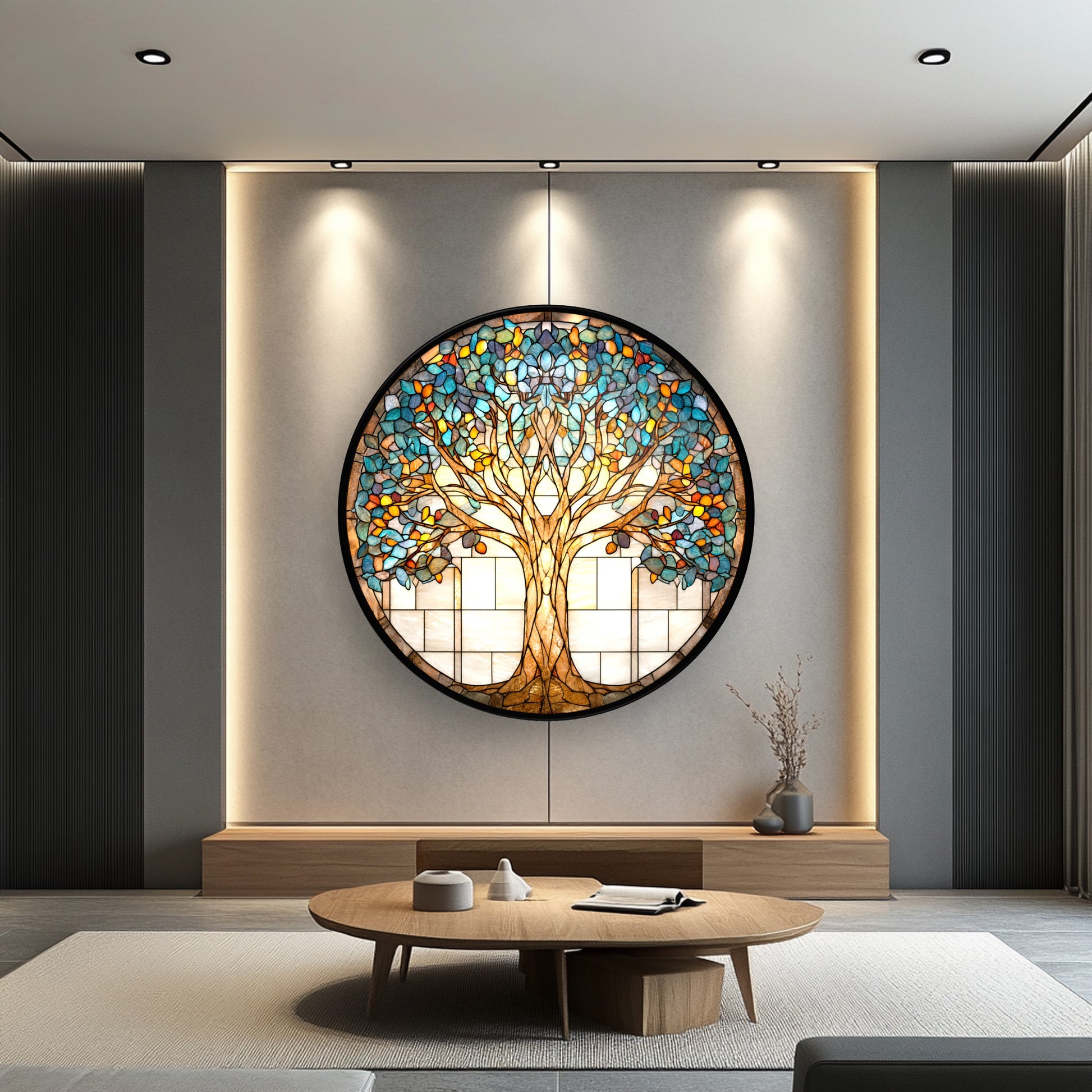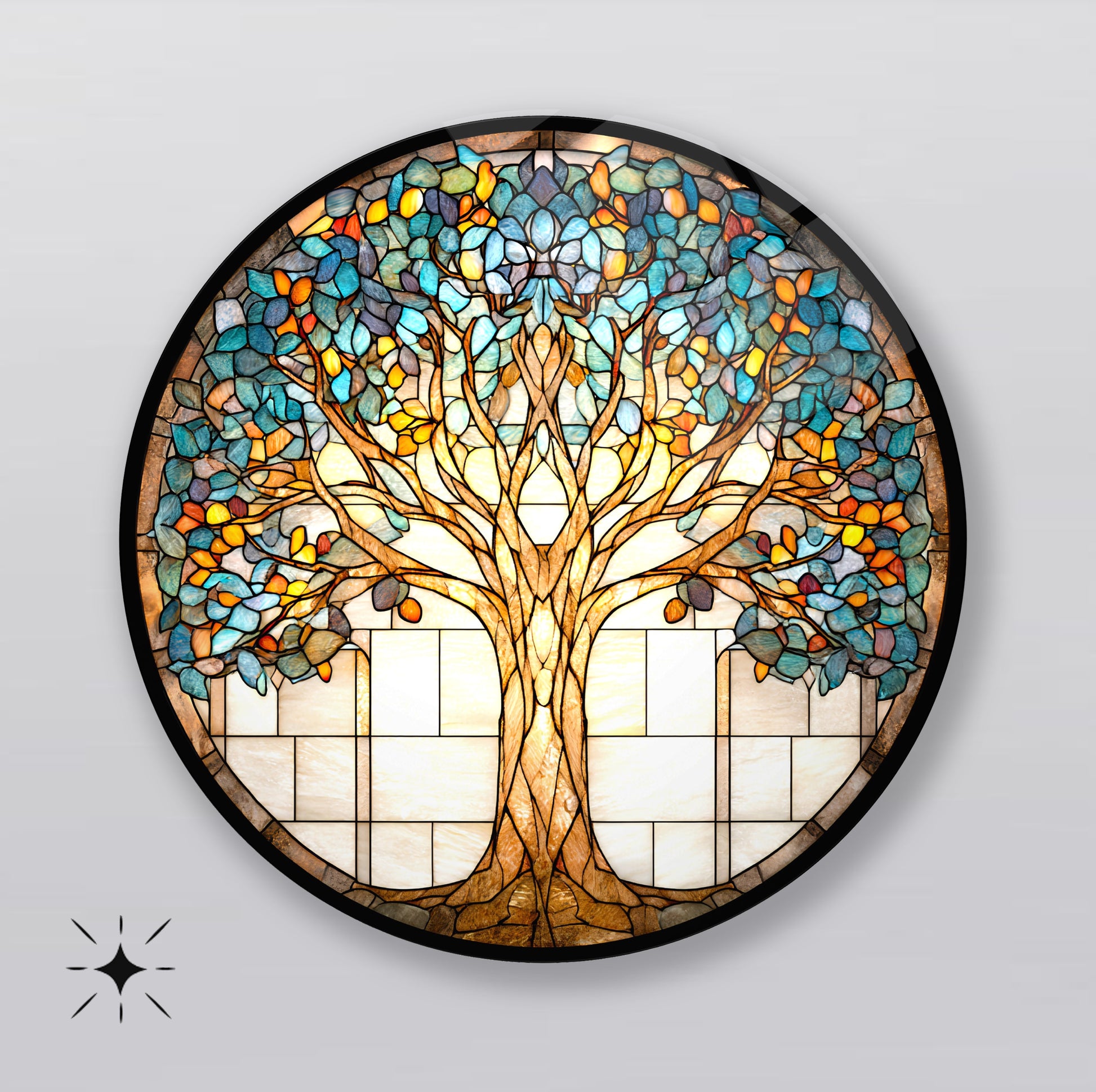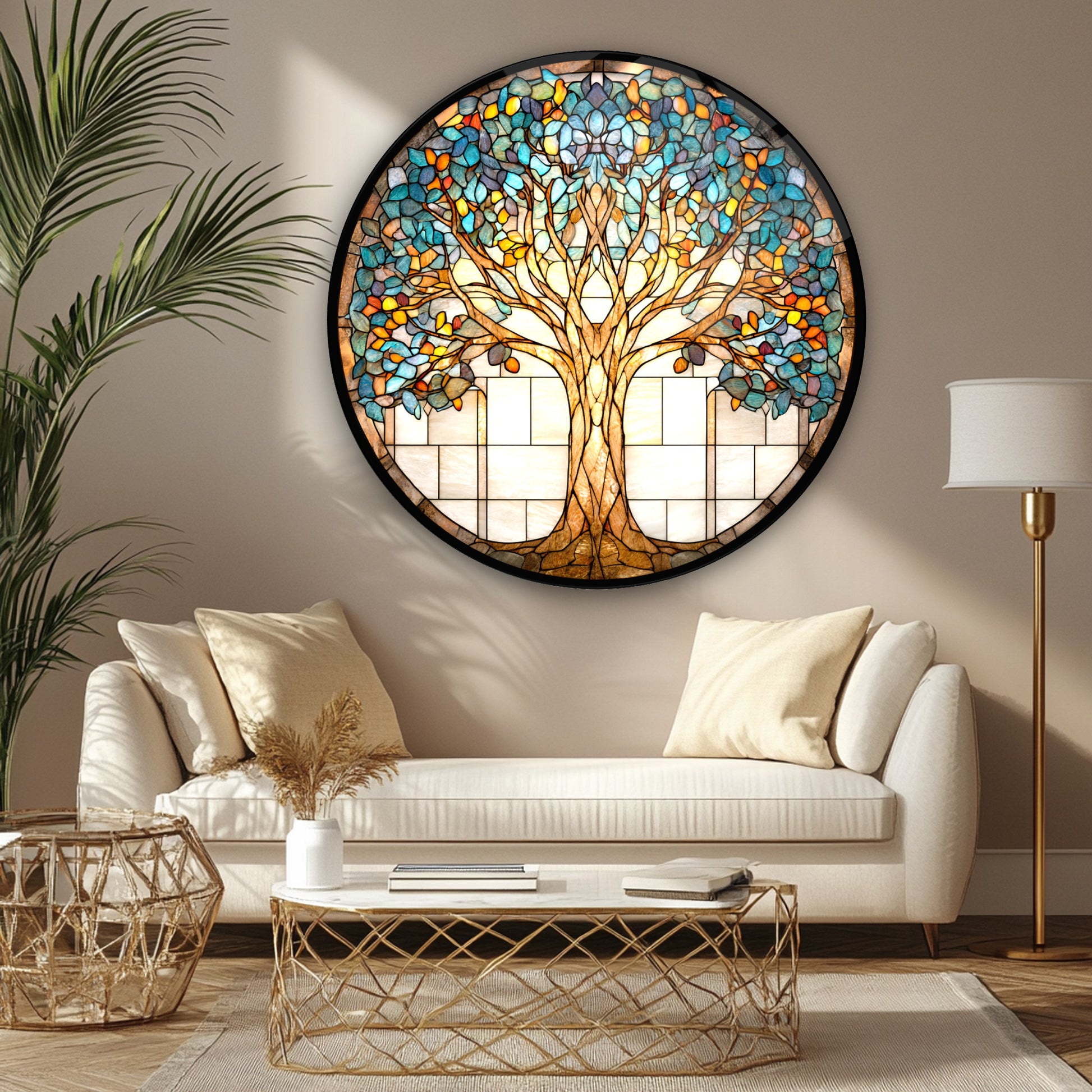 Vitray Desen Hayat Ağacı Yuvarlak Cam Tablo