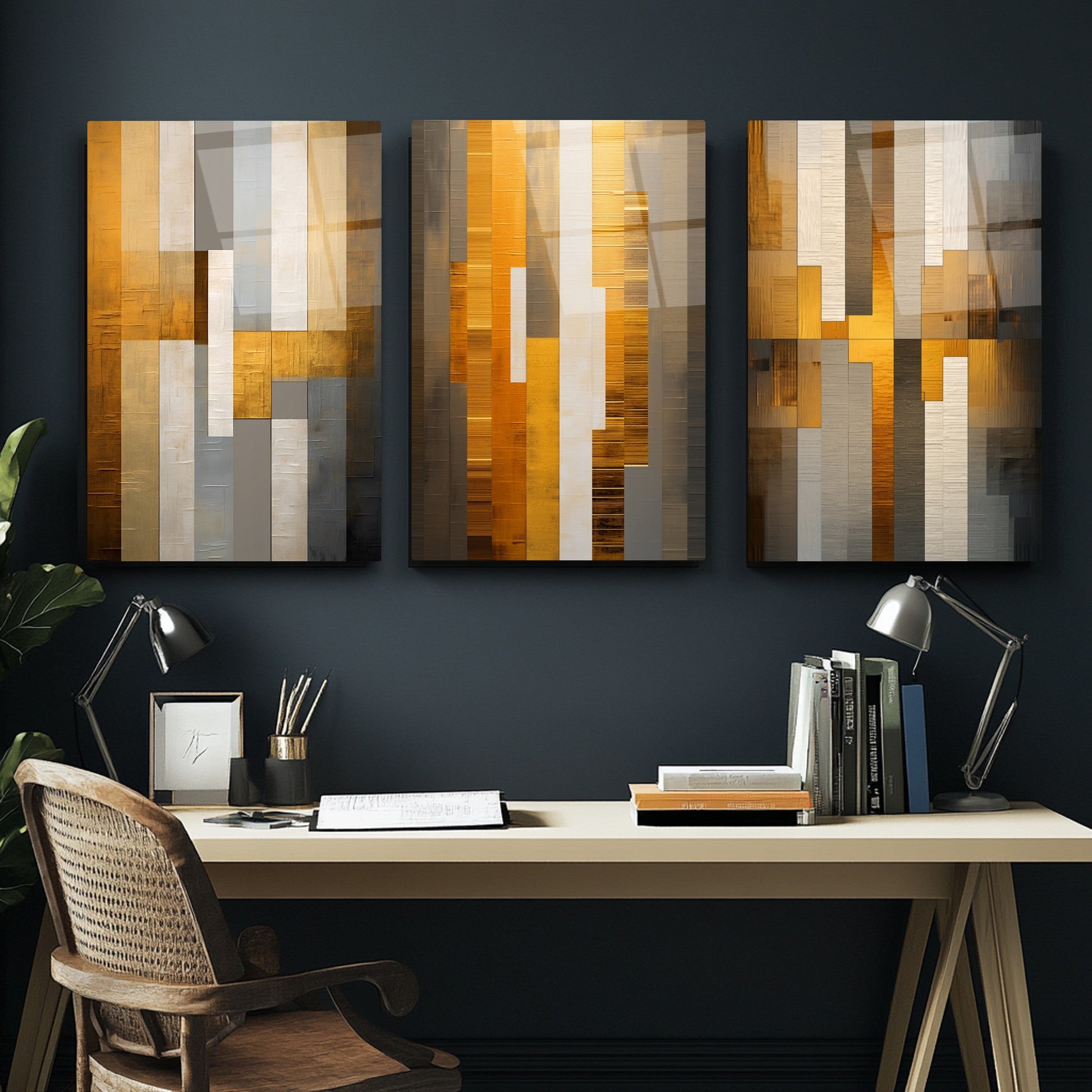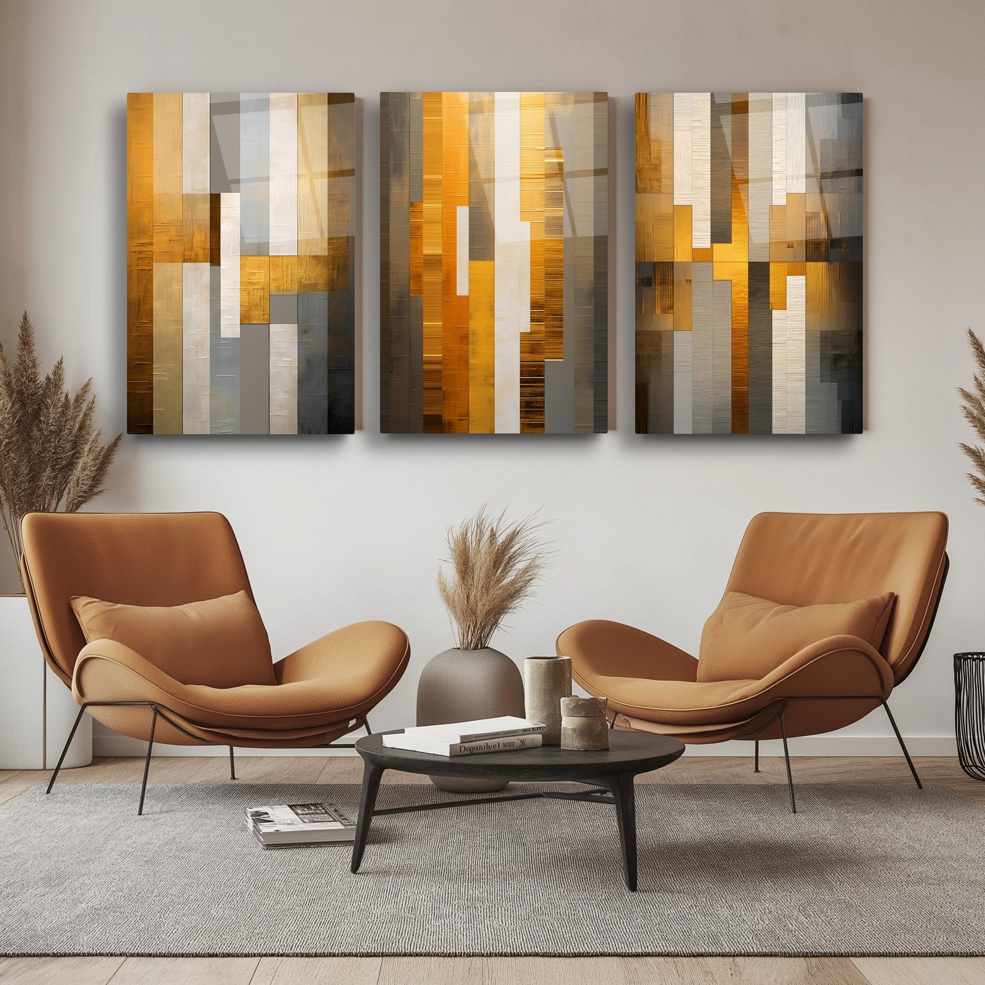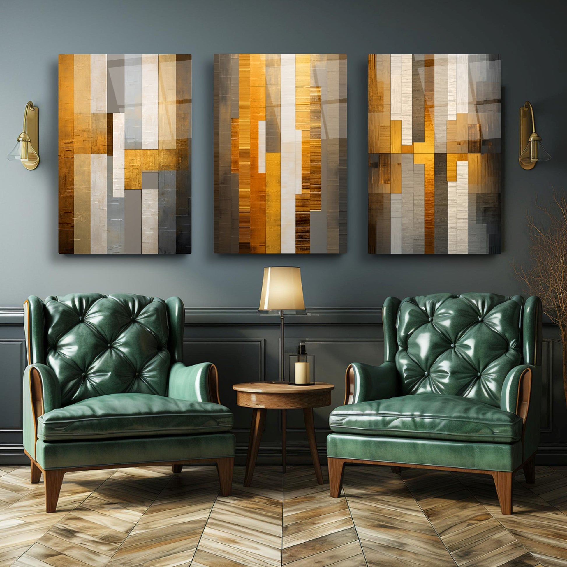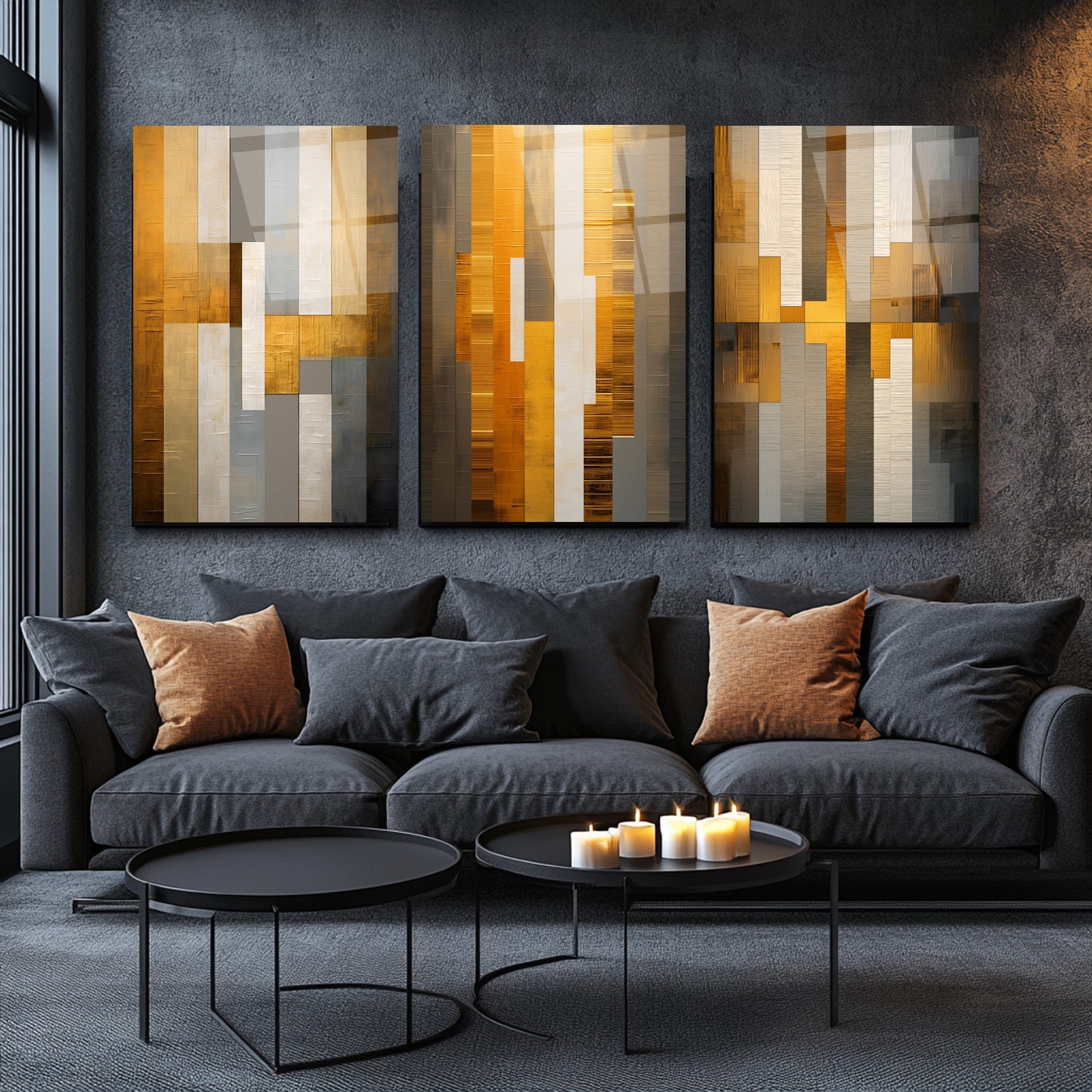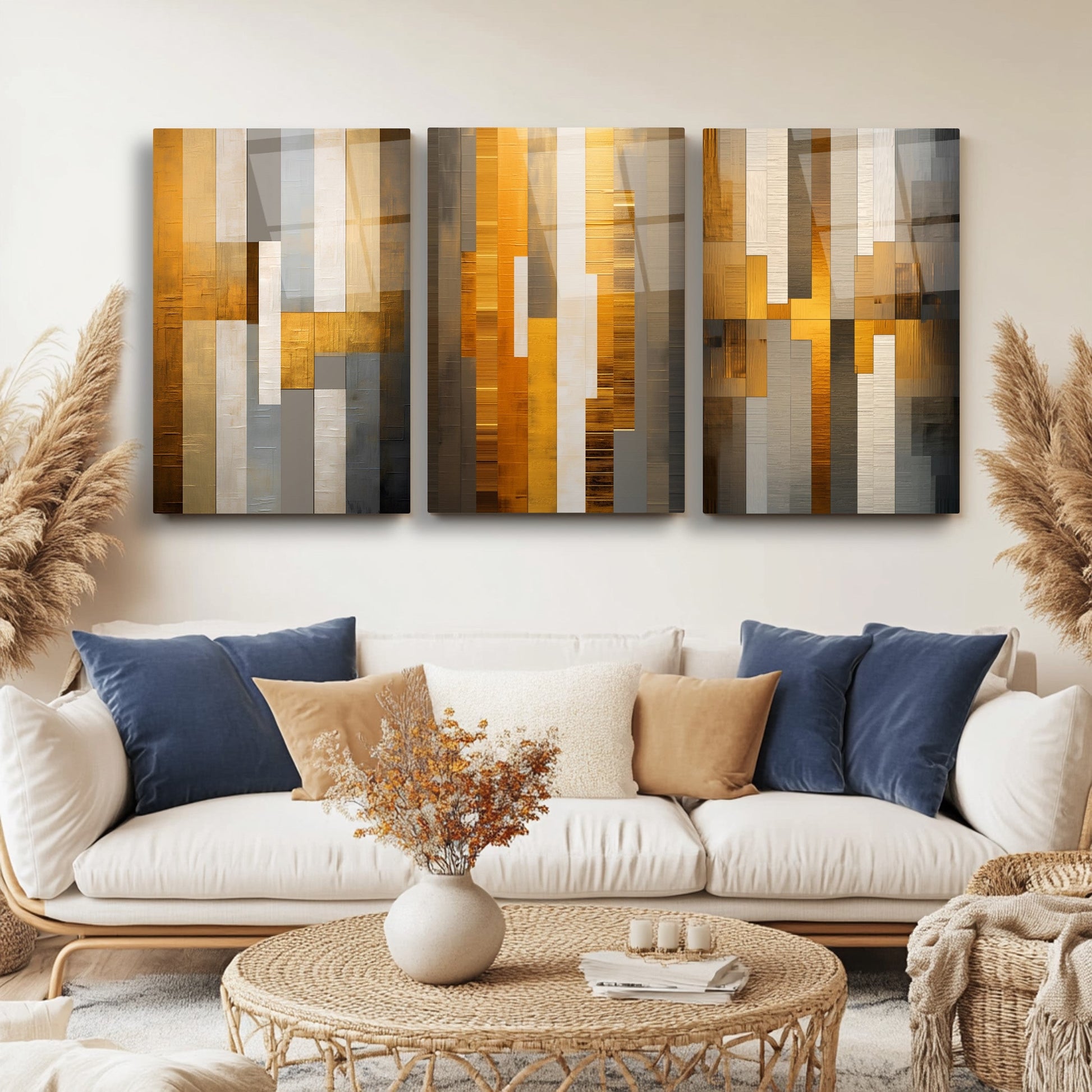 Sarı, turuncu ve gri tonlarında çizgili soyut desenlerle tasarlanan bu büyük boy kırılmaz cam tablo üçlü set, salonlarda dikkat çekici bir atmosfer yaratır. Minimal ve boho tarzını bir araya getiren tasarımıyla modern dekorasyona zarif bir dokunuş sunar. Temperli cam yapısı dayanıklıdır. Canlı renkleri ve sade geometrisiyle şıklık ve sadeliği aynı anda yaşamak isteyenler için ideal bir tercihtir.