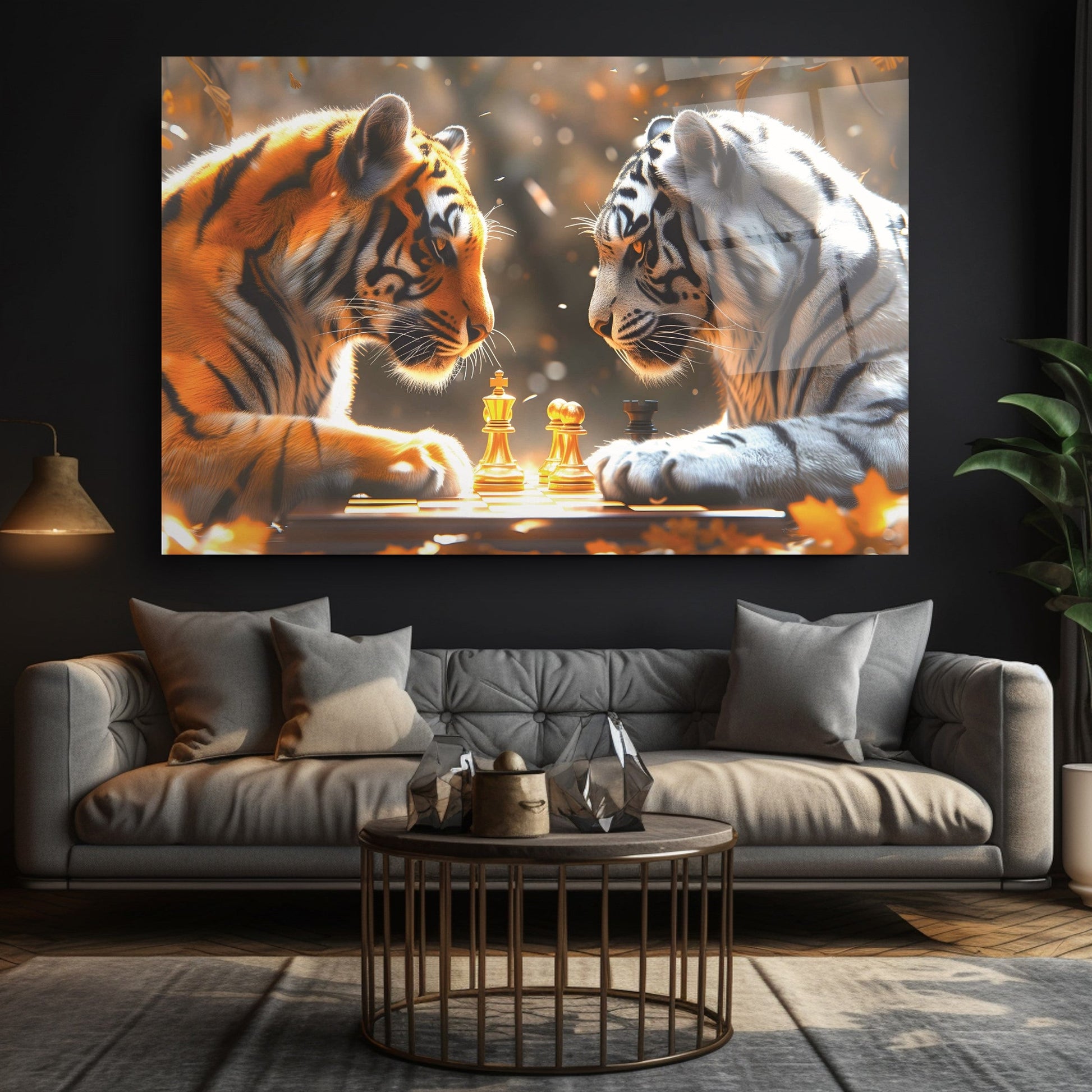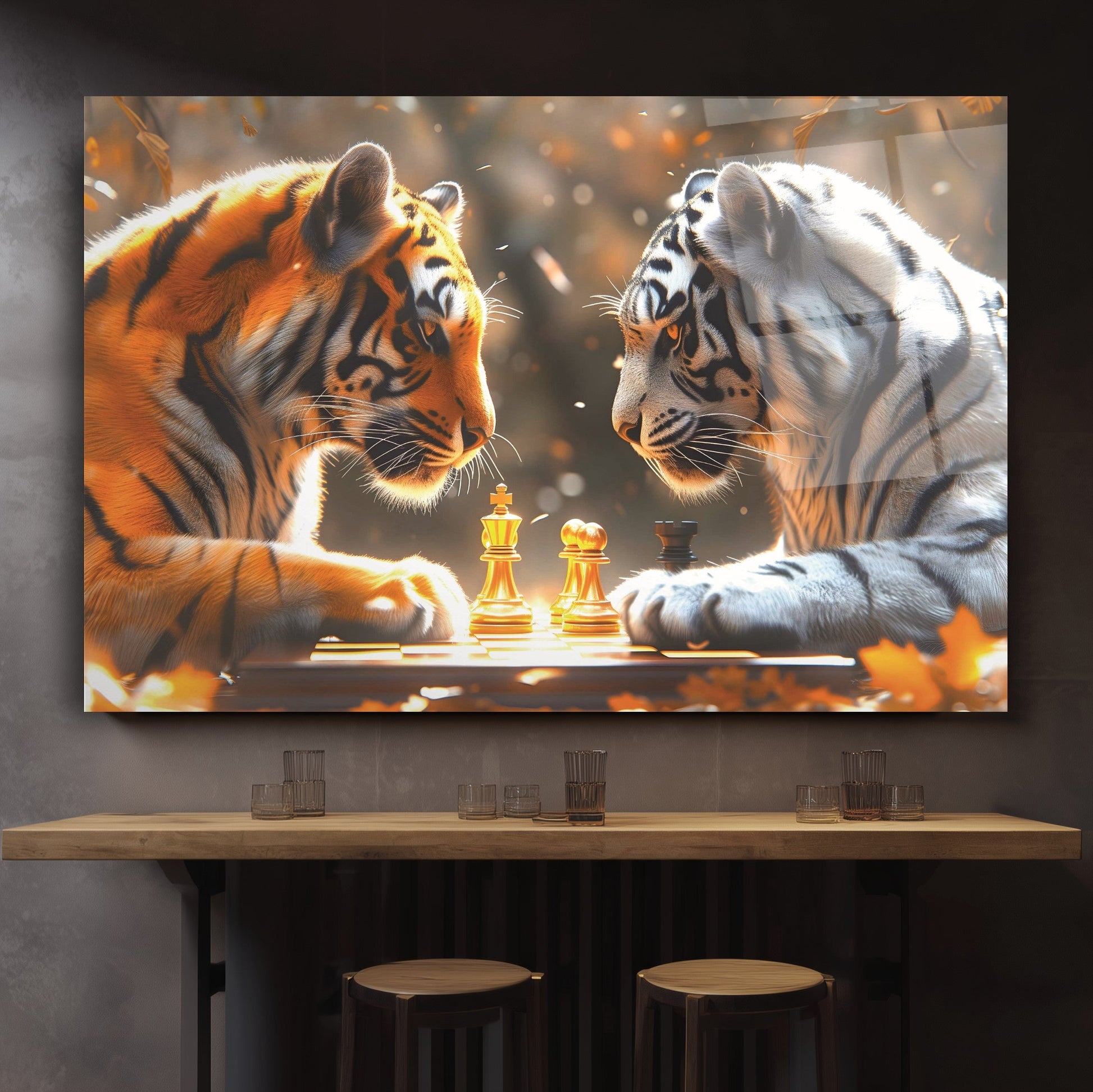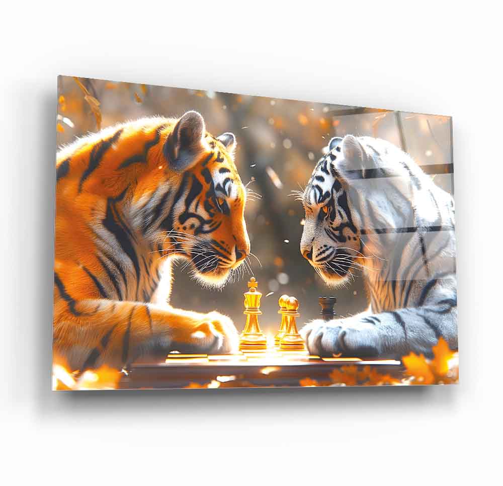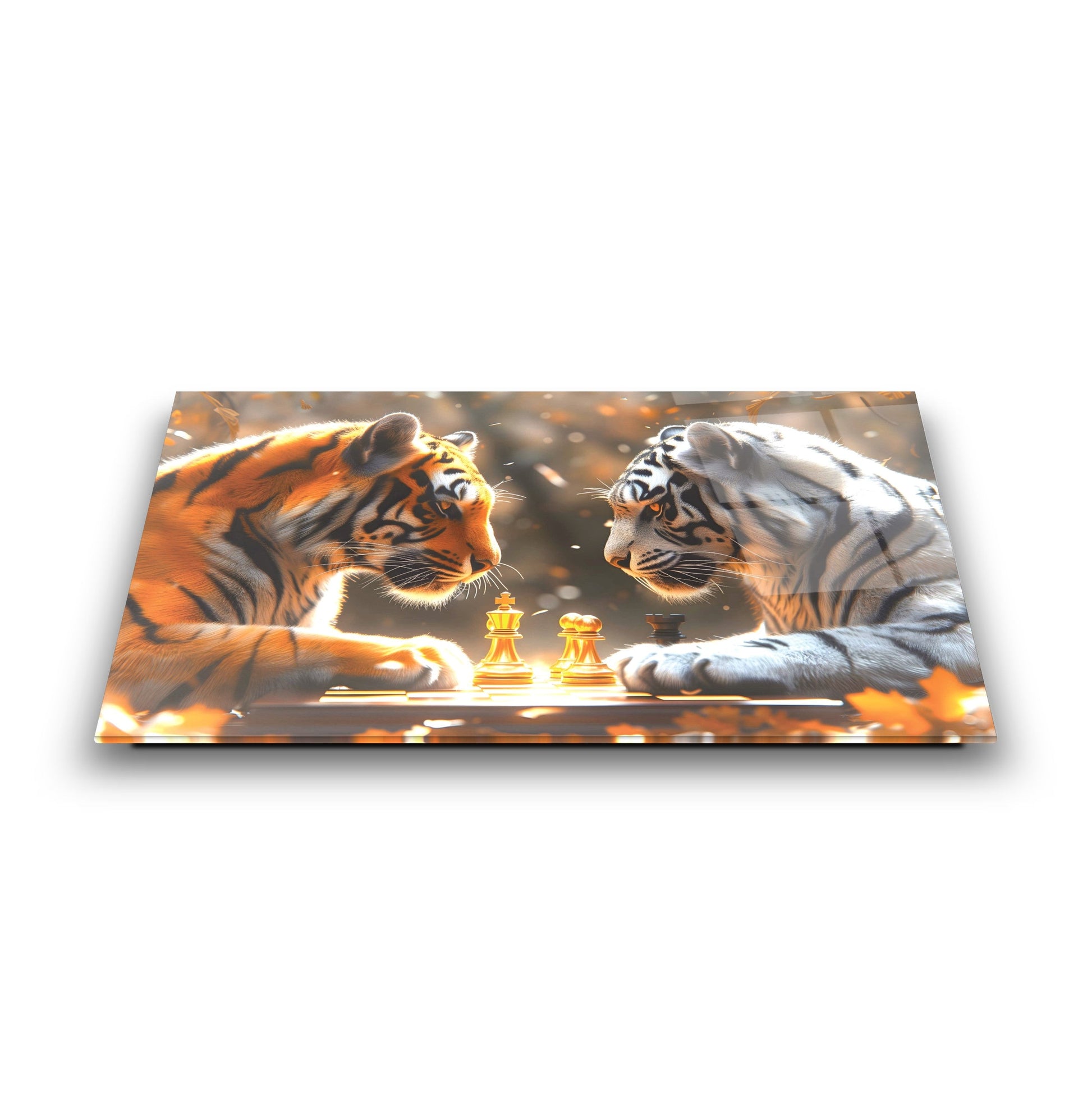 Mekanlarınıza Zeka ve Güç Katın: Satranç Oynayan Kaplanlar Cam Tablo