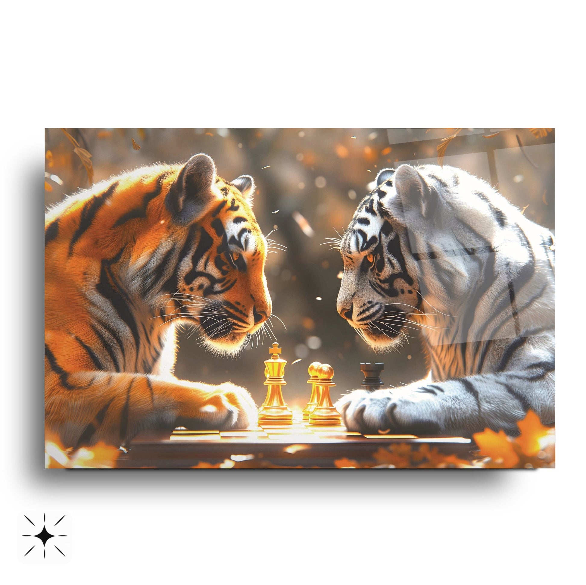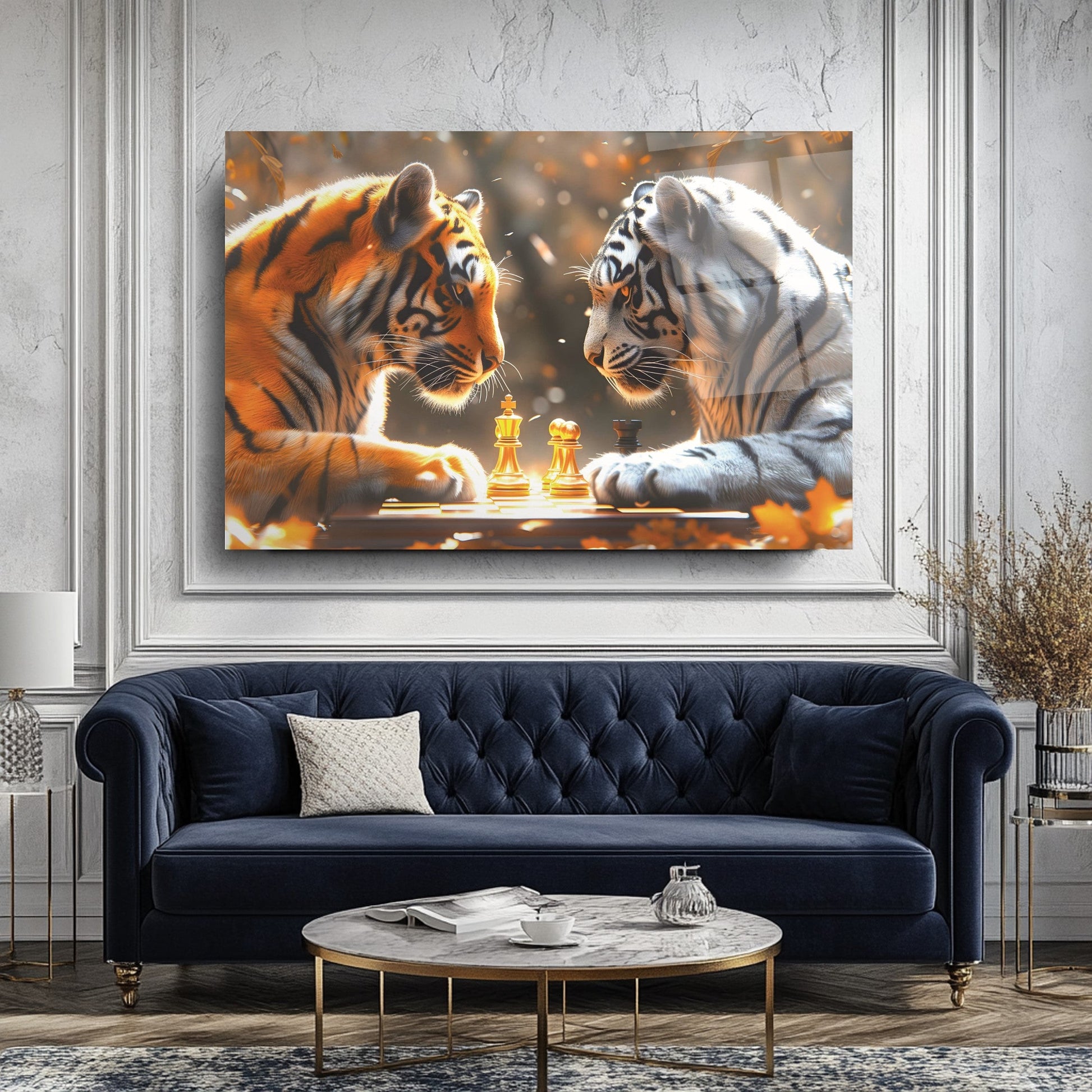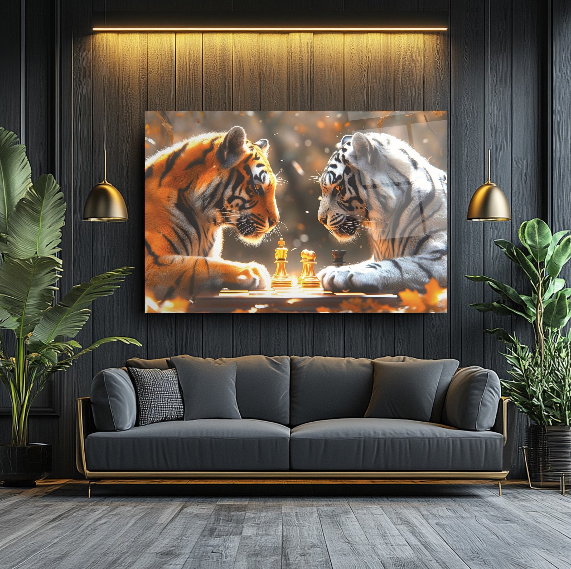 Mekanlarınıza Zeka ve Güç Katın: Satranç Oynayan Kaplanlar Cam Tablo