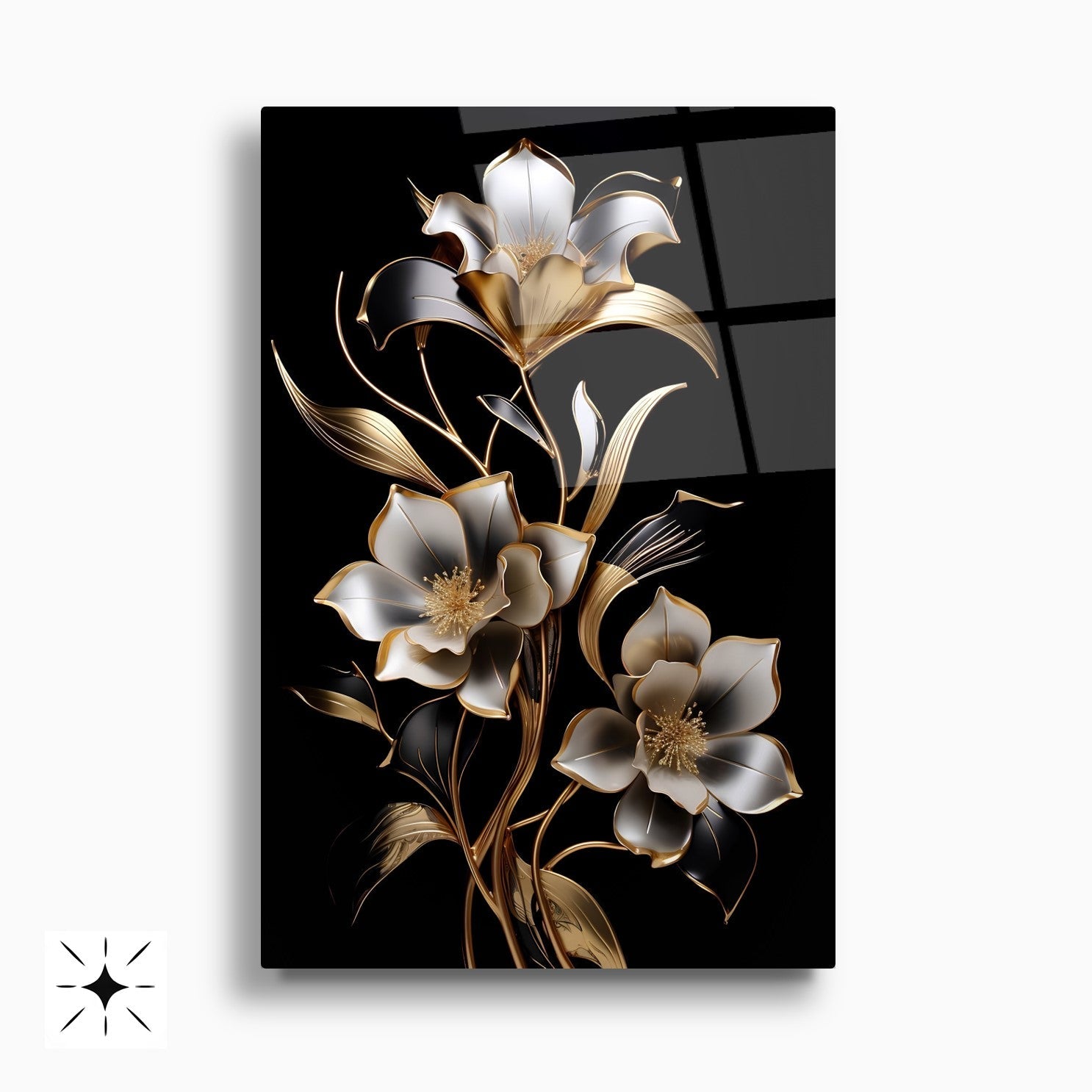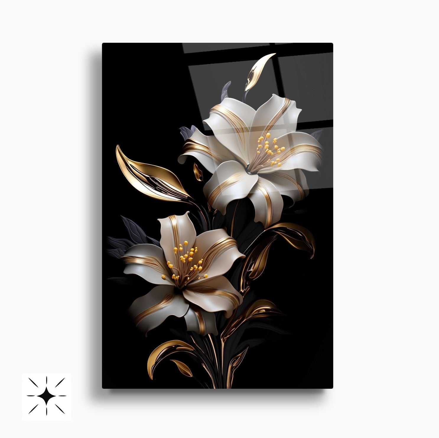 Bu siyah arka plan üzerine beyaz ve gold detaylı çiçek desenleriyle tasarlanmış mega boy ikili cam tablo seti, modern dekorasyonlara zarif bir dokunuş katıyor. Kırılmaz ve temperli cam üzerine UV baskı tekniği ile işlenen bu tablolar, hem şıklığı hem de dayanıklılığı bir arada sunar. Büyük boyutlarıyla salon, ofis veya geniş yaşam alanlarınızda göz alıcı bir odak noktası yaratır. CamDeko kalitesiyle uzun ömürlü ve estetik, yaşam alanlarınıza sofistike bir hava katan özel tasarım bir dekorasyon ürünü.