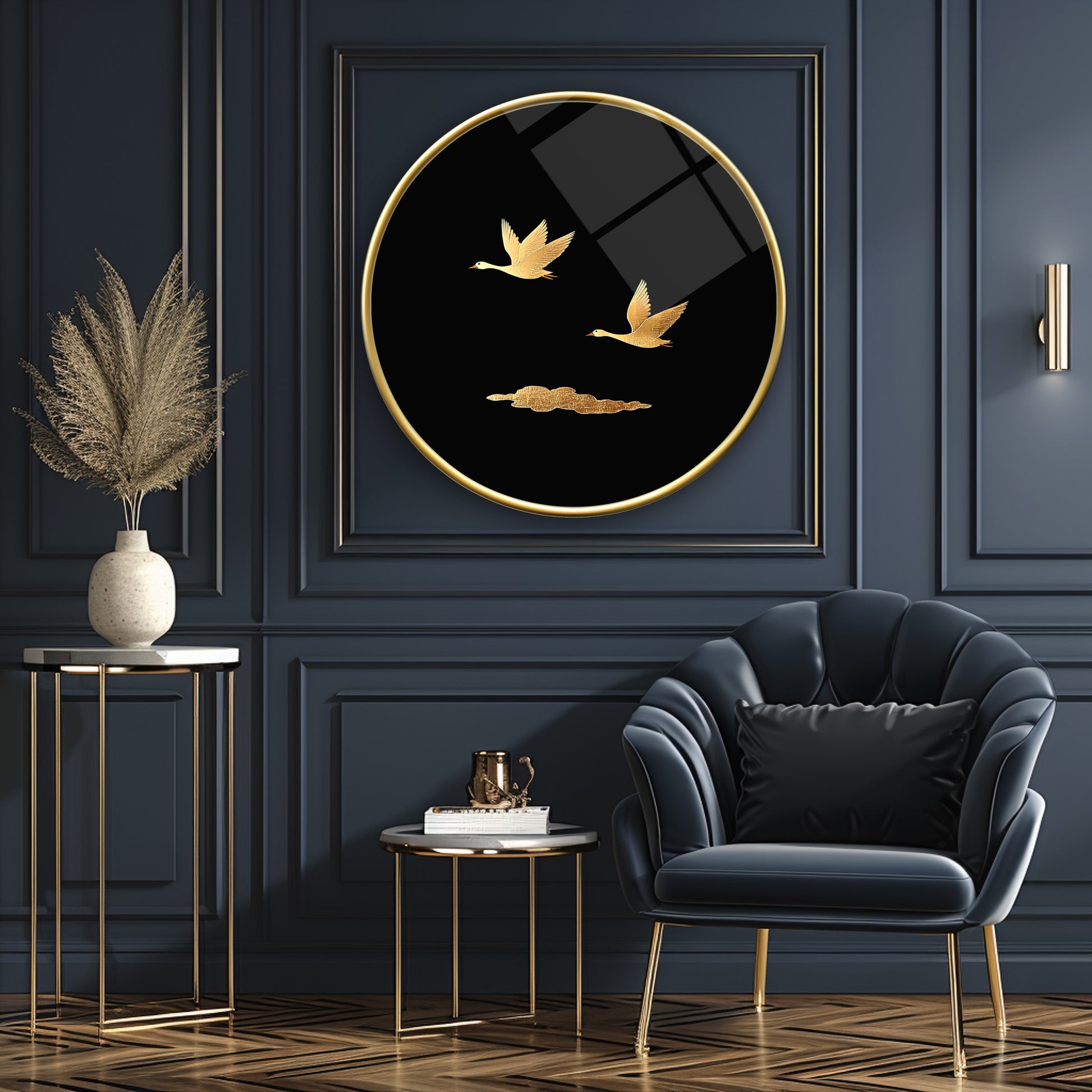 Siyah arka plan üzerine gold kuş desenleriyle hazırlanmış bu yuvarlak cam tablo, minimal ve modern dekorasyonlara şıklık katıyor. CamDeko kalitesiyle kırılmaz temperli cam üzerine UV baskı teknolojisi kullanılarak üretilen ürün, ev, ofis, kuaför salonu ve butik mekanlarda estetik bir atmosfer yaratır. Zarif kuş figürleri ve kontrast renkler, mekâna sofistike bir hava kazandırırken, dayanıklı yapısıyla uzun yıllar güvenle kullanılabilir. Modern yaşam alanları için özgün ve zarif bir dekorasyon tercihi sunar.