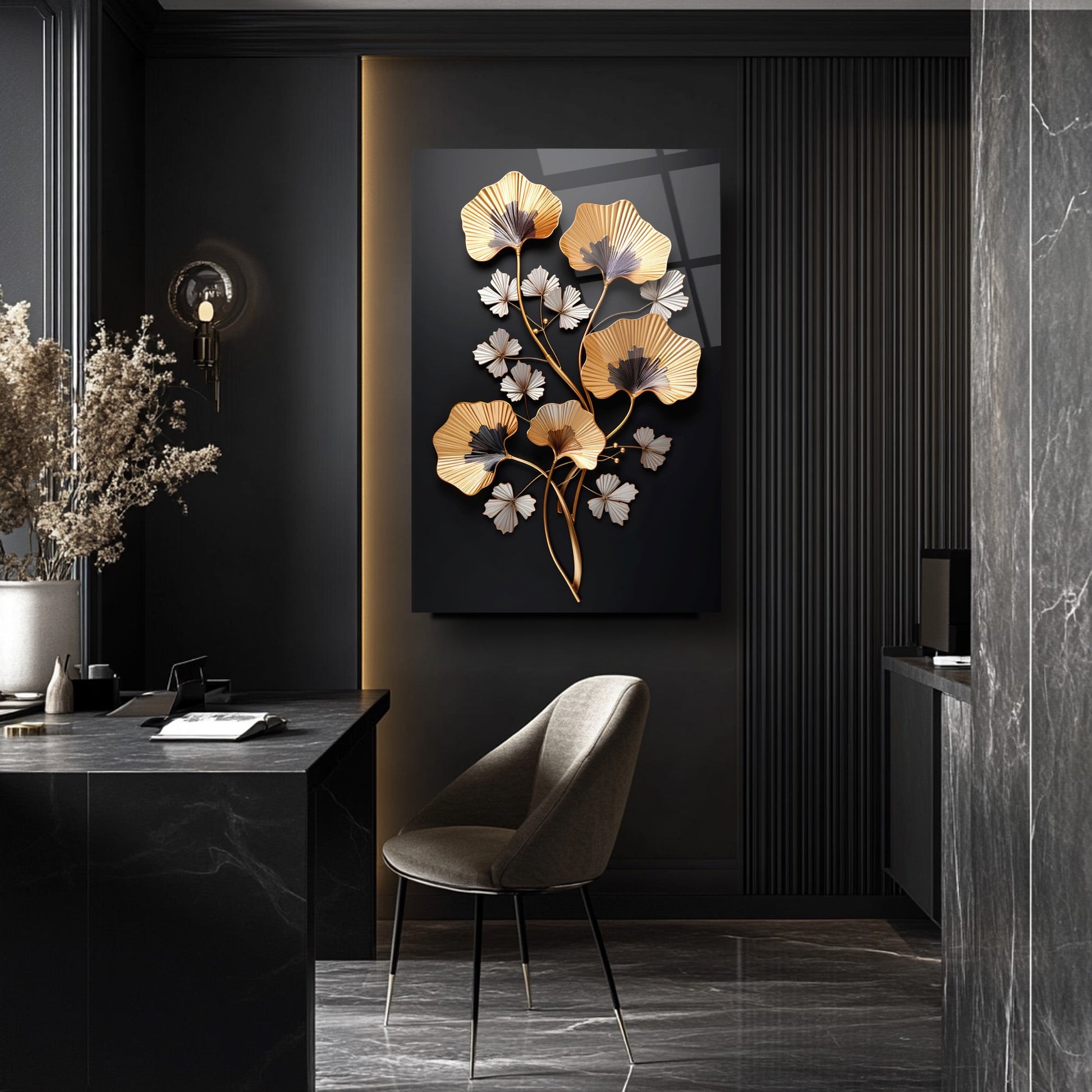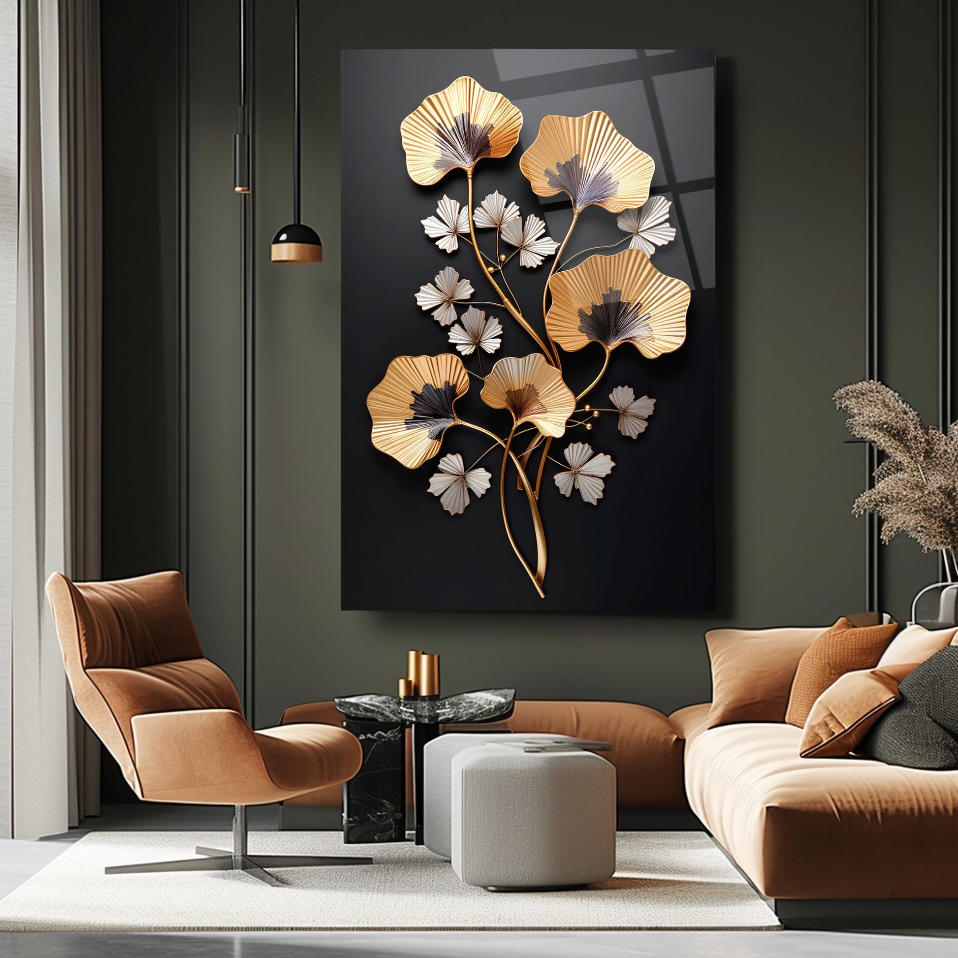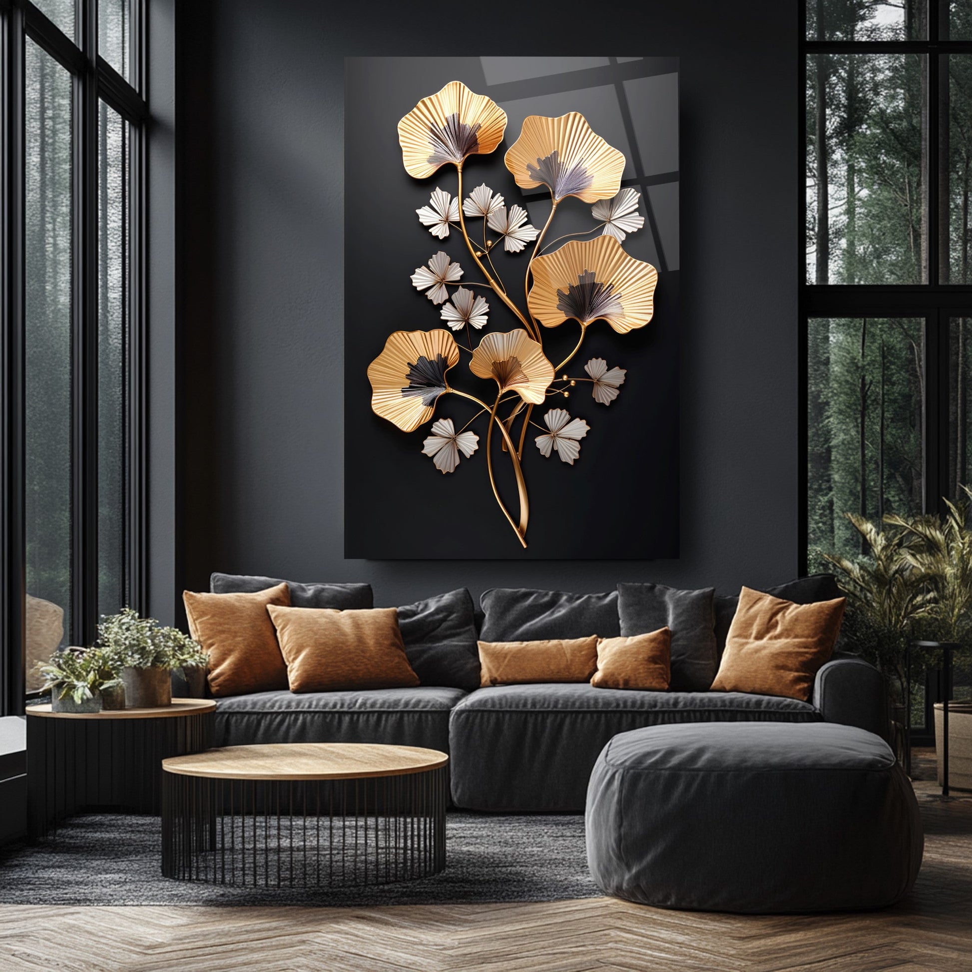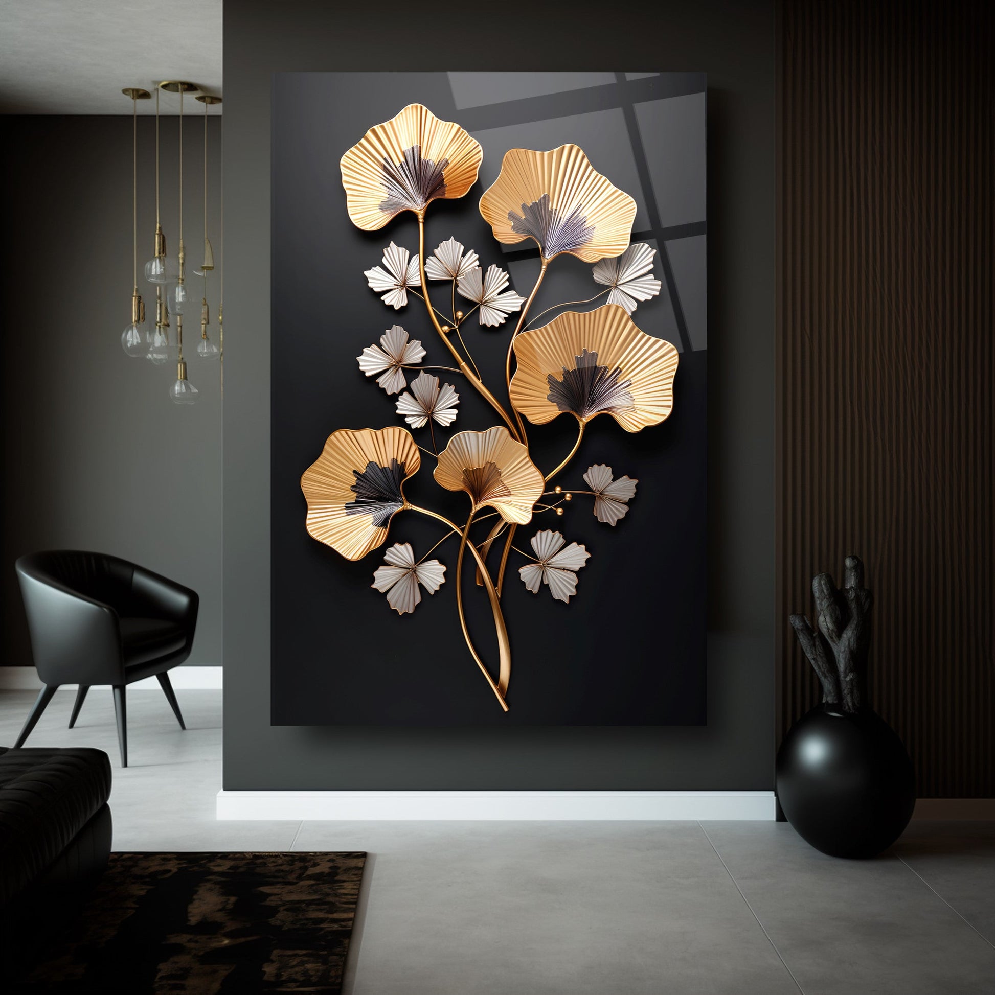 Zarafetin ve şıklığın buluştuğu nokta: Siyah arka plan üzerinde kabartmalı üç boyutlu gold ve beyaz çiçek detaylarıyla tasarlanan bu tablo, yaşam alanlarınıza lüks ve estetik bir dokunuş katıyor. Ultra-clear temperli cam malzeme, standart camlara göre 10 kat daha dayanıklıdır ve rodajlanmış kenarlarıyla güvenli kullanım sağlar. UV dijital baskı teknolojisiyle uygulanan yüksek çözünürlüklü baskı, renklerin solmasını engeller ve uzun ömürlü kullanım sunar. Kolay montajı sayesinde hemen duvarınıza asılabilir. Salon, oturma odası veya ofis gibi farklı alanlarda şıklığıyla öne çıkar. Evinize veya iş yerinize modern bir atmosfer kazandırmak için bu tablo mükemmel bir tercih olacaktır.