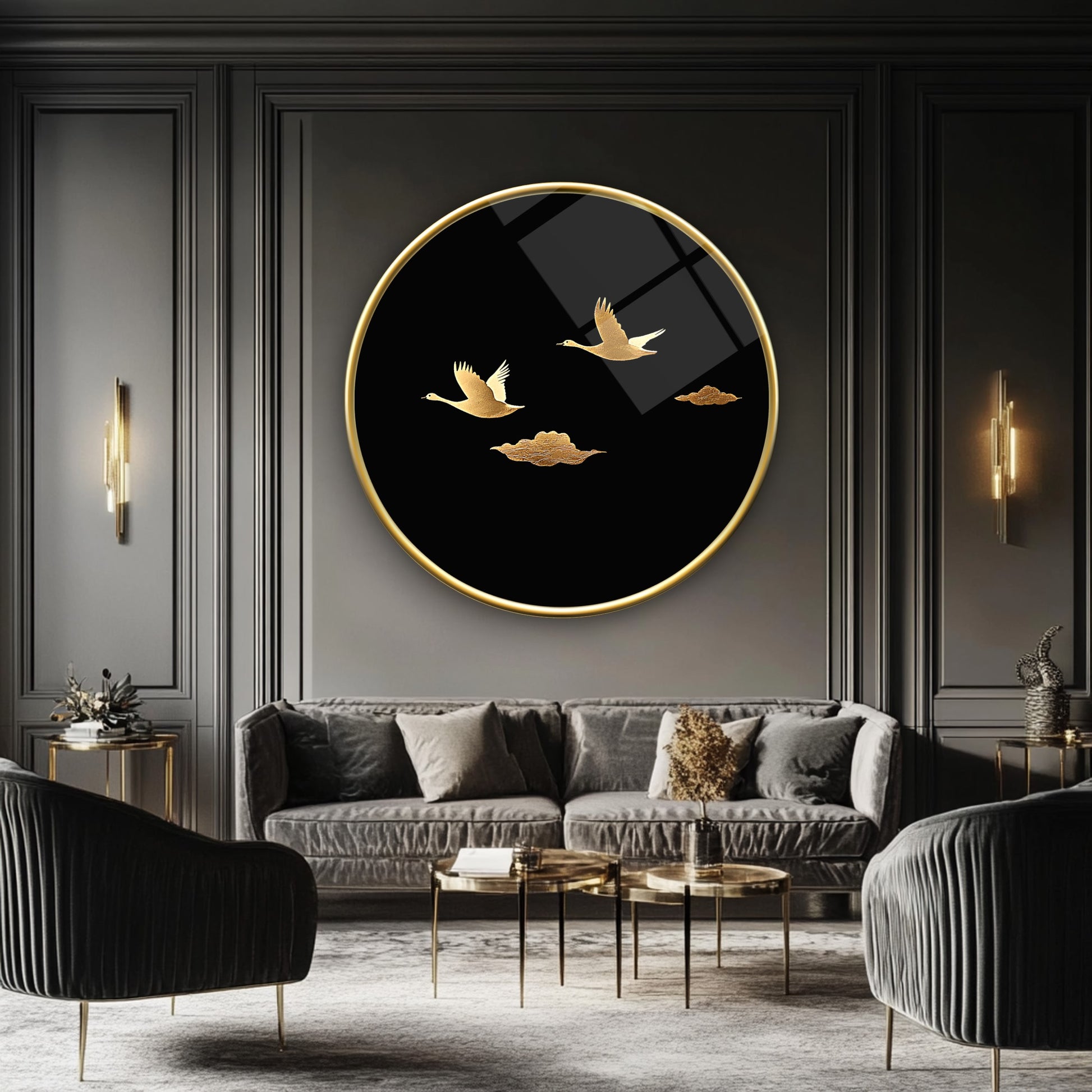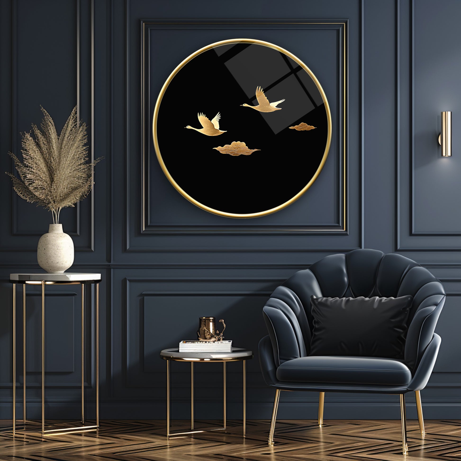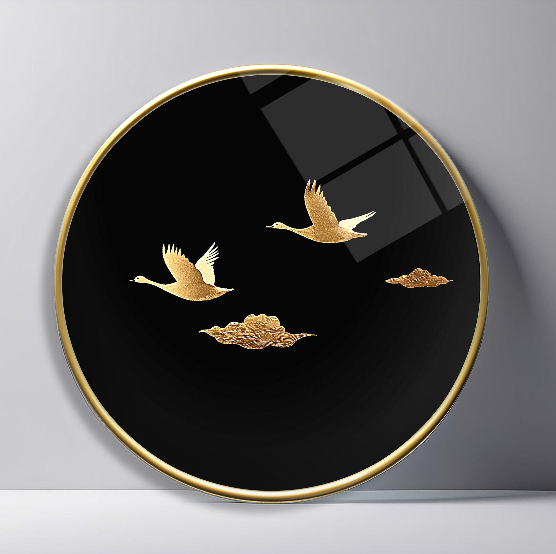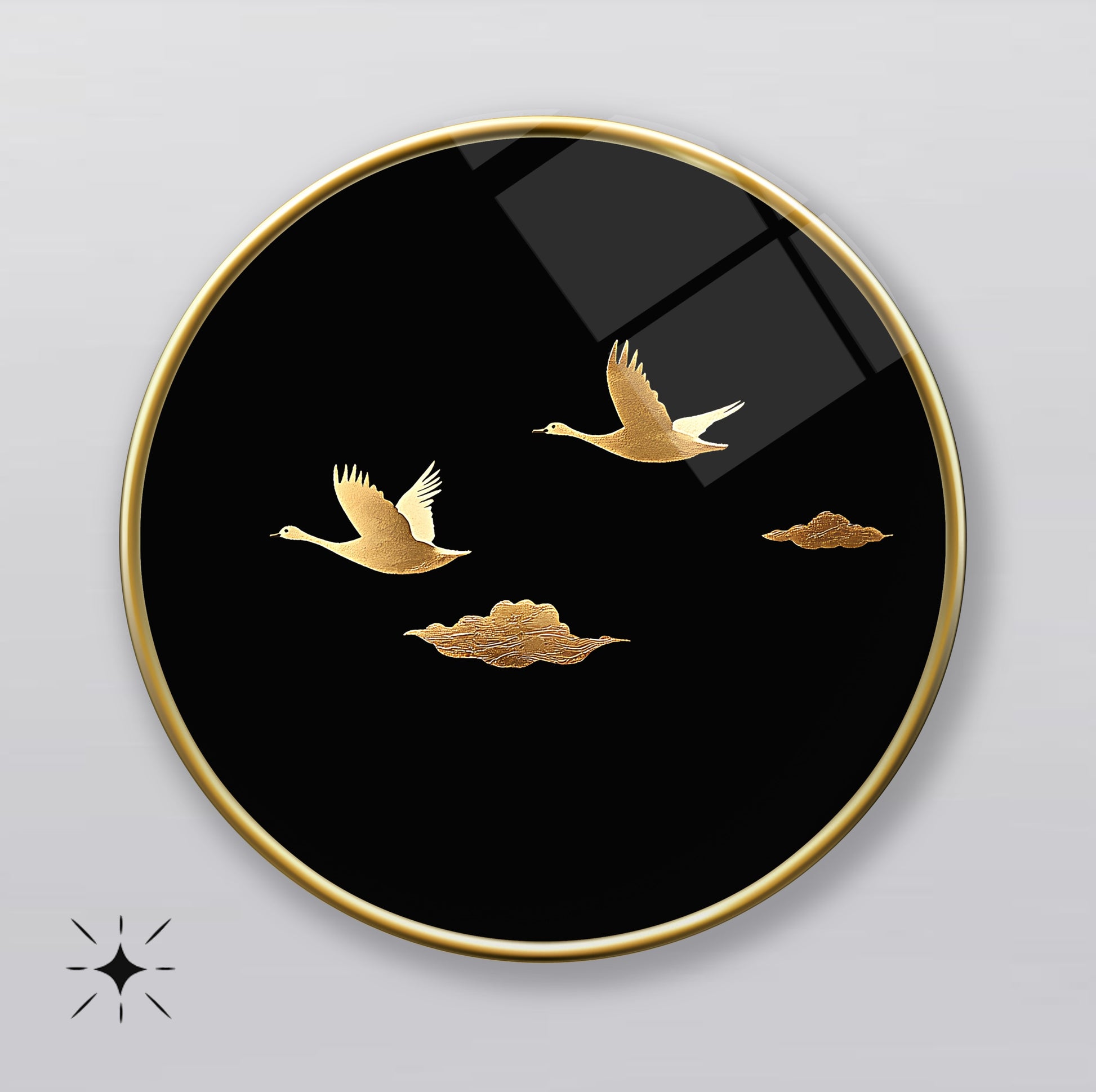 Siyah arka plan ve gold kuş motiflerinin minimal birleşimiyle oluşturulan bu yuvarlak cam tablo, modern ve zarif bir dokunuş sunar. CamDeko kalitesiyle kırılmaz temperli cam üzerine UV baskı teknolojisiyle üretilen ürün, ev, ofis ve özel mekanlarda şıklığı ön plana çıkarır. Minimal tasarım, bulunduğu mekâna sofistike ve dingin bir hava katar. Dayanıklı yapısıyla uzun ömürlü kullanım sağlayan bu tablo, modern dekorasyonlarda estetik ve kalite arayanlar için ideal bir seçenektir.