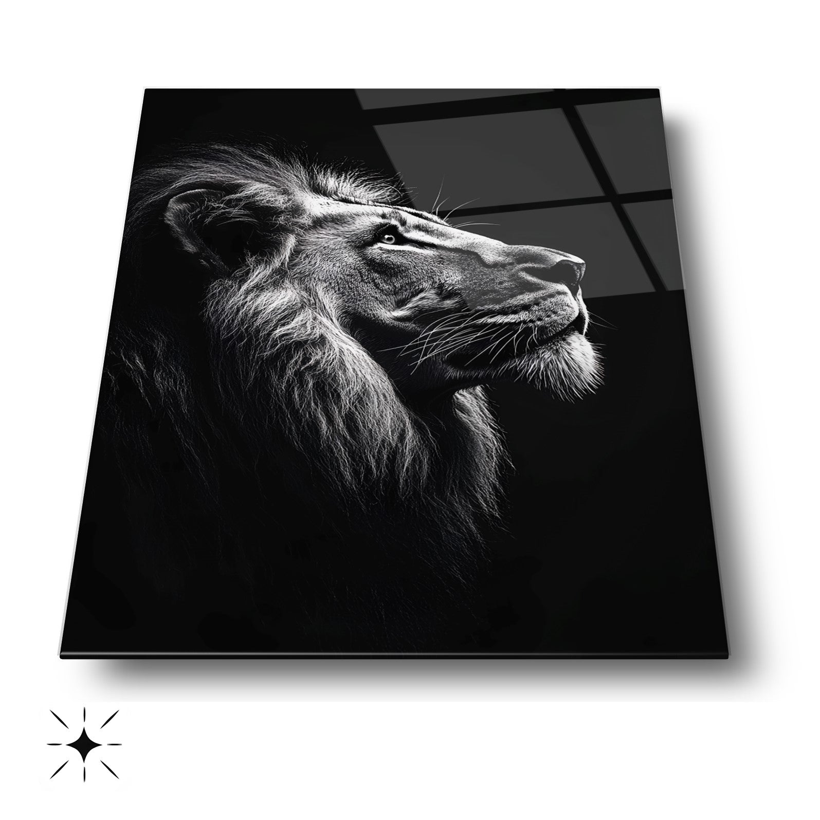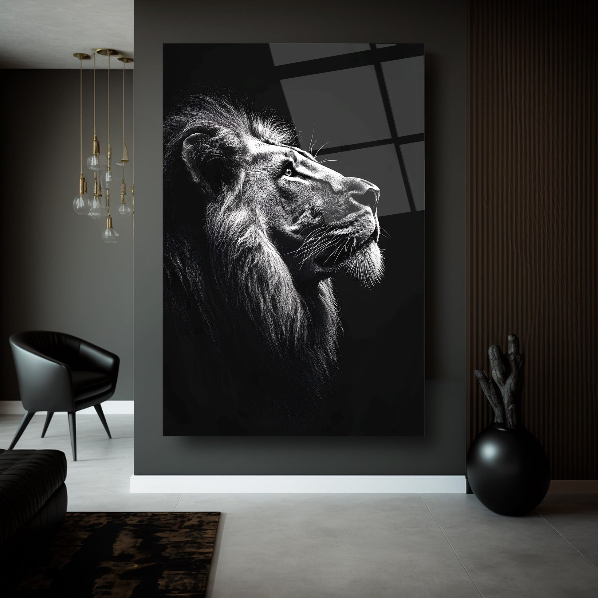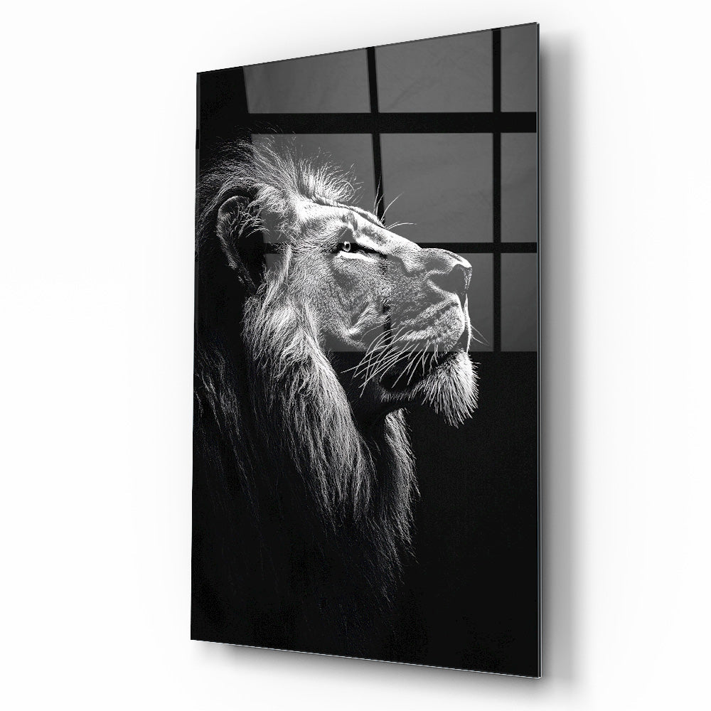 Vahşi Doğanın Asaleti: Siyah Beyaz Aslan Modern Kırılmaz Cam Tablo