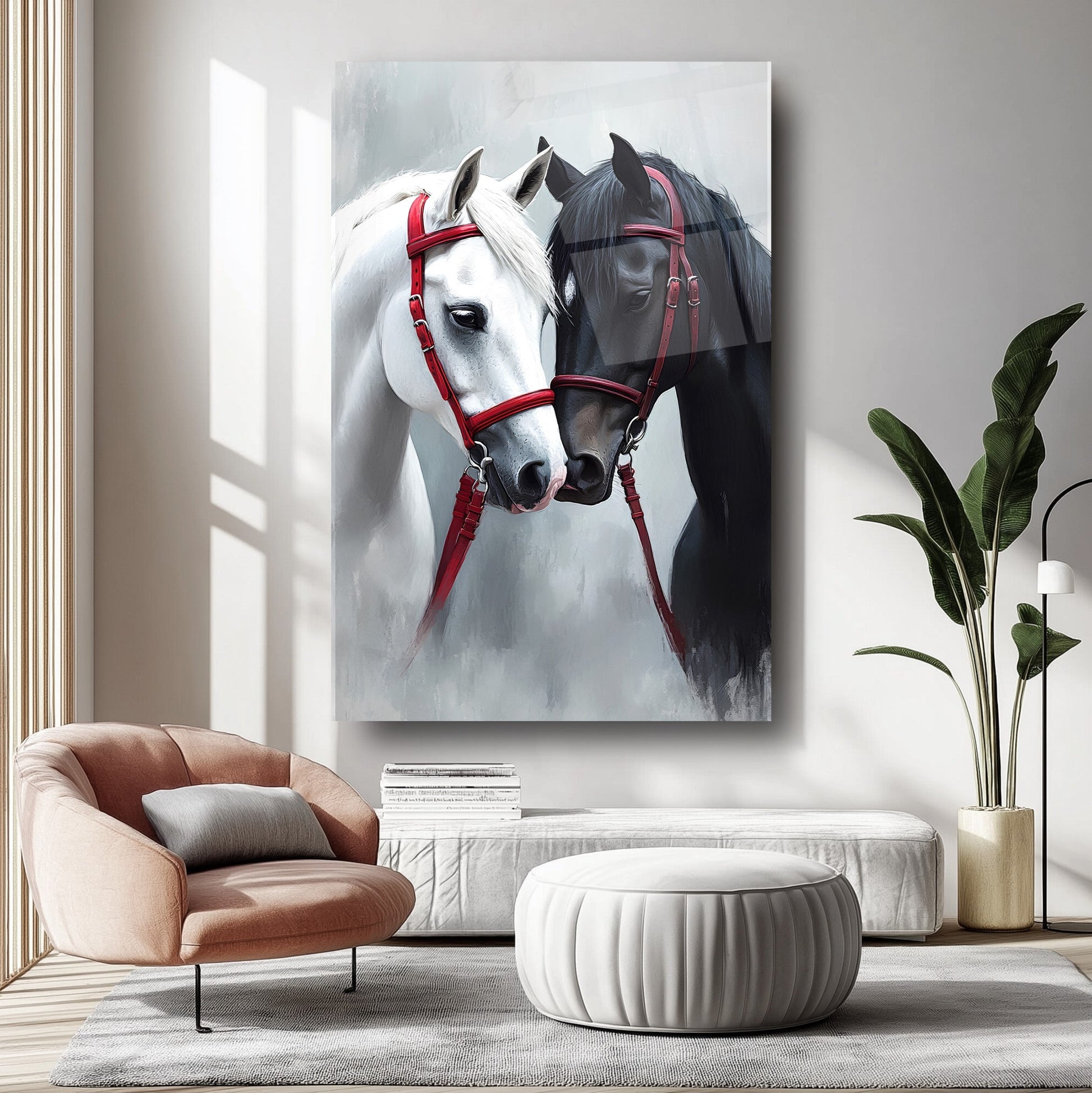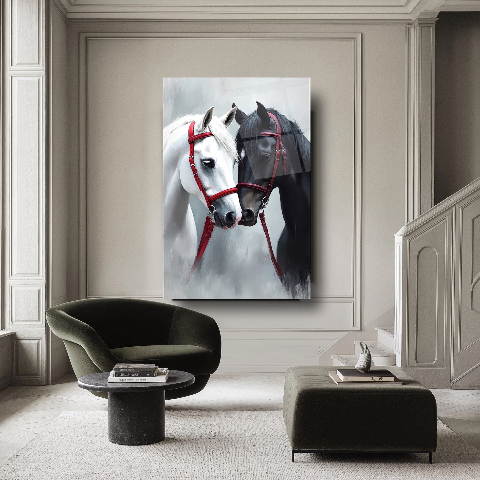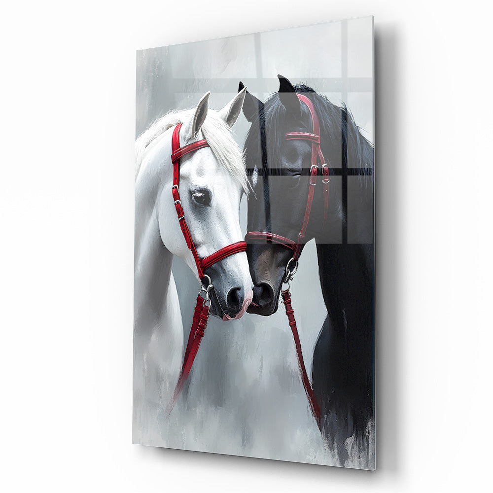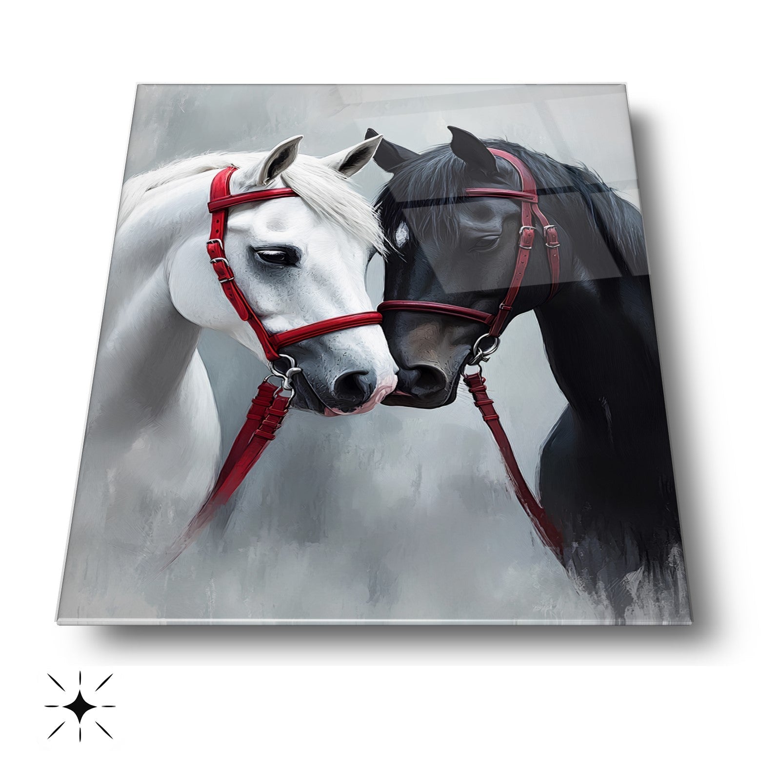 Mekanlarınıza Zarif Bir Doğa Esintisi: Siyah Beyaz Çifte Atlar Cam Tablo