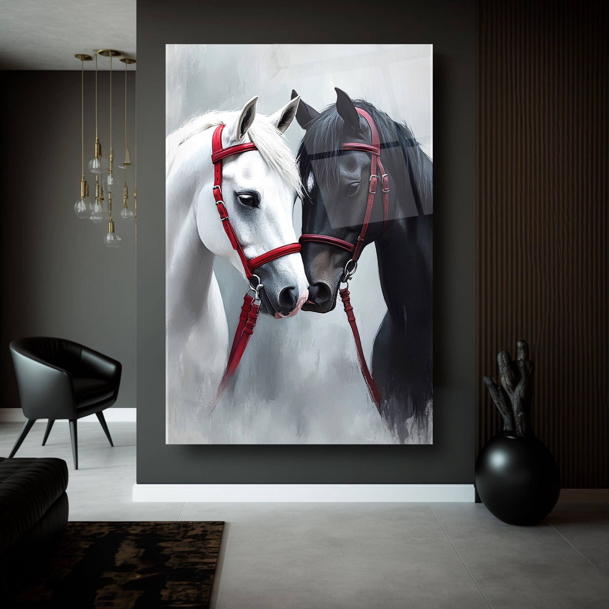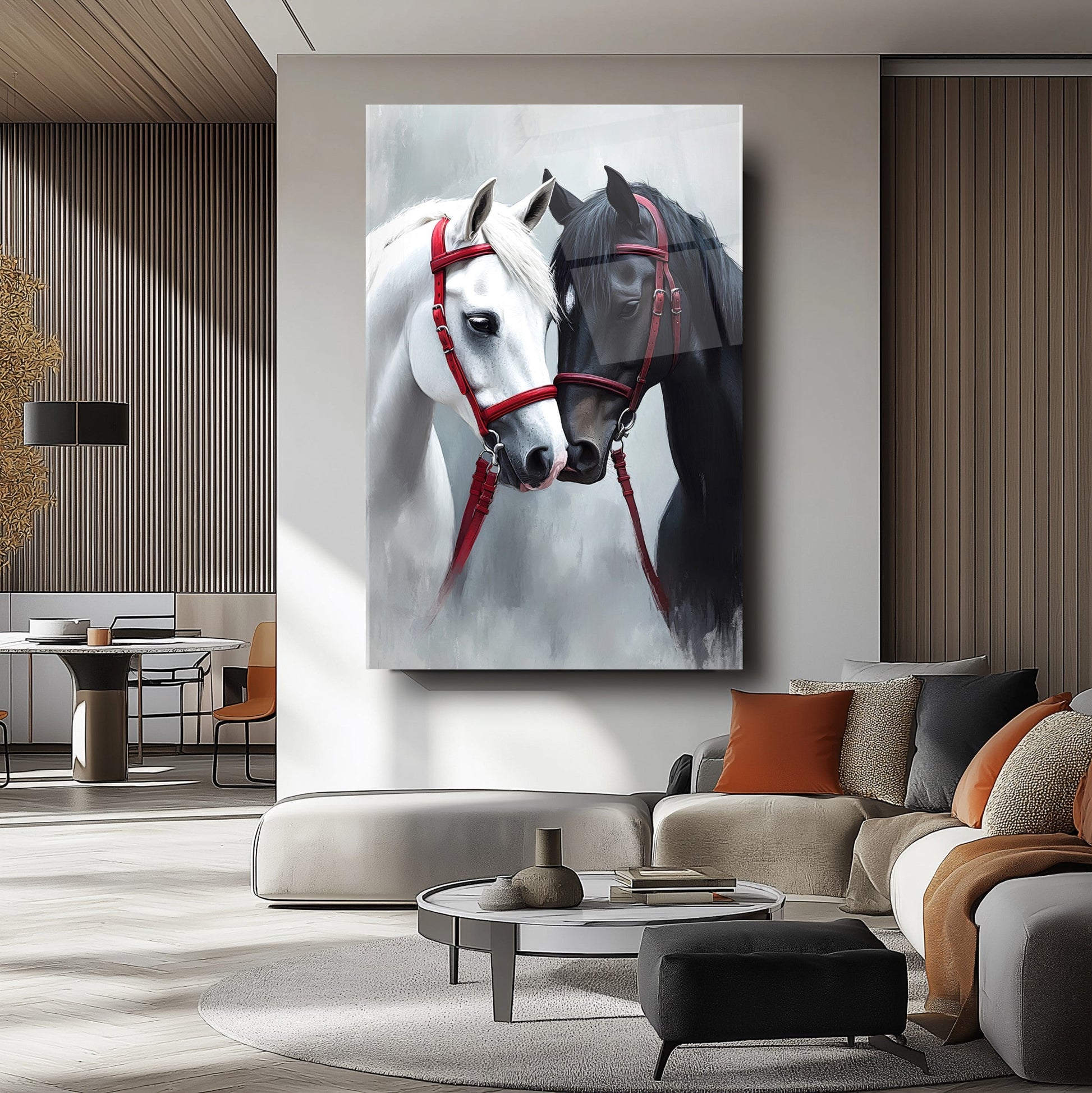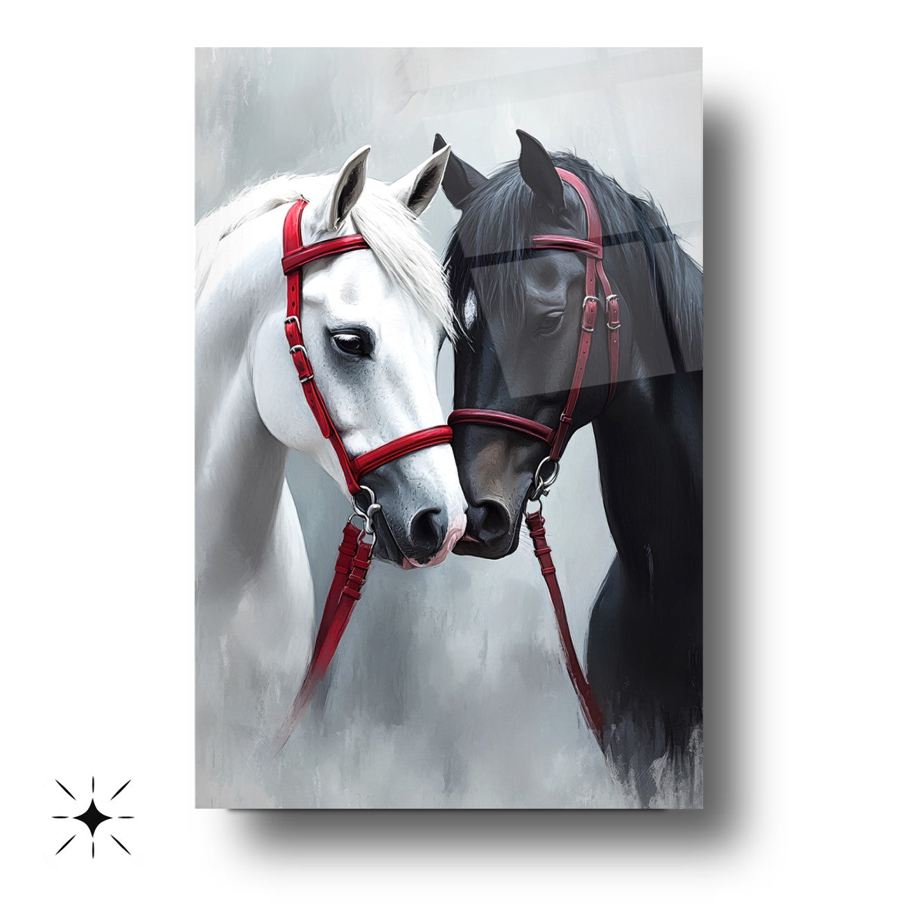 Mekanlarınıza Zarif Bir Doğa Esintisi: Siyah Beyaz Çifte Atlar Cam Tablo