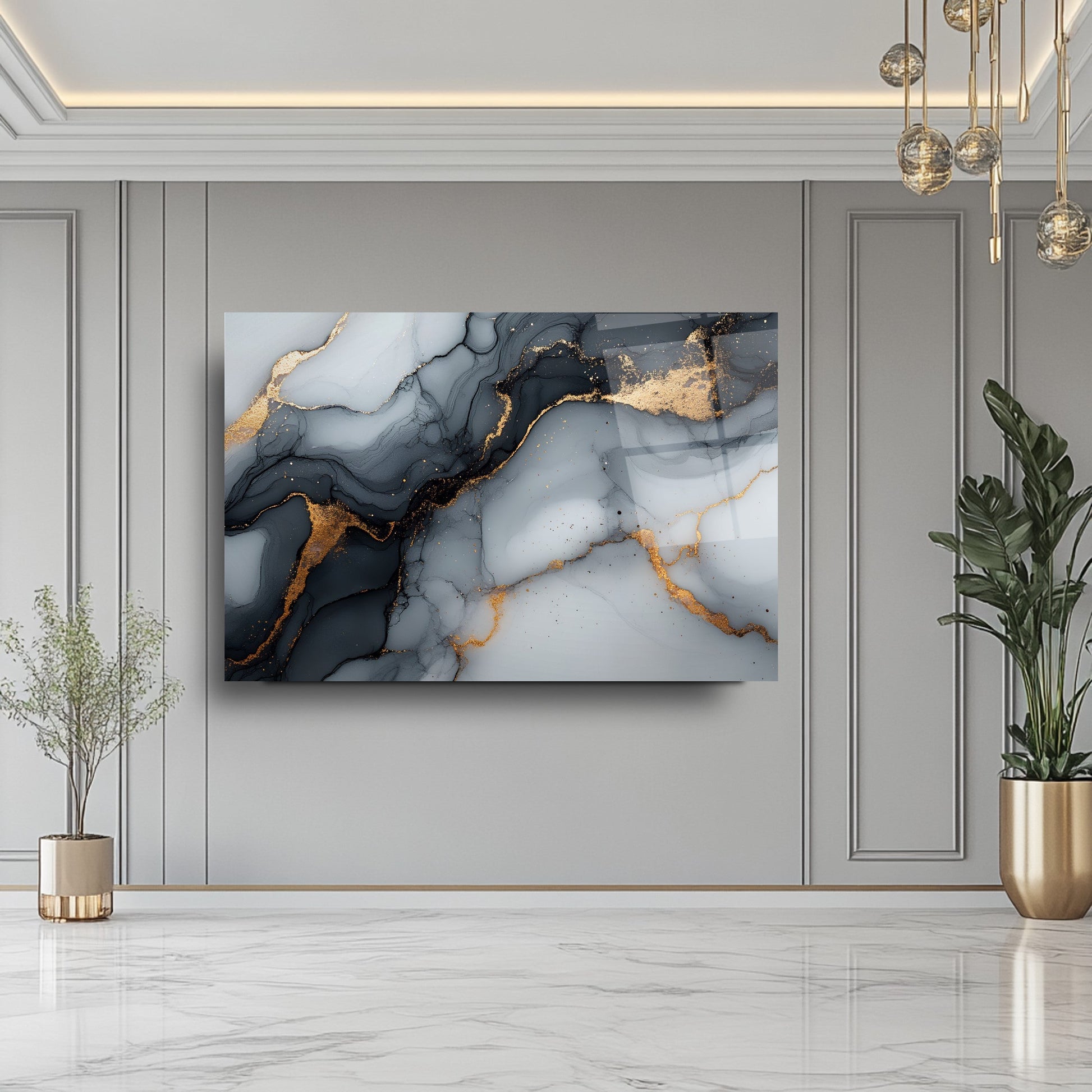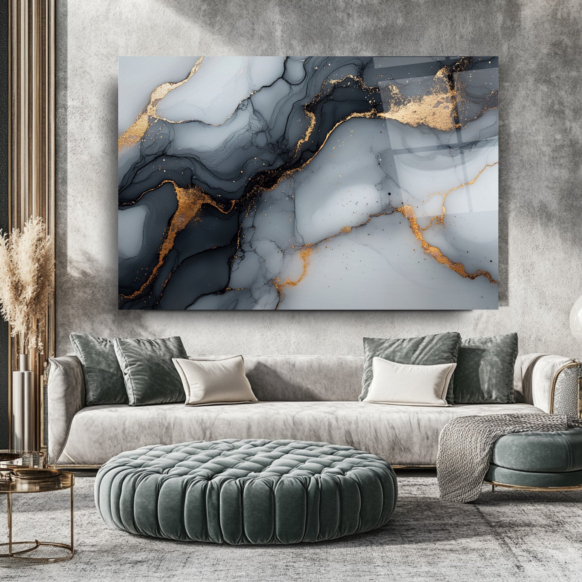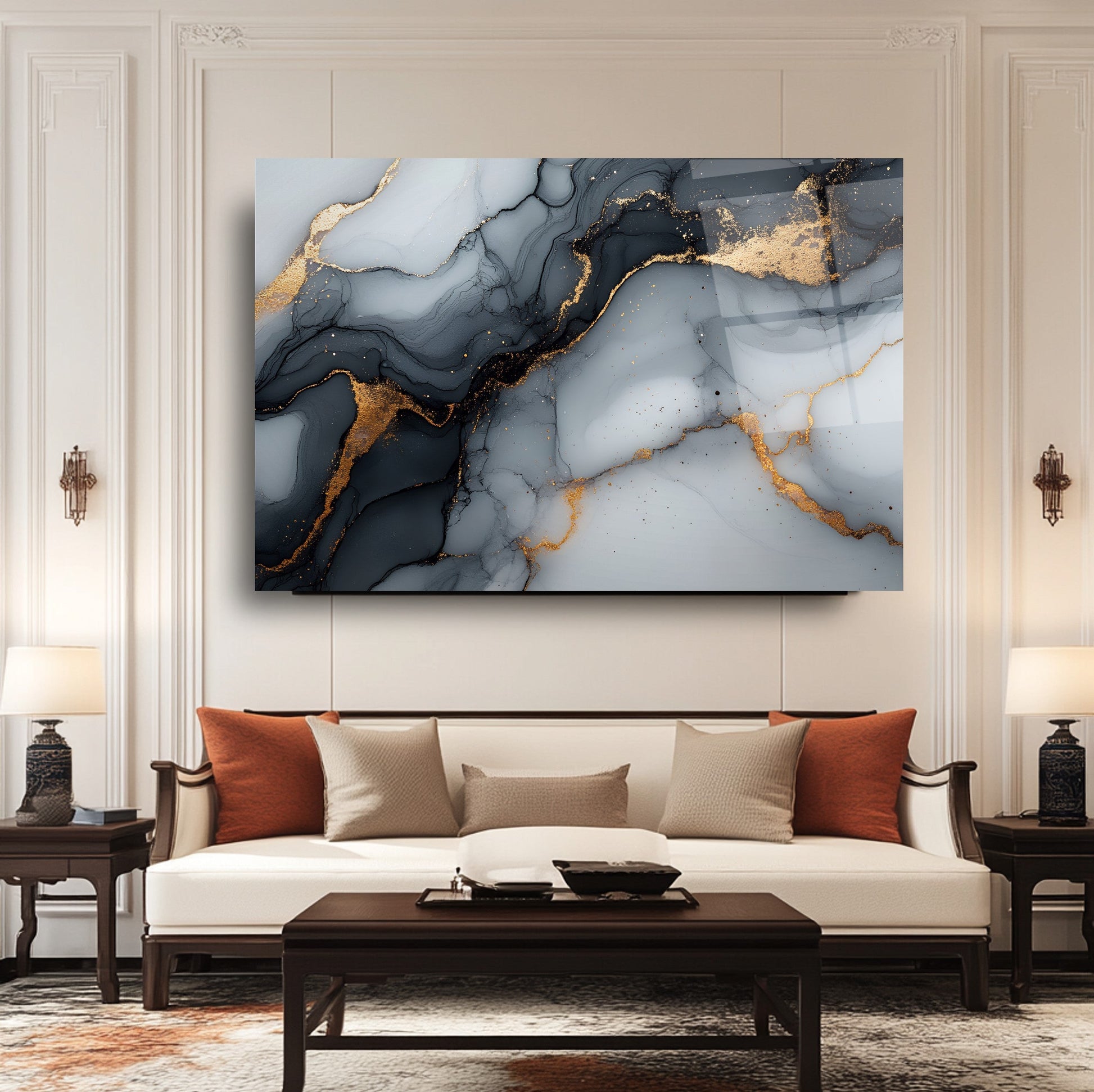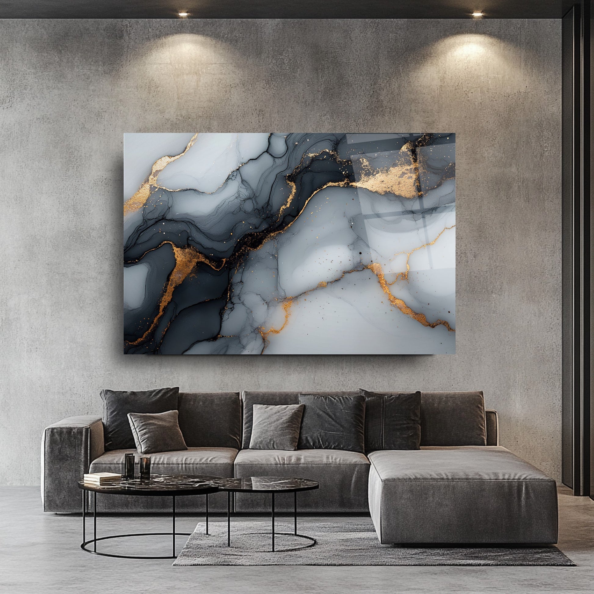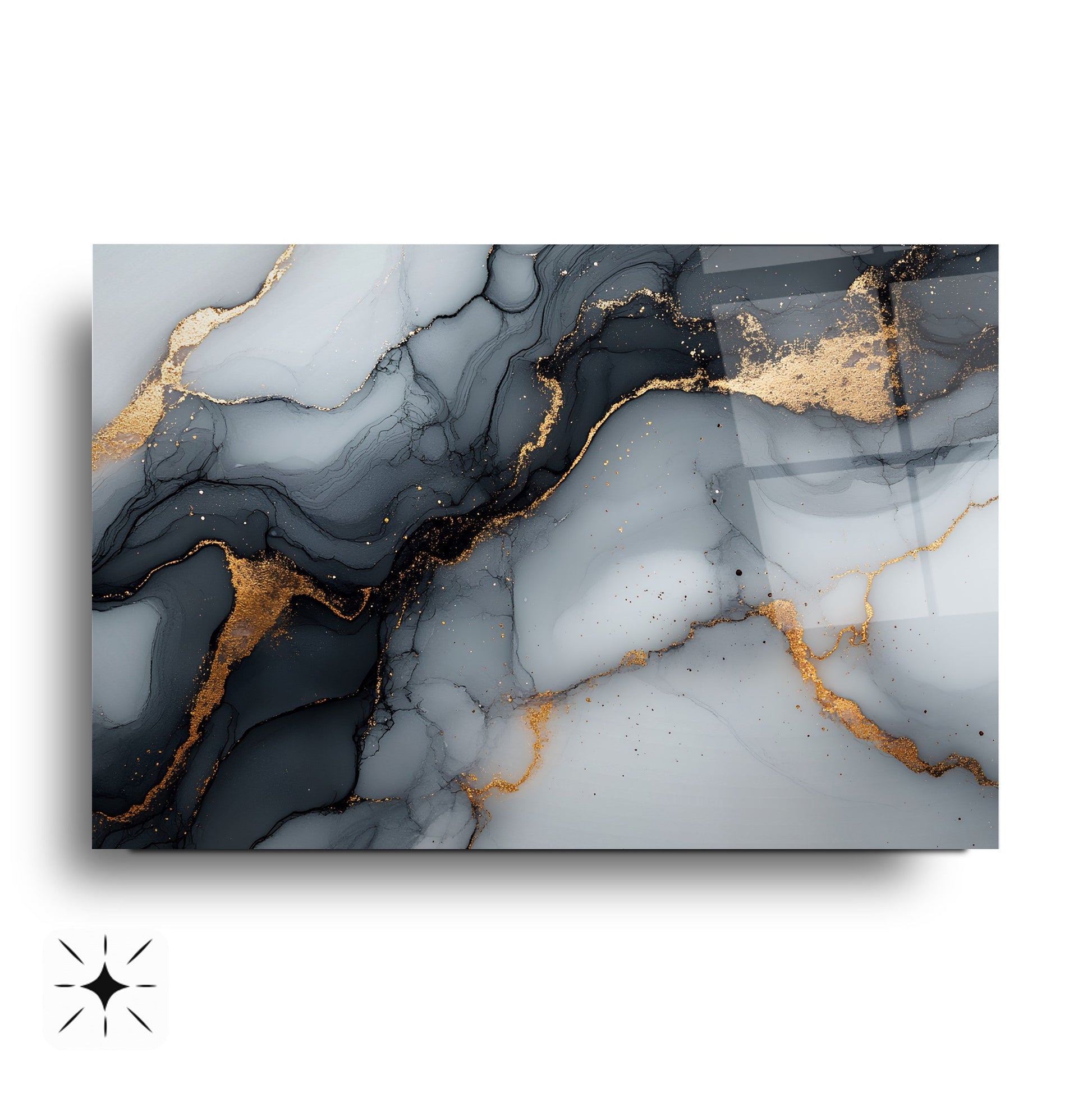 Bu çerçevesiz cam tablo, siyah ve beyaz mermer desenlerine şık gold dokunuşlar katarak zarafeti modern tasarımla buluşturuyor. Soyut mermer dalgaları, hem minimalist hem lüks bir atmosfer yaratıyor; özellikle salon, ofis ya da giriş alanlarında güçlü görsel etki sağlıyor. 4 mm temperli cam ve UV baskı detayları sayesinde uzun ömürlü kullanım ve canlı renkler sunuyor. Kolay montajlı tasarımı, dekorunuza anında şıklık katmak isteyenler için ideal. Cam tablo, modern duvar dekoru ve mermer desenli cam baskı arayanlara özel bir tercih.