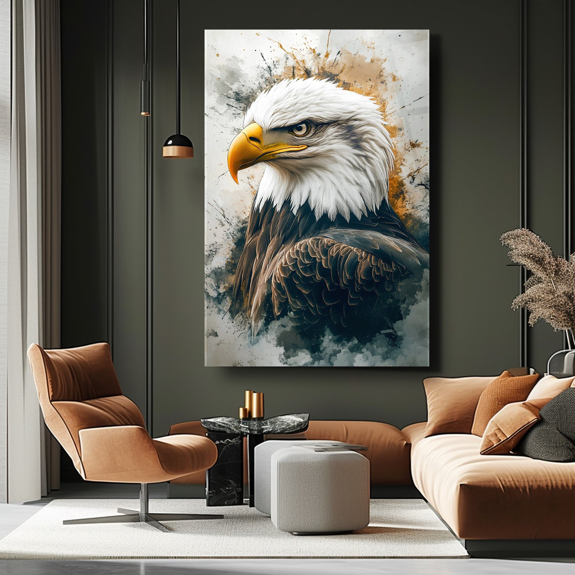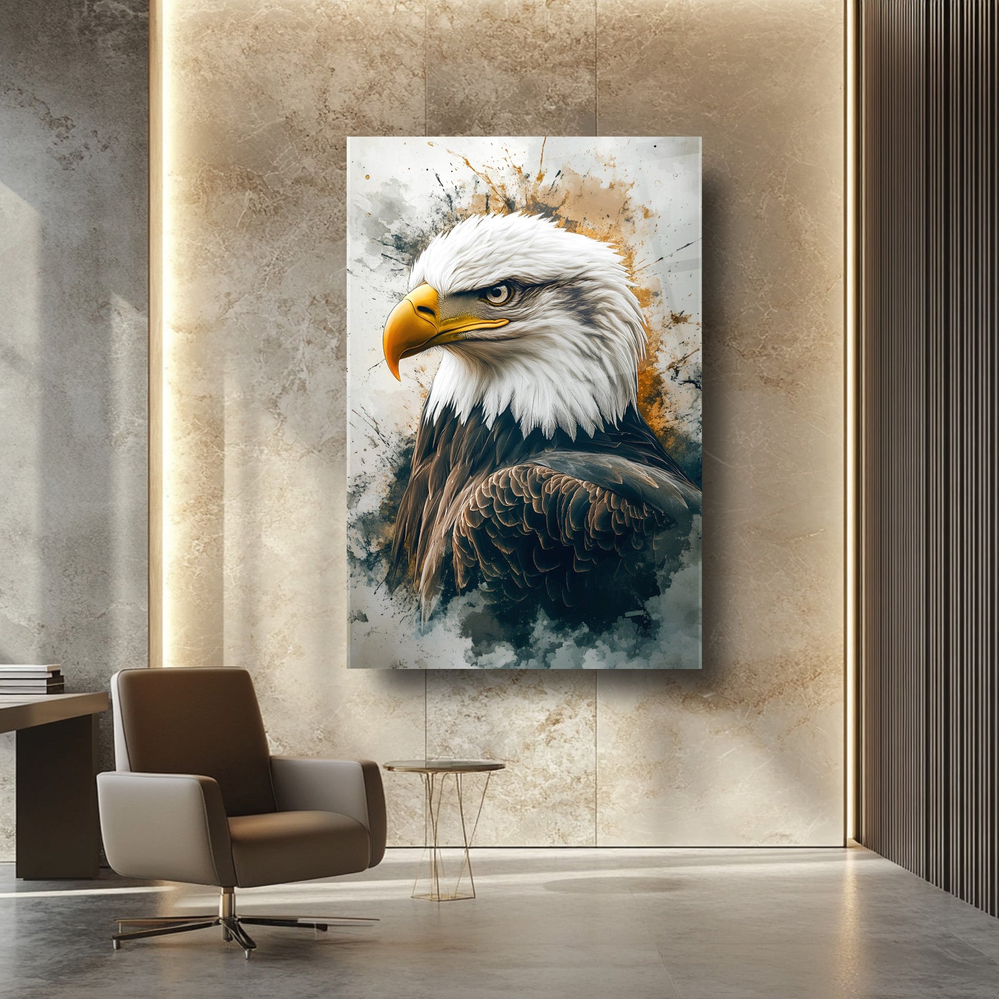 Vahşi Asaletin Sanatsal İfadesi: Siyah Beyaz İhtişamlı Kartal Cam Tablo