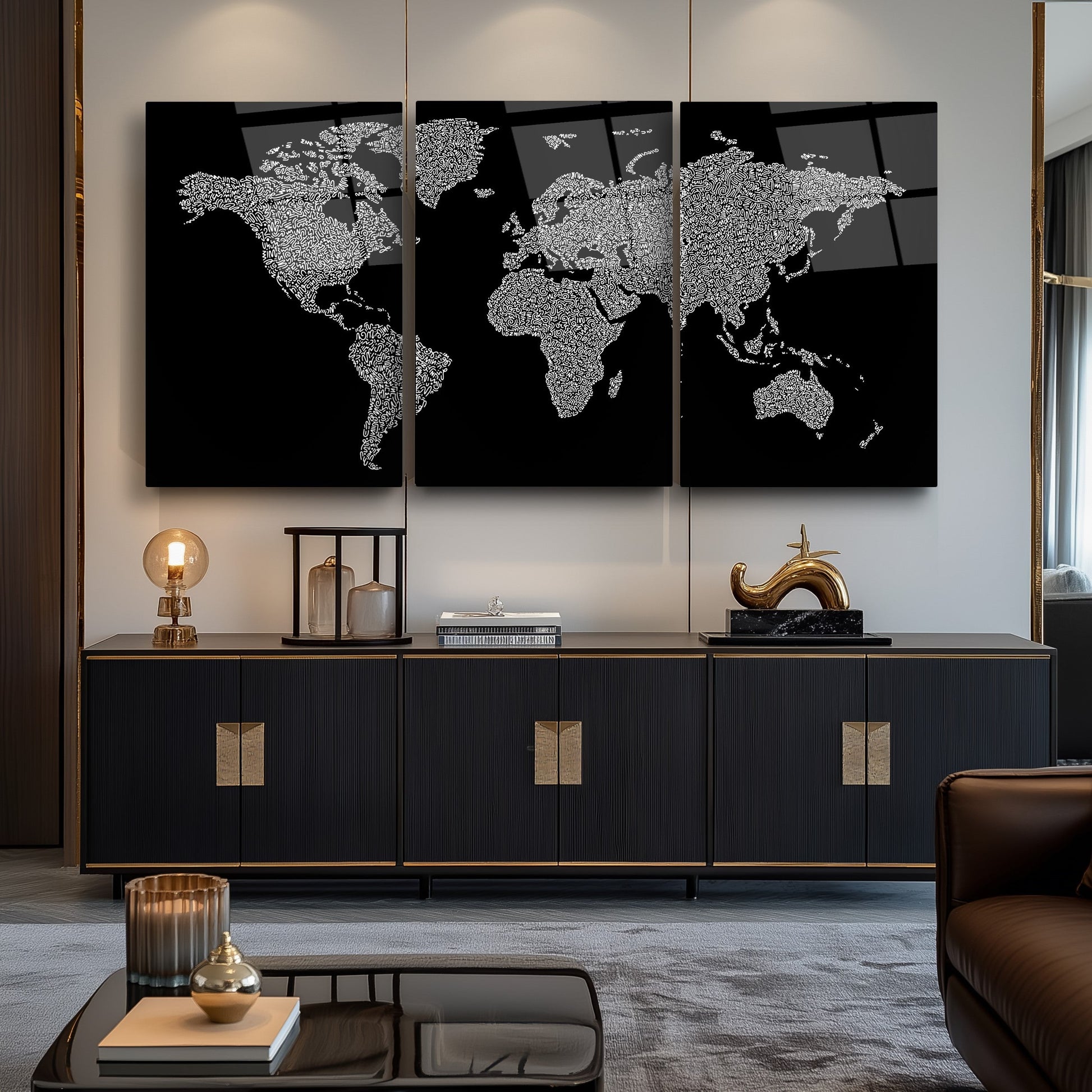 Siyah beyaz renklerin zarif uyumuyla tasarlanmış bu kurumsal dünya haritası üçlü cam tablo seti, makam odaları ve ofisler için mükemmel bir dekorasyon seçeneği sunuyor. Kırılmaz temperli cam üzerine UV baskı ile hazırlanan ürün, uzun ömürlü ve dayanıklıdır. Modern ve minimalist çizgileriyle profesyonel çalışma alanlarına sofistike bir hava katan bu set, mekanlarınıza hem şıklık hem de prestij katacak. CamDeko’nun kalite ve estetik anlayışıyla, ofis dekorasyonunuzda fark yaratmak isteyenler için ideal.