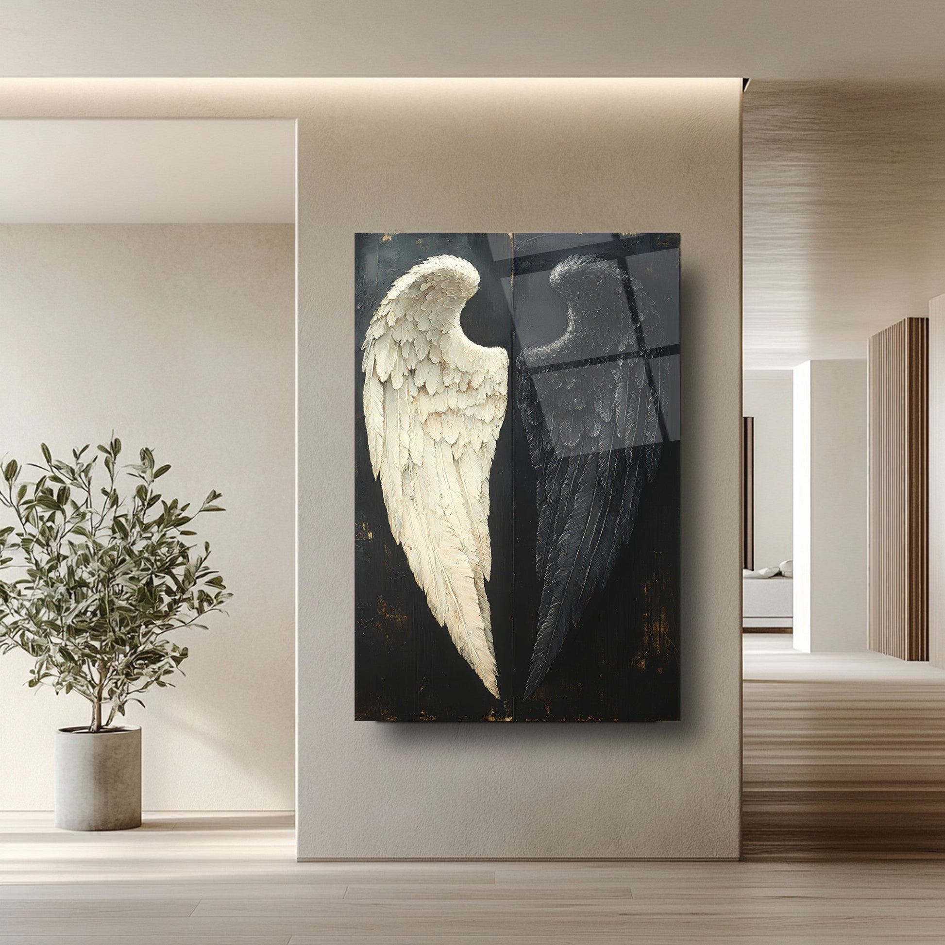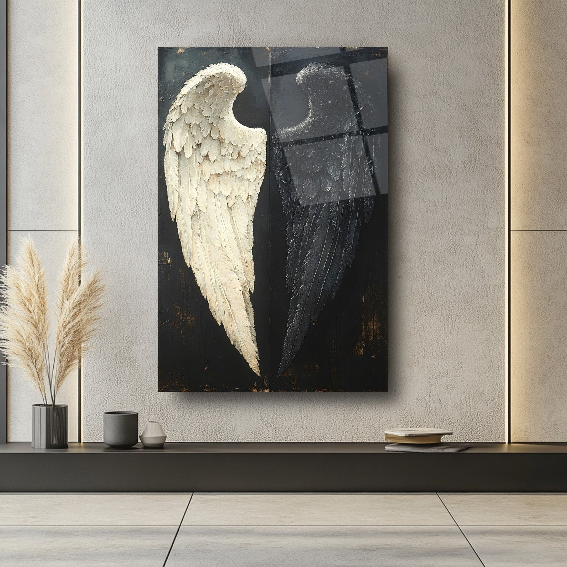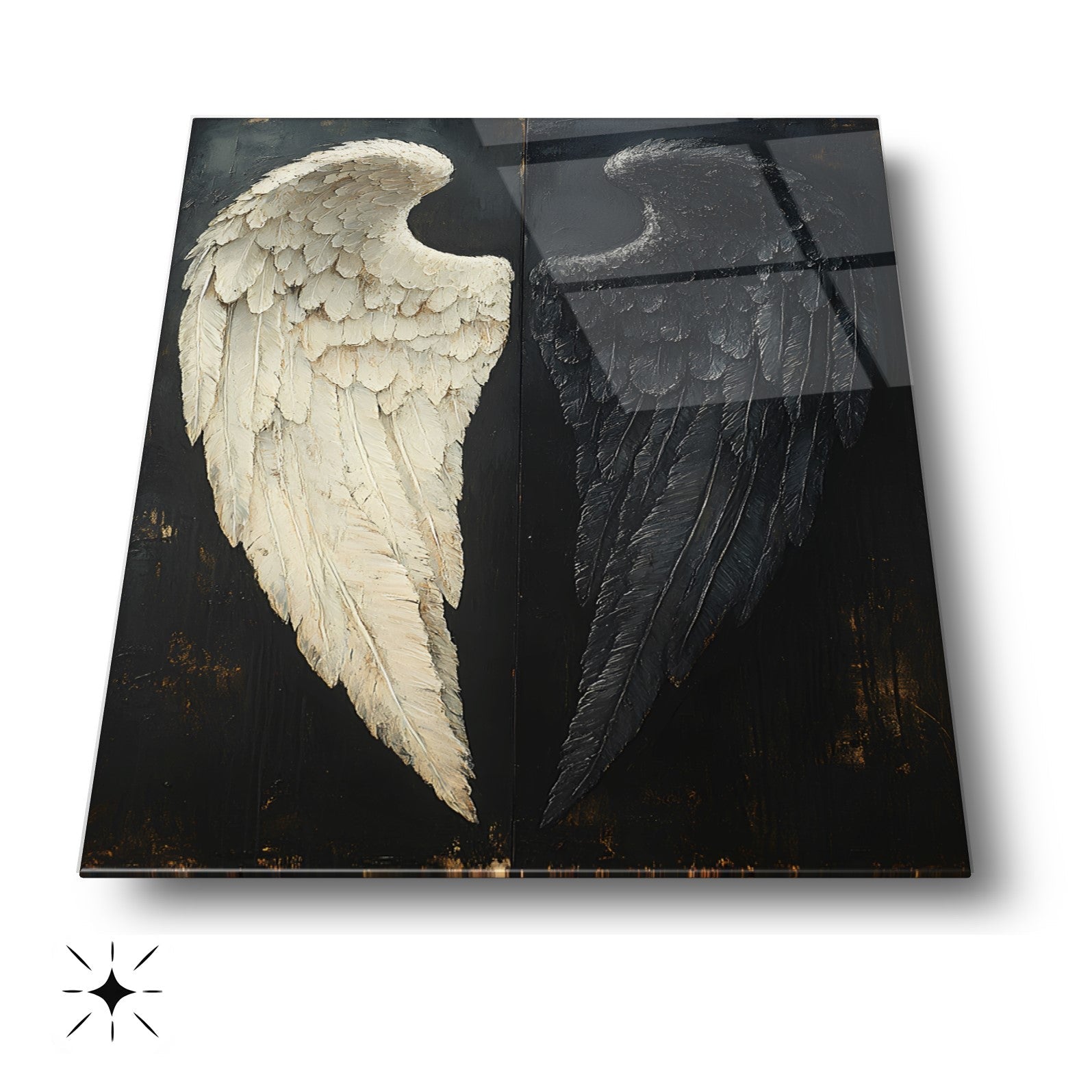 Mekanlarınıza Retro Bir Zarafet: Siyah Beyaz Melek Kanatları Cam Tablo