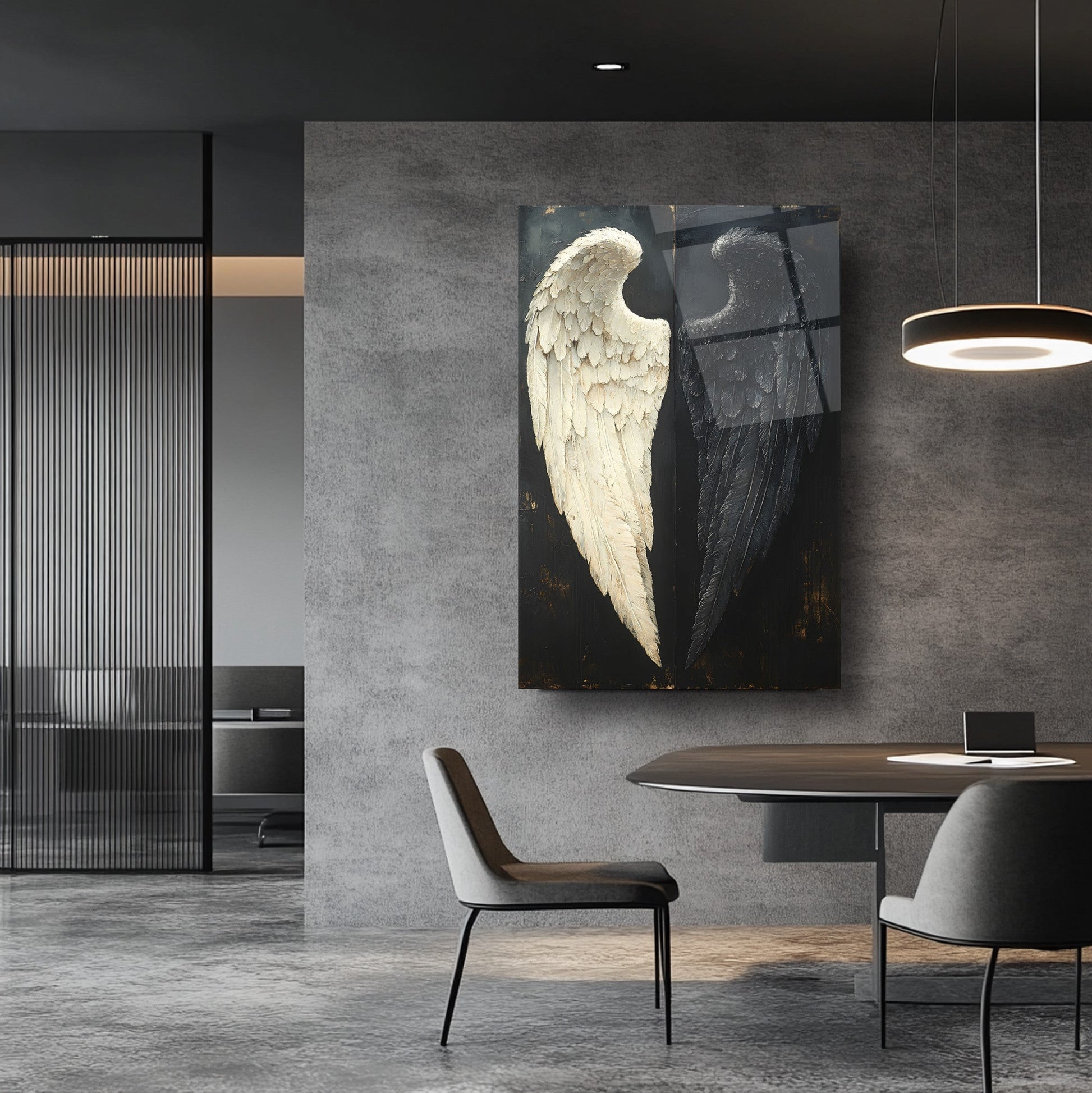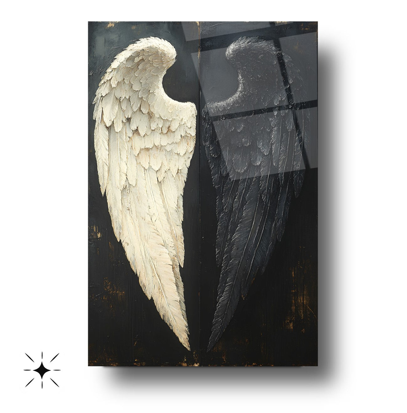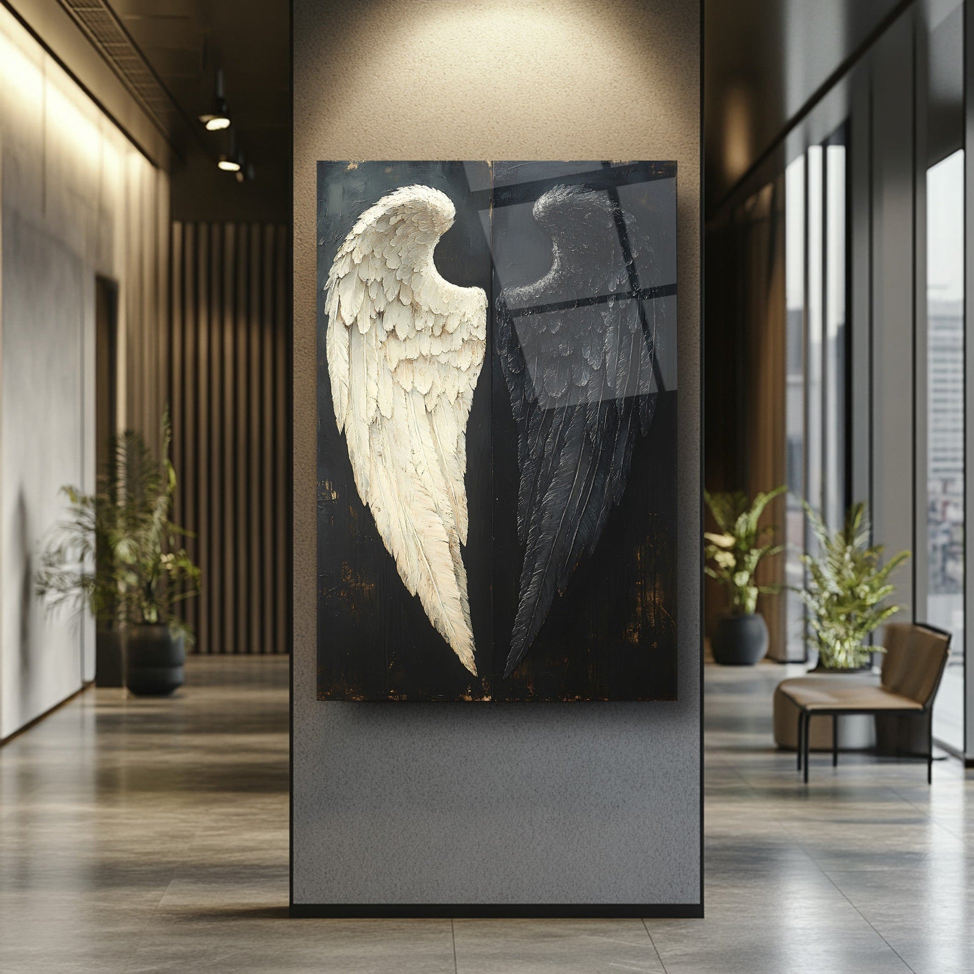 Mekanlarınıza Retro Bir Zarafet: Siyah Beyaz Melek Kanatları Cam Tablo