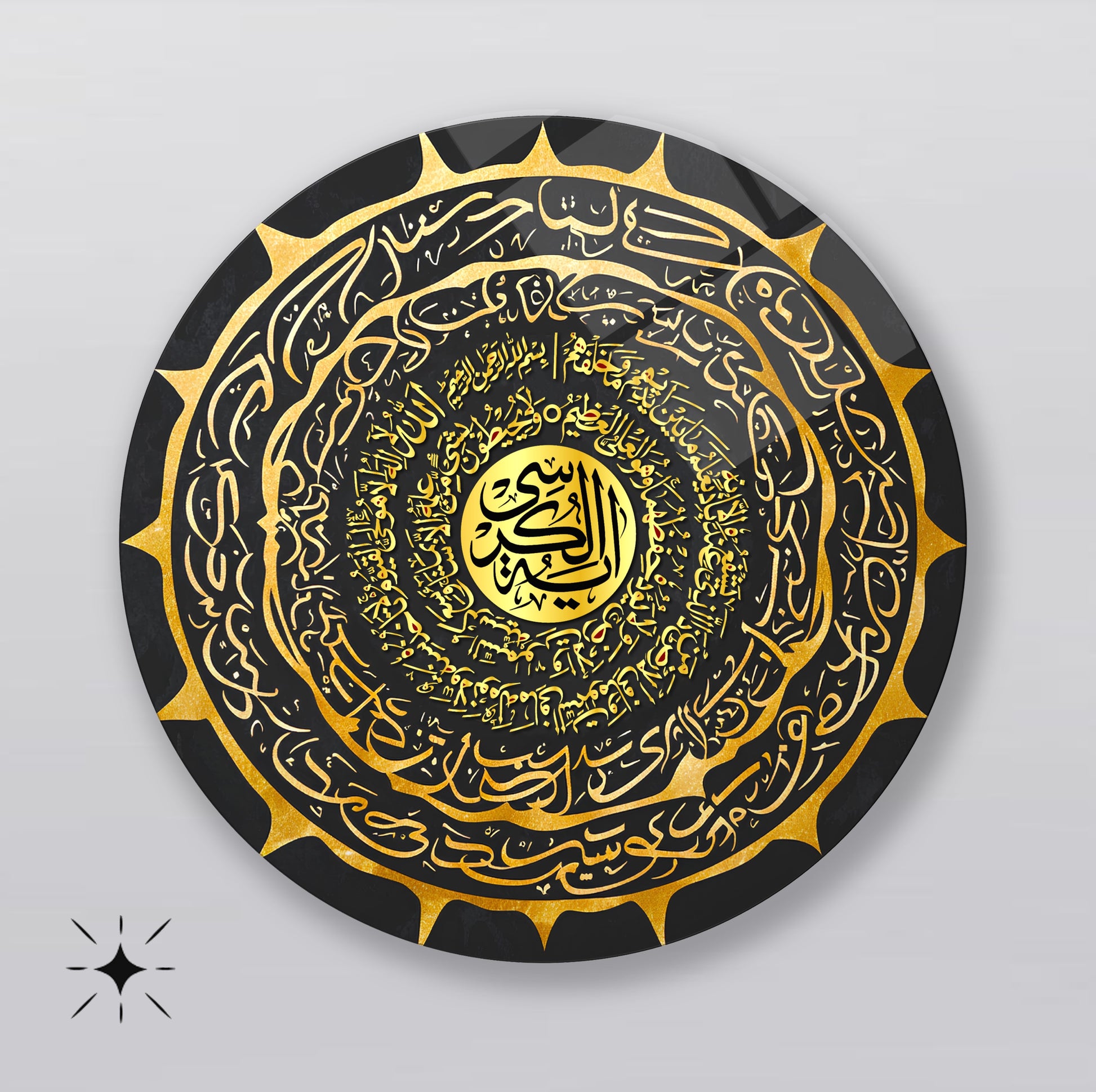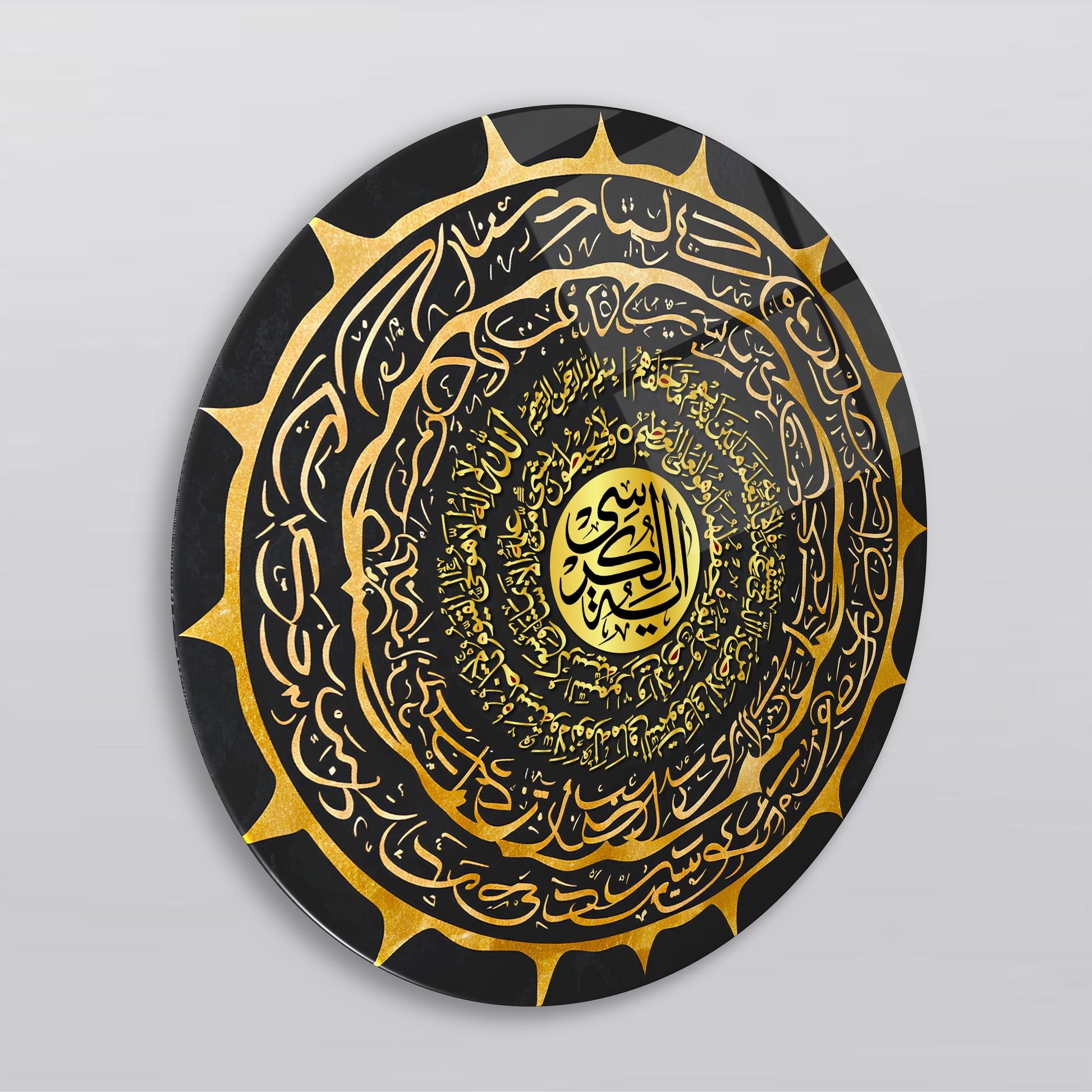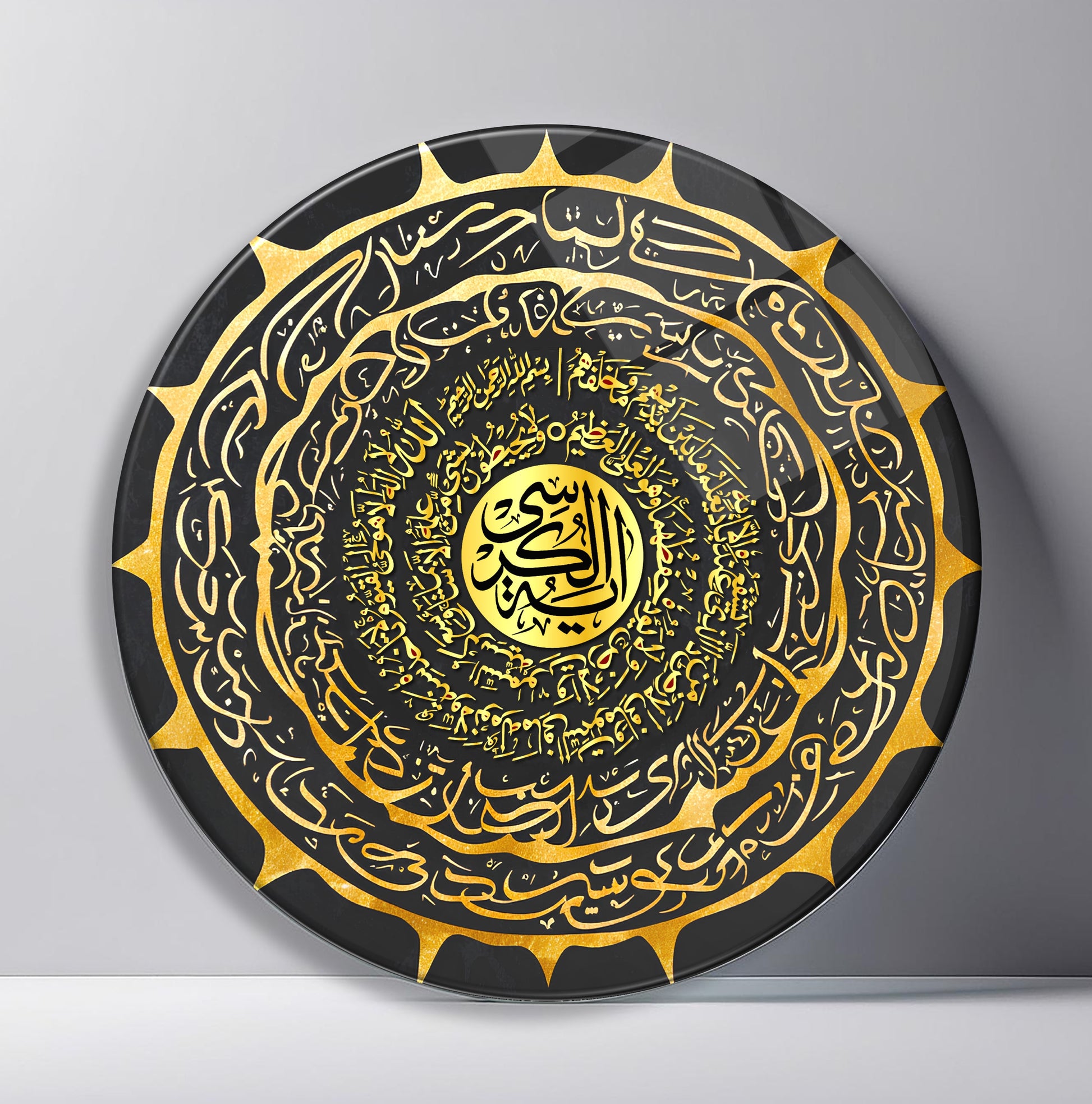 Ayetel Kursi İslami Hat Sanatı Yuvarlak Cam Tablo