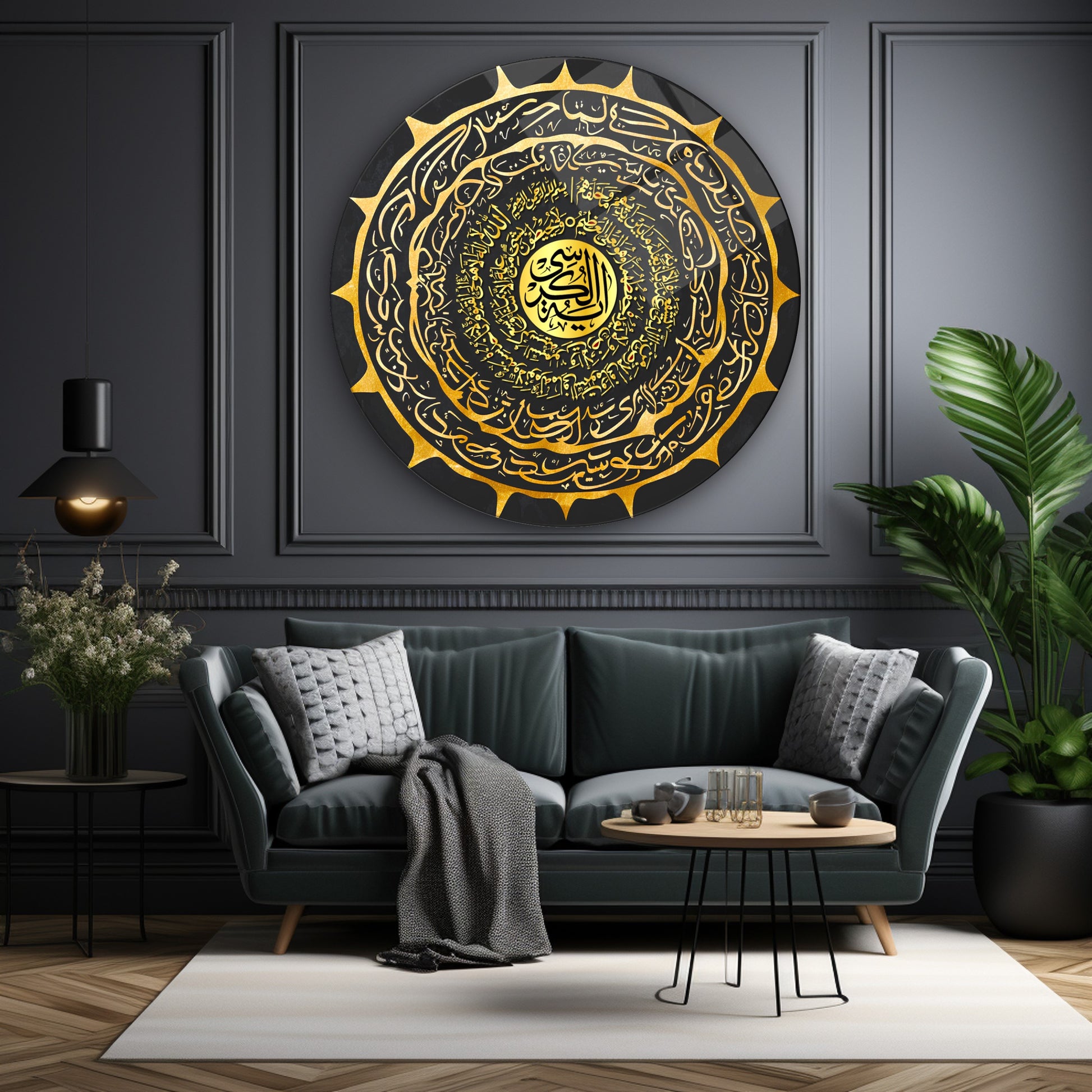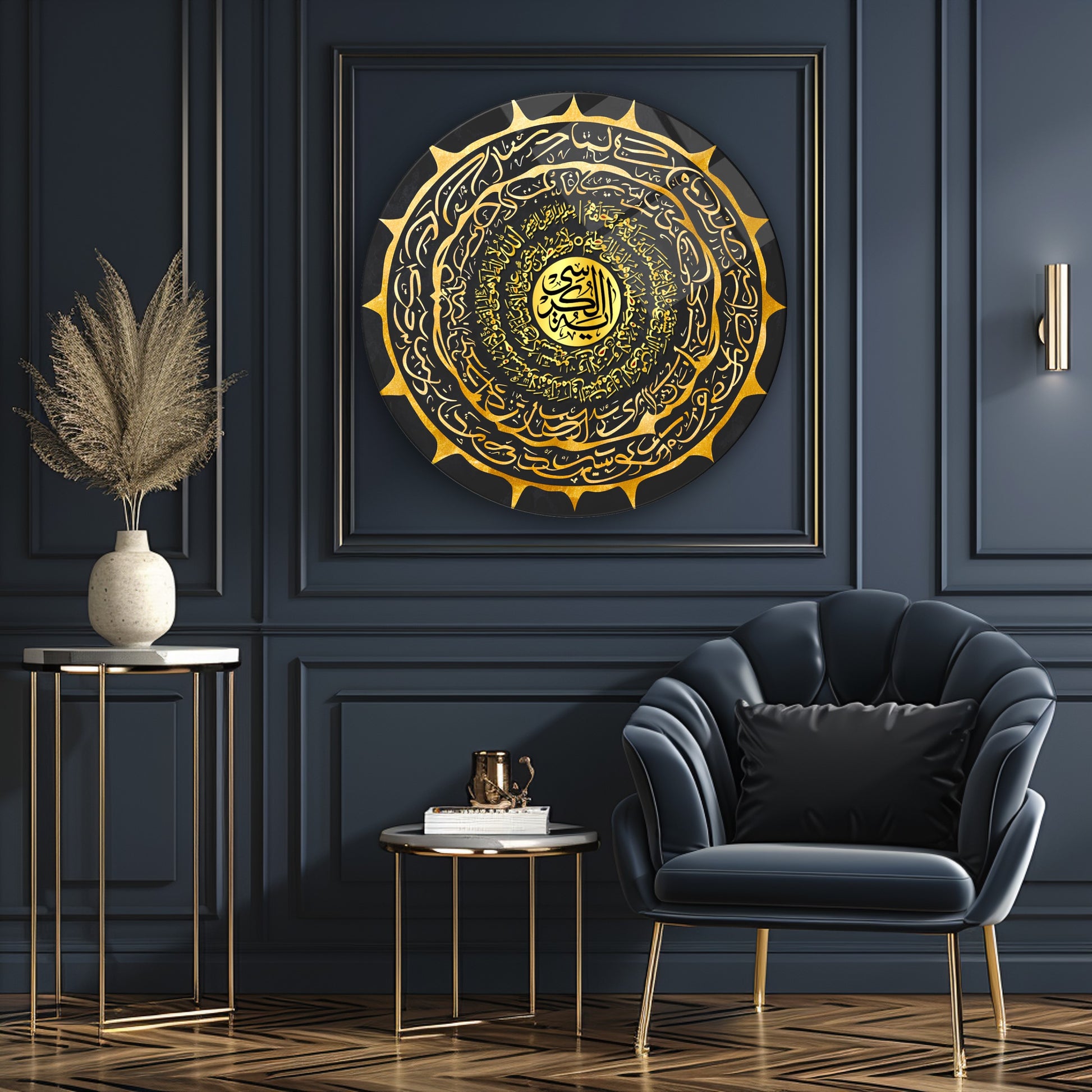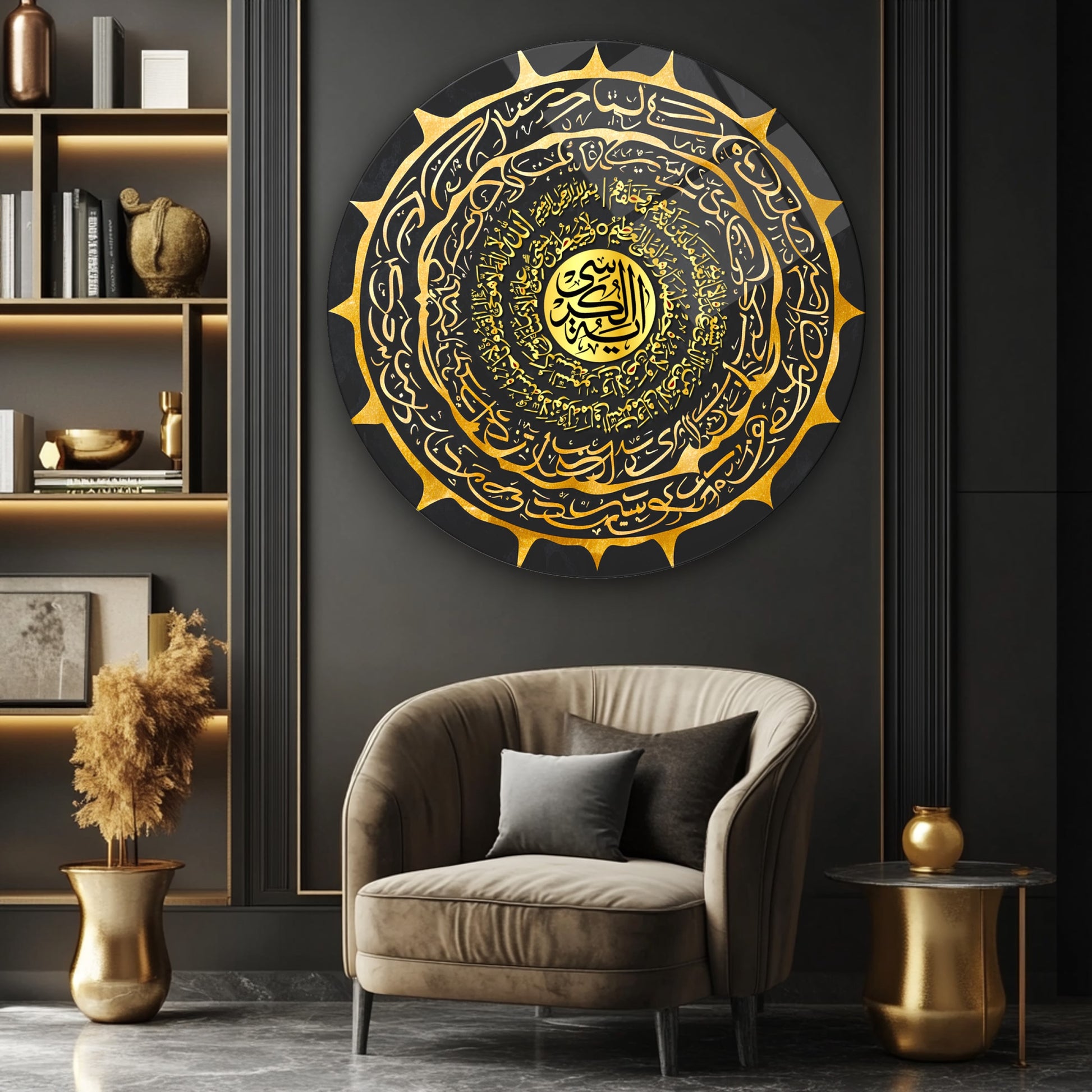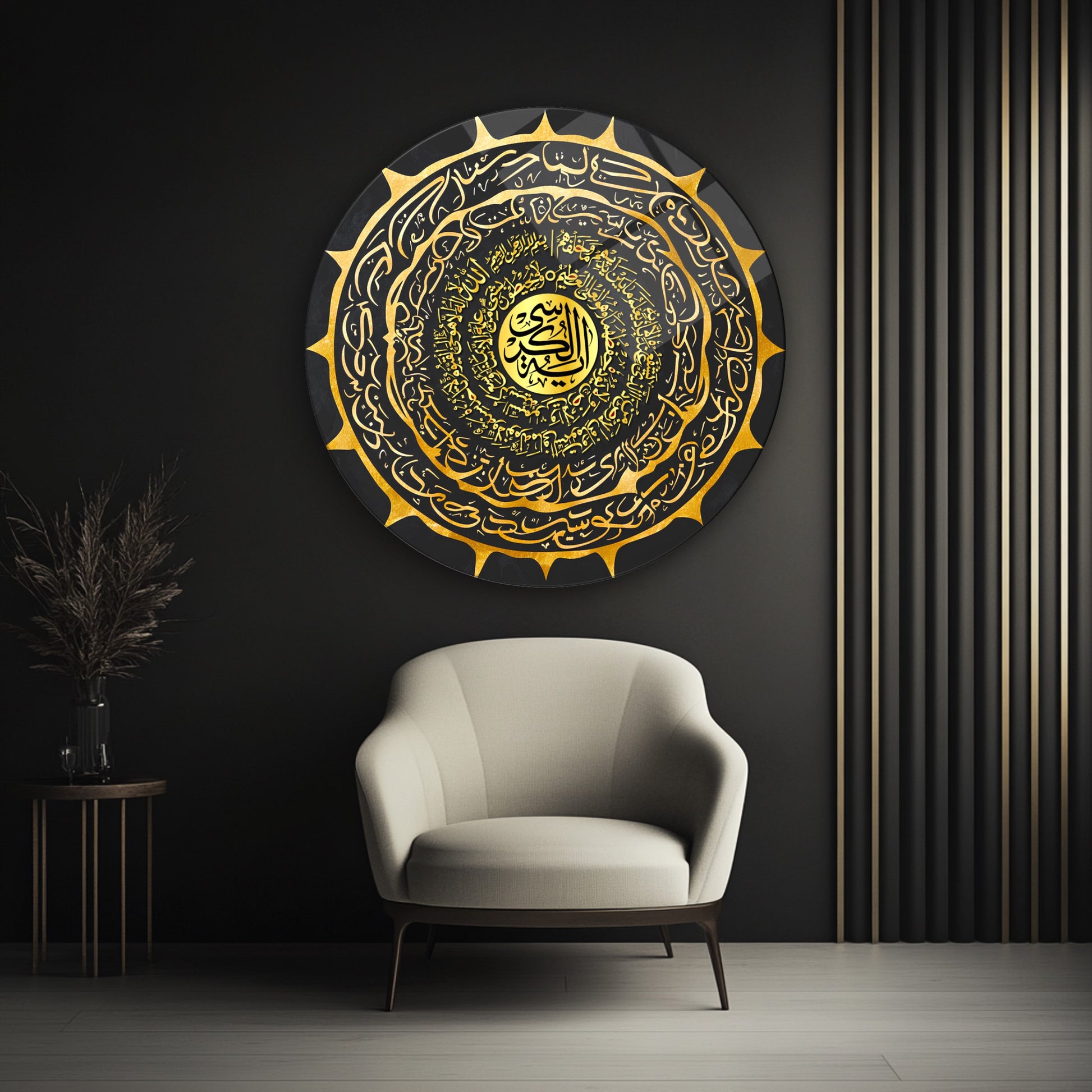 Ayetel Kursi İslami Hat Sanatı Yuvarlak Cam Tablo