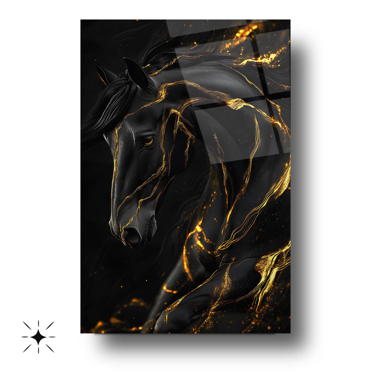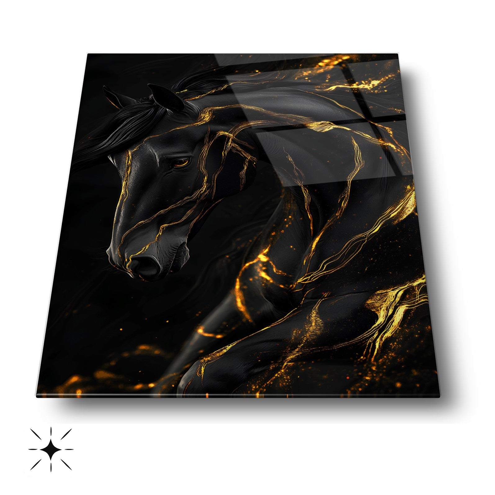 CamDeko'dan mekanlarınıza ihtişam ve modern bir dokunuş katan özel bir eser: Siyah Gold Mermer Desen At Kırılmaz Gerçek Kaliteli UV Baskı Cam Tablo! Gücün ve asaletin sembolü at figürü, lüks siyah-gold mermer deseniyle birleşerek evinize, ofisinize veya makam odanıza sofistike bir atmosfer katıyor.