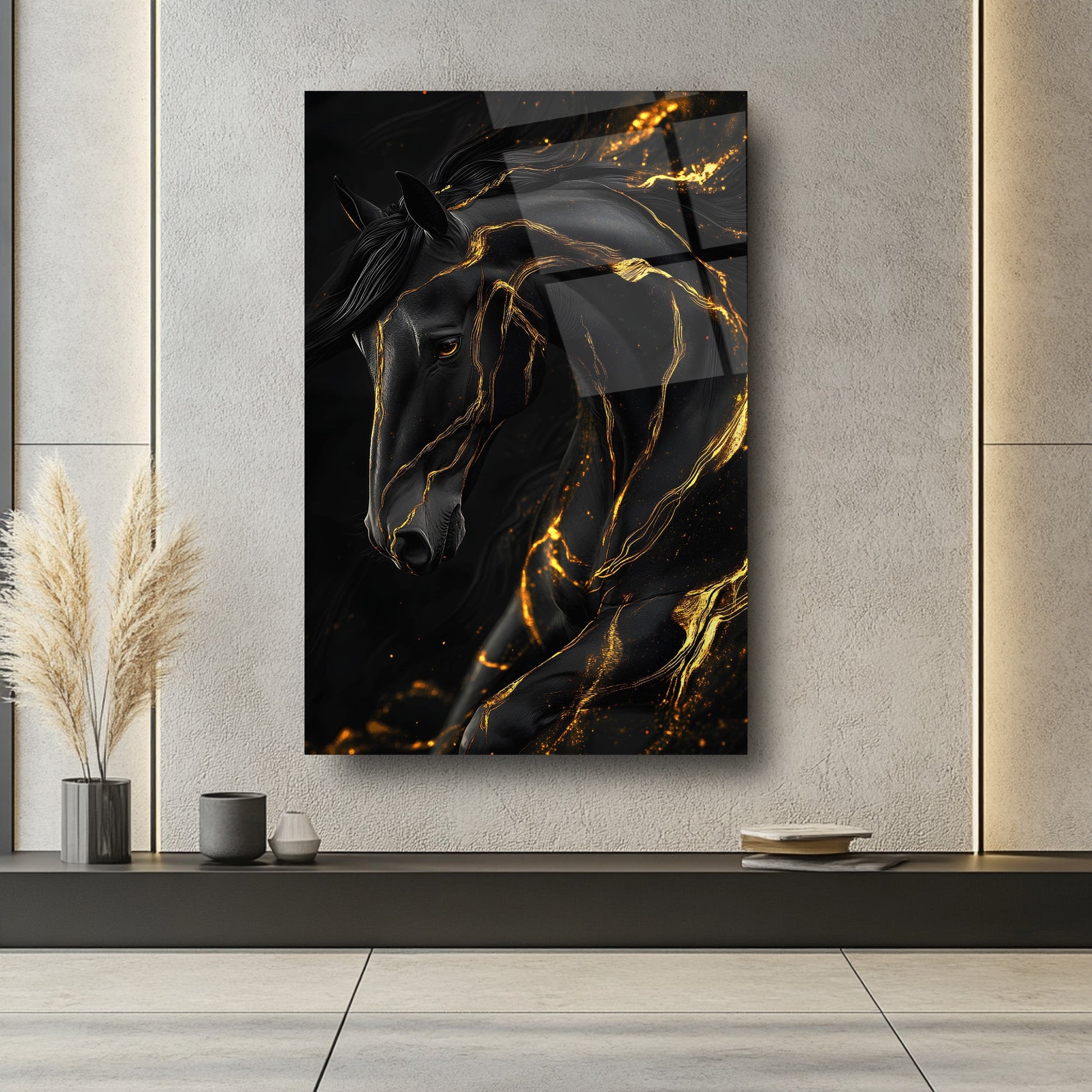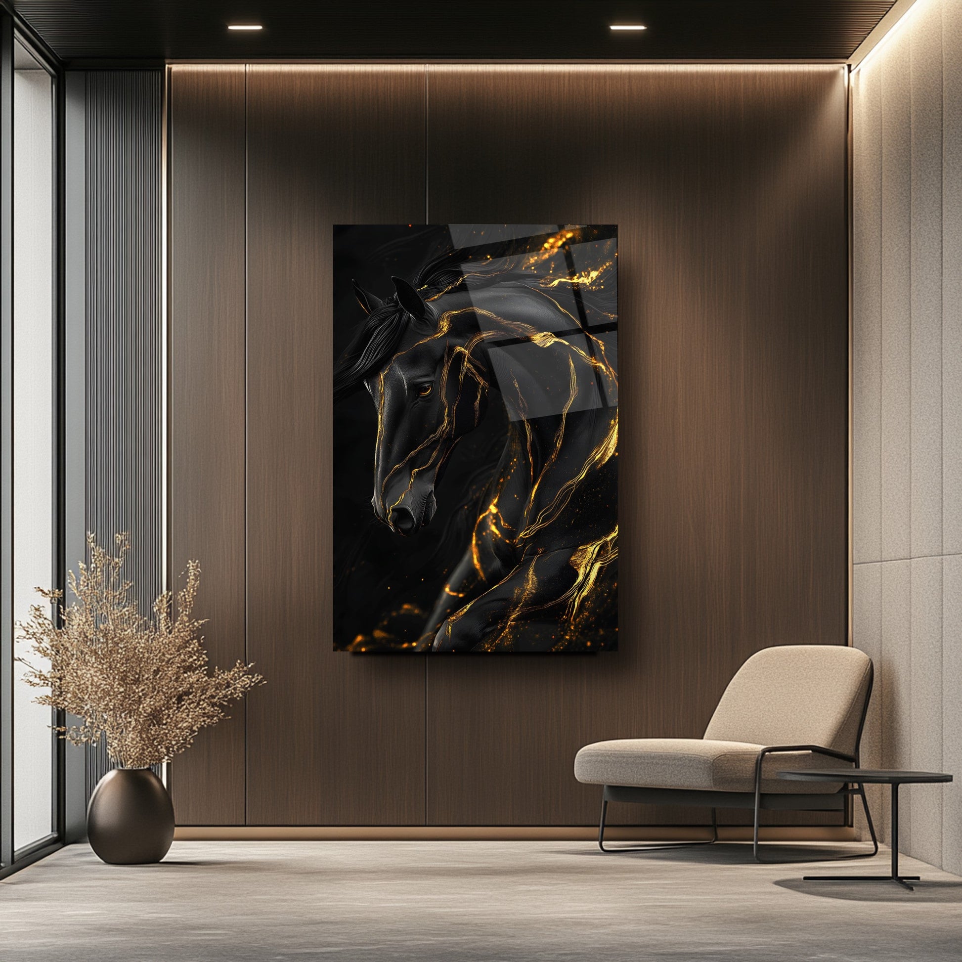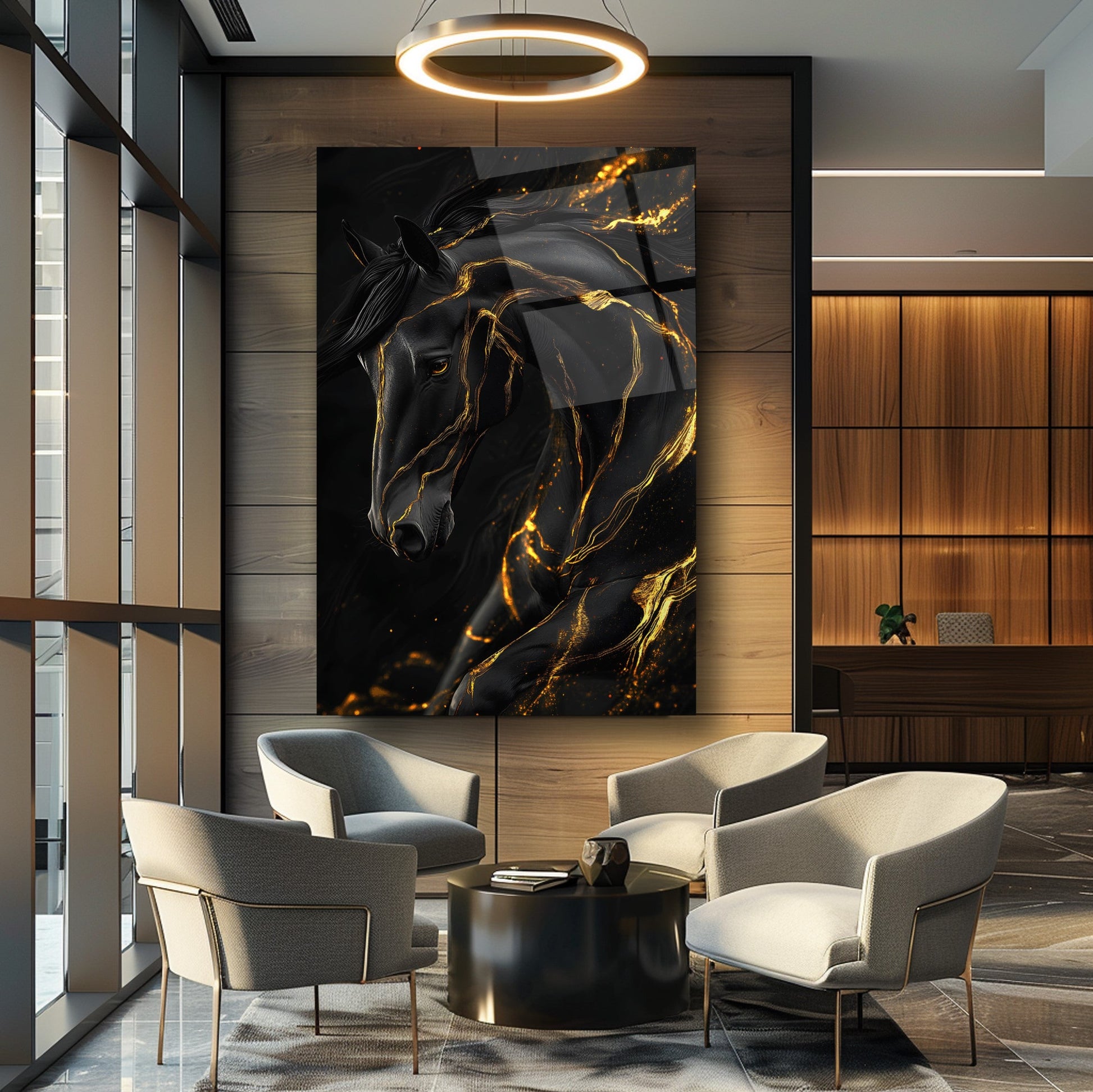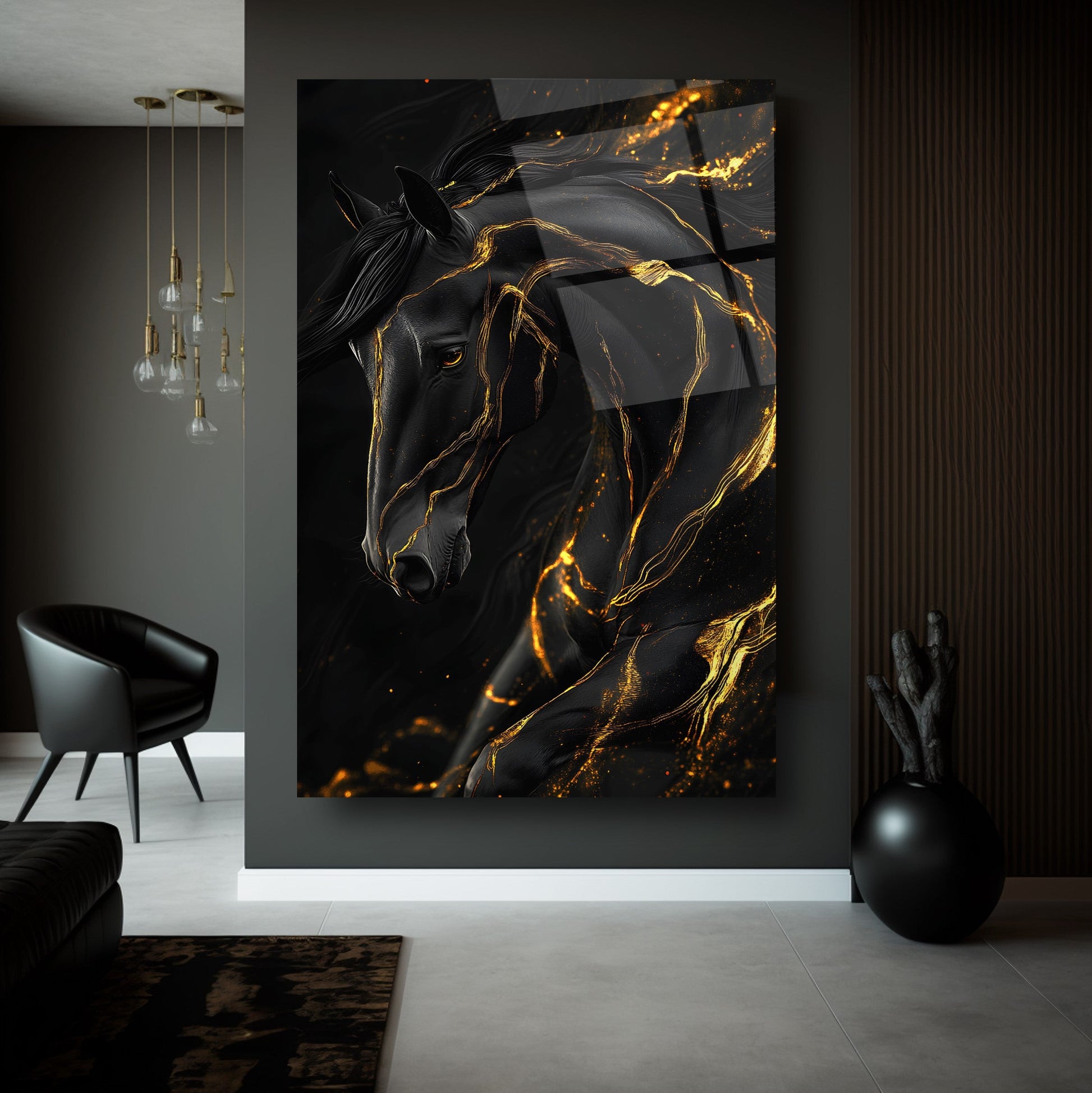 Asaletin ve Lüksün Buluştuğu Nokta: Siyah Gold Mermer Desen At Cam Tablo