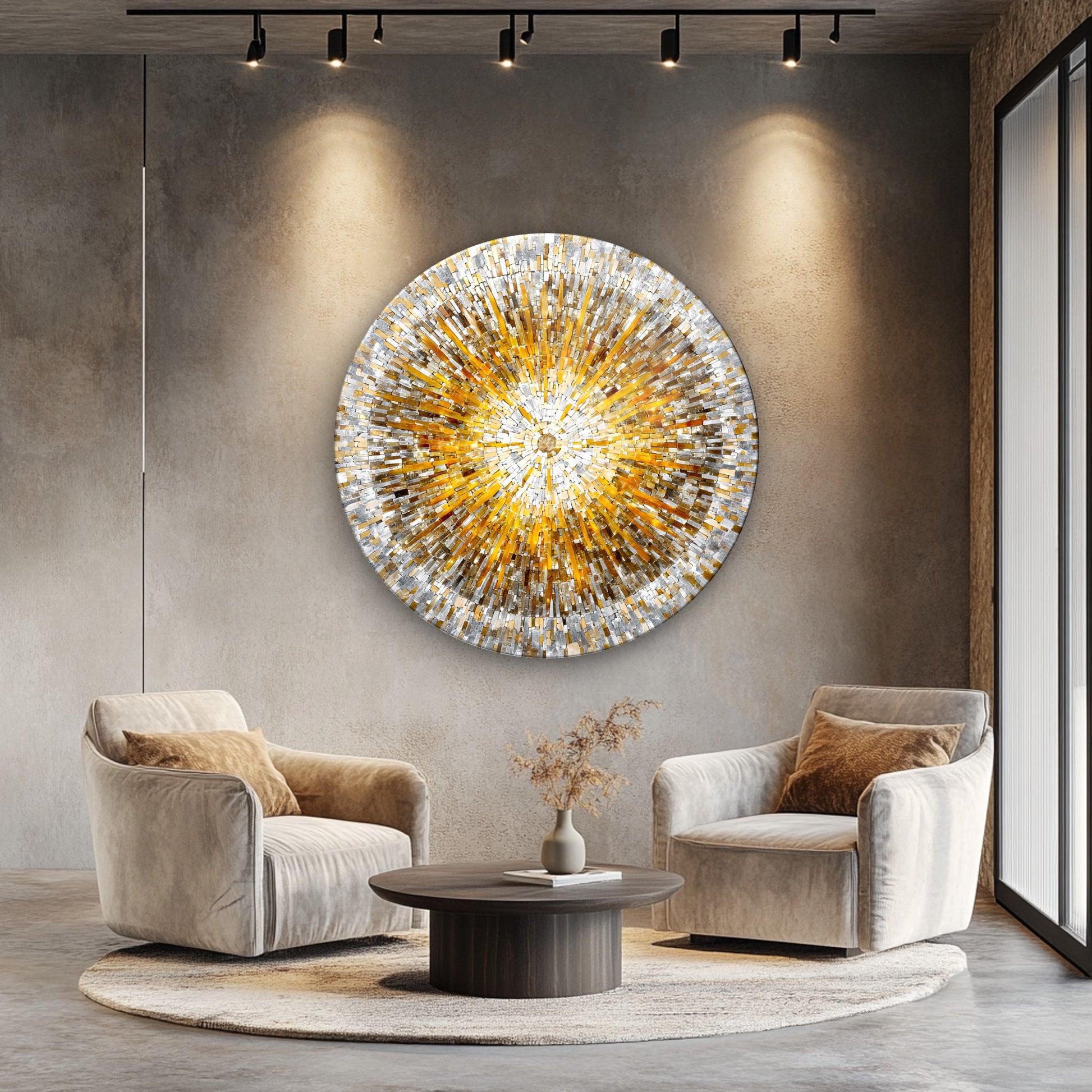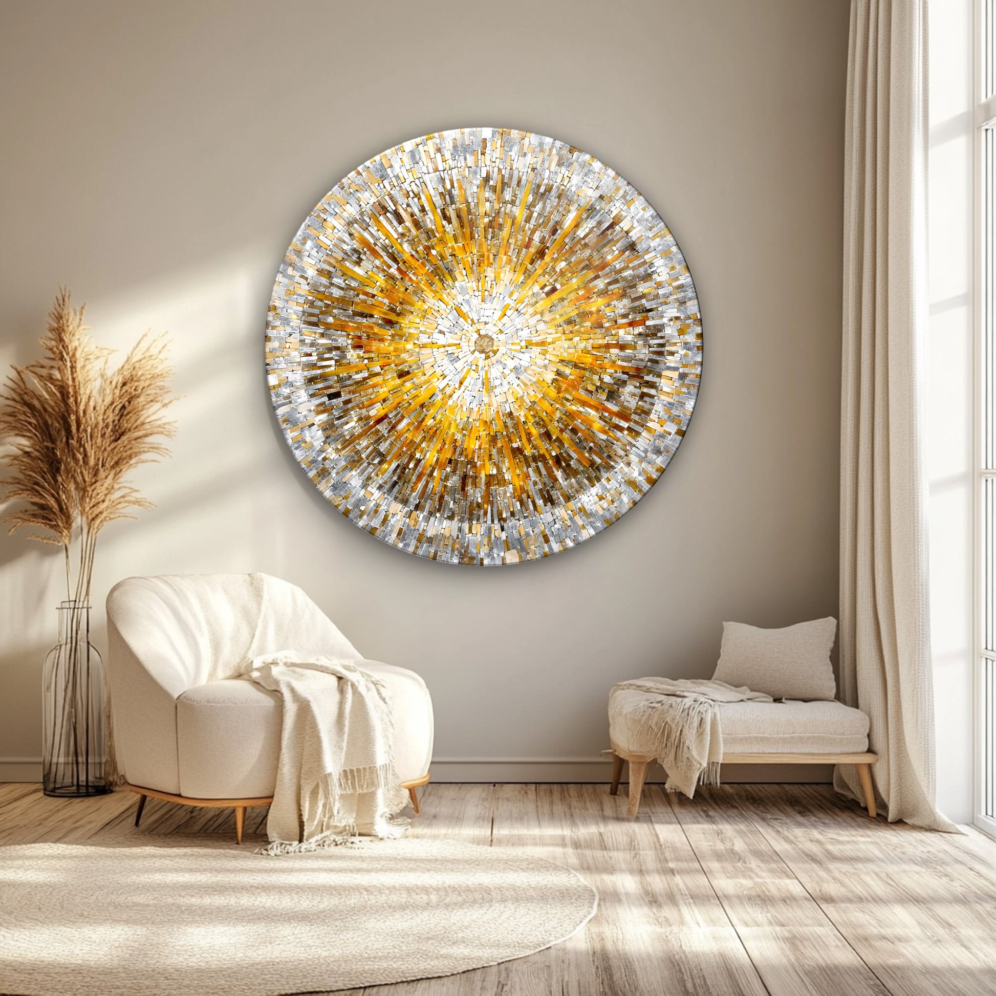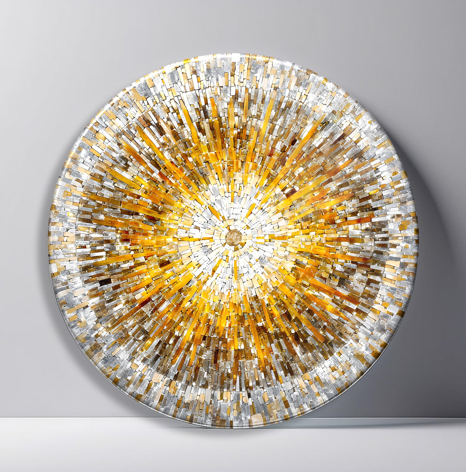 Soft Renkli Mozaik Yuvarlak Cam Tablo