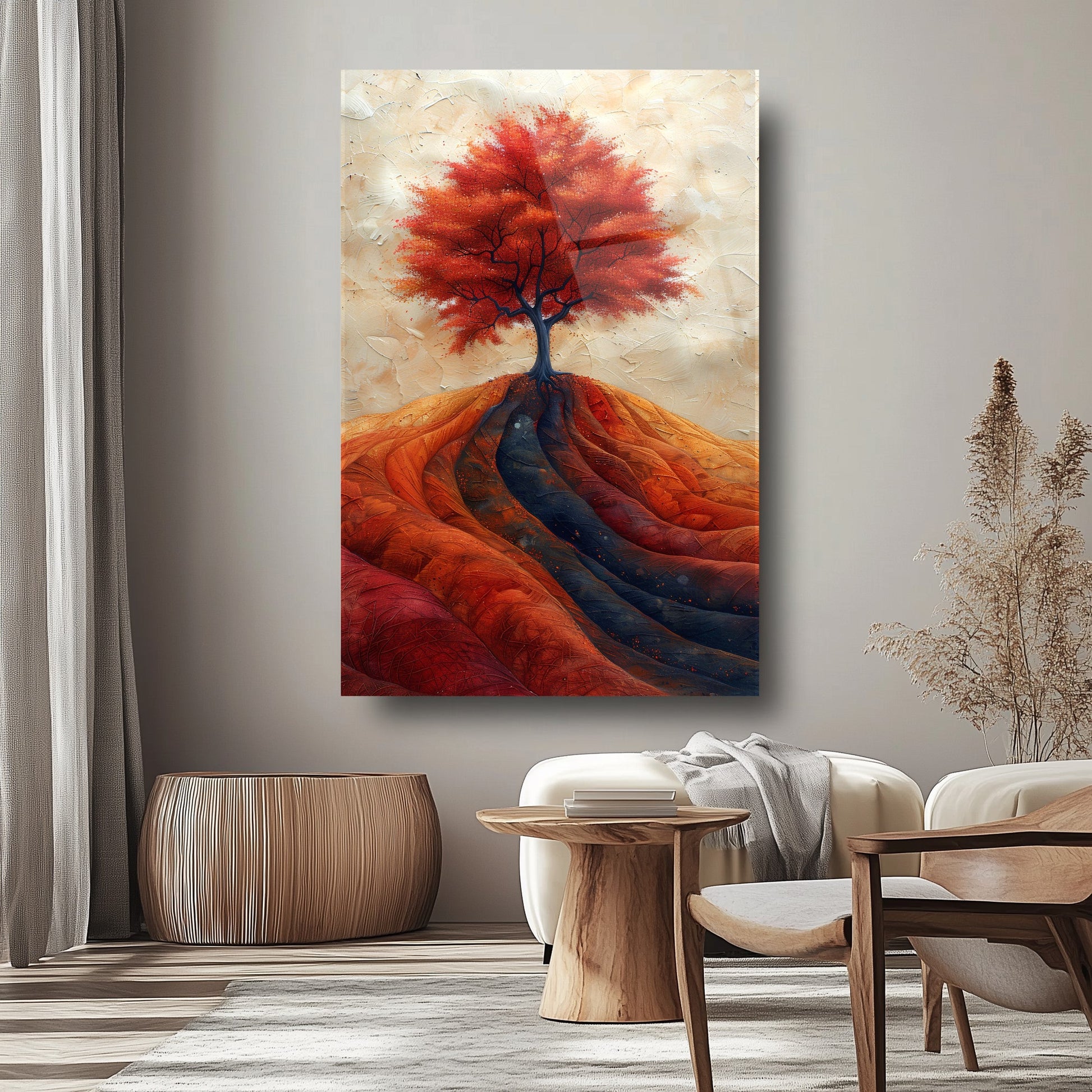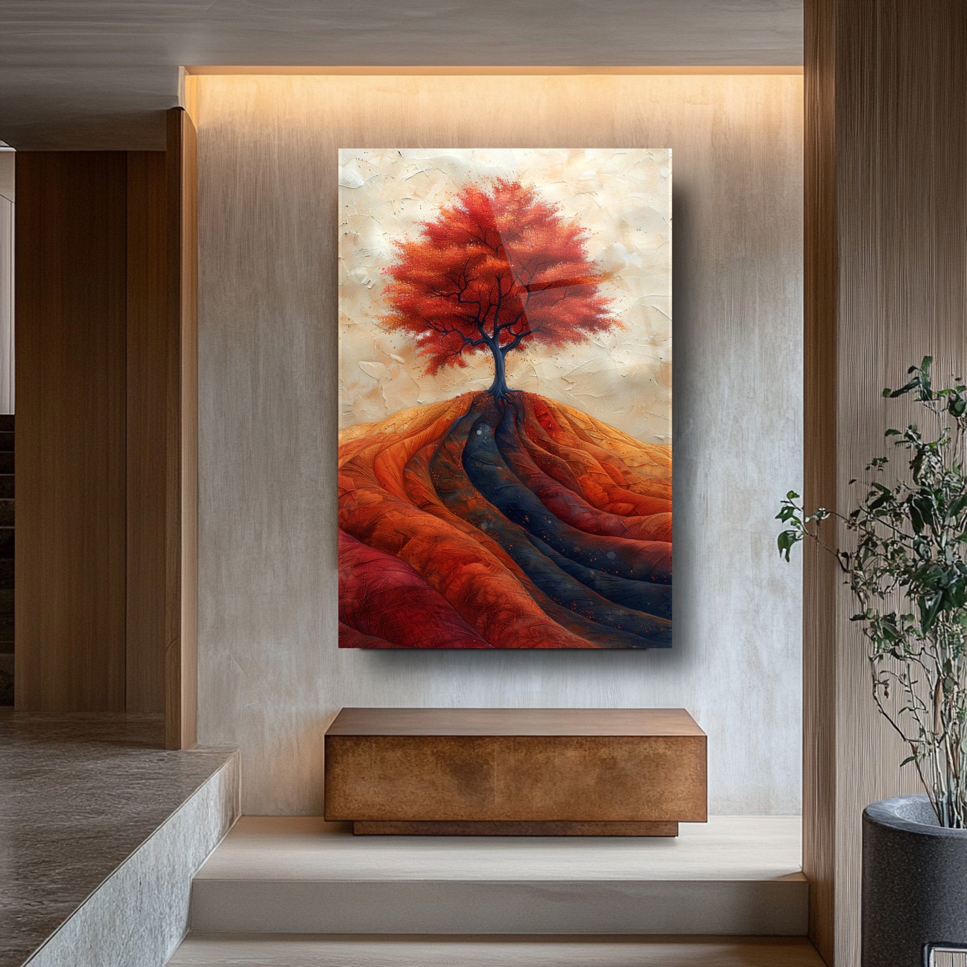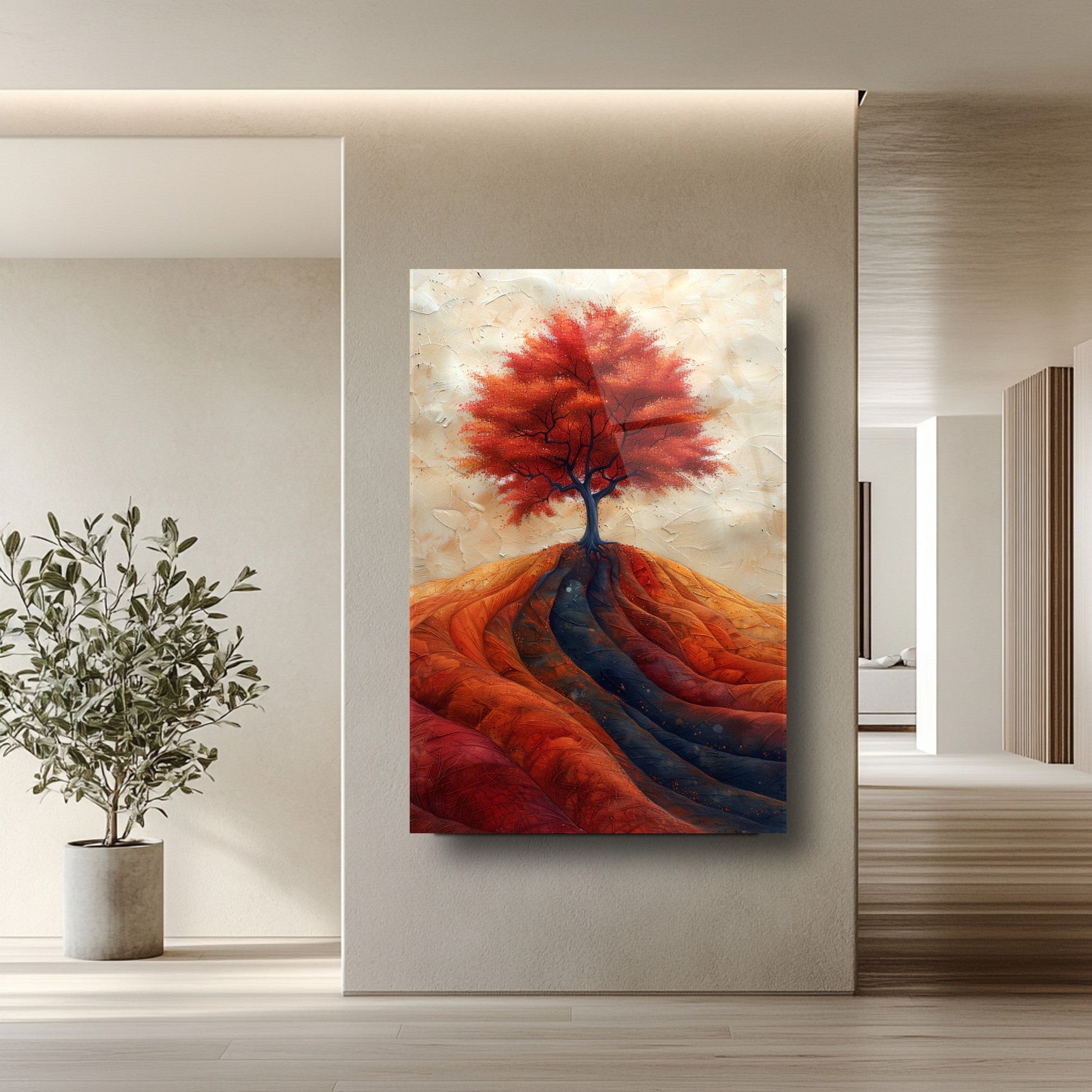 Mekanlarınıza Sonbaharın Renk Cümbüşünü Taşıyın: Sonbahar Ağaç Manzarası Cam Tablo