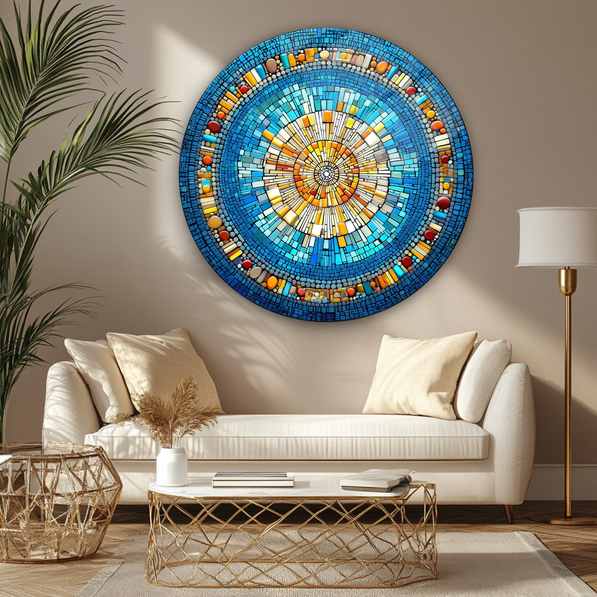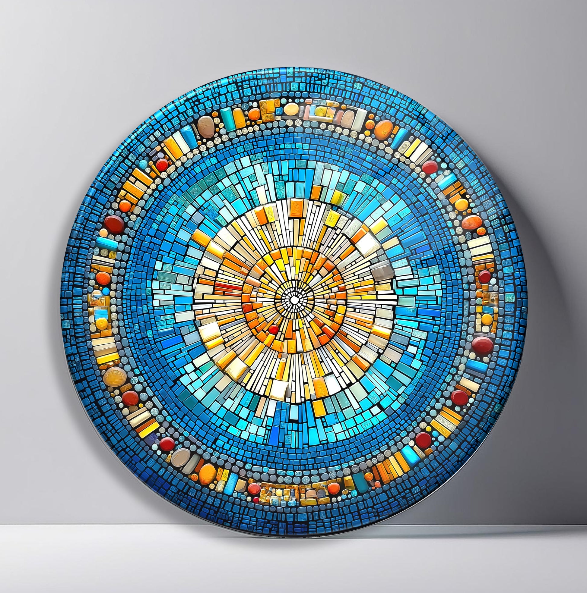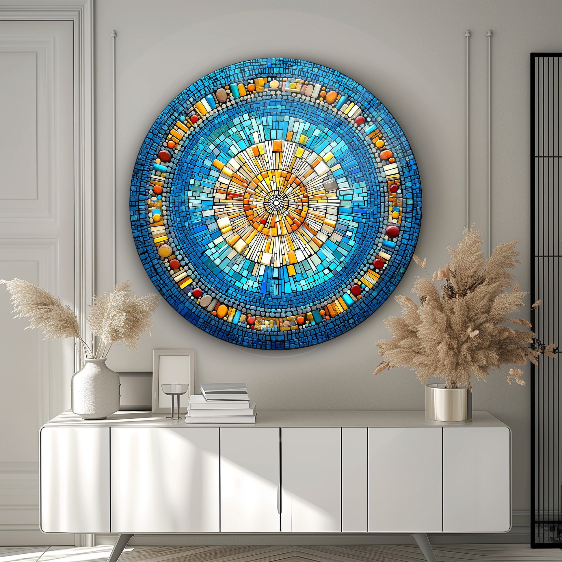 Soyut Mozaik Desen Yuvarlak Cam Tablo