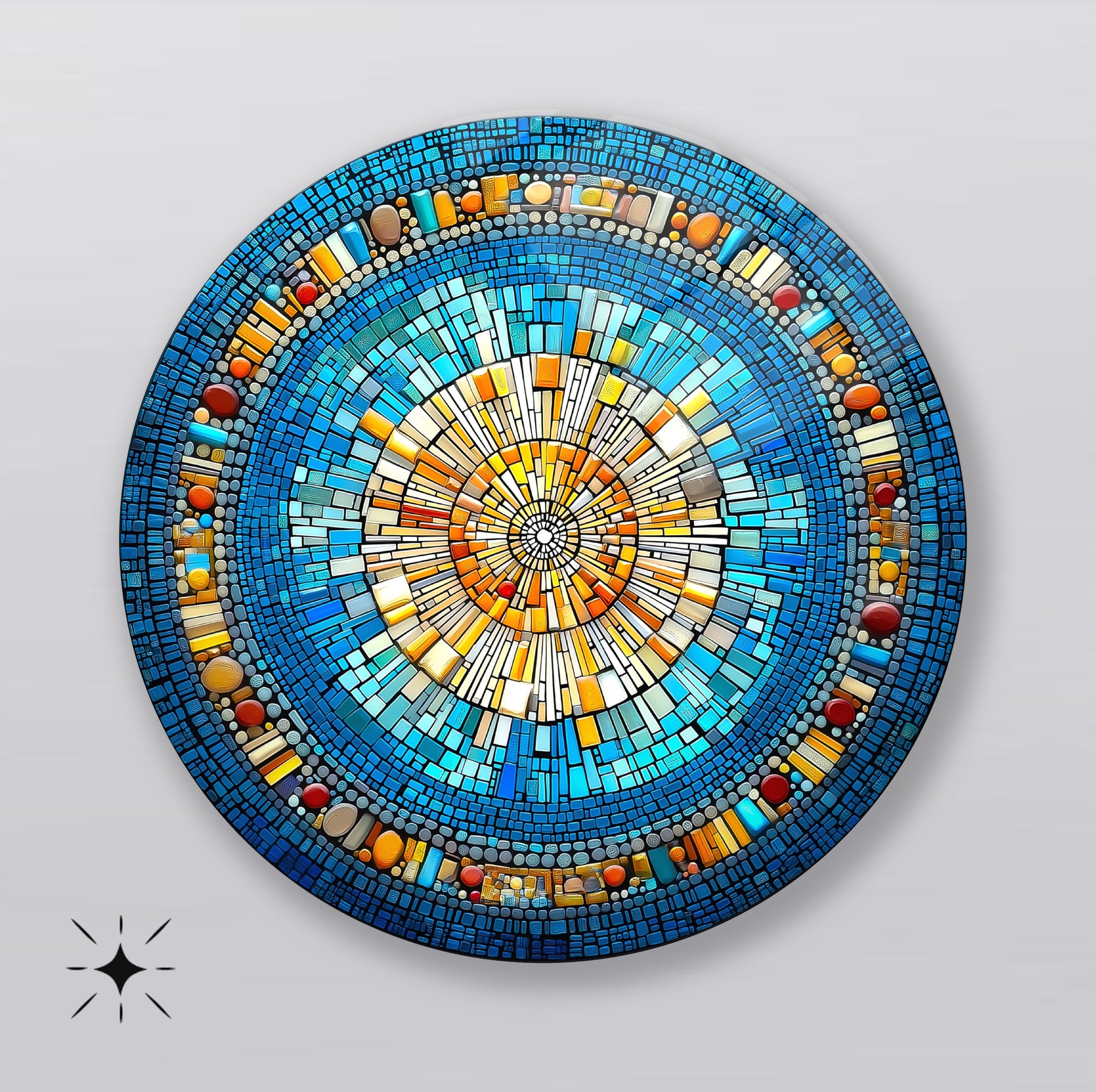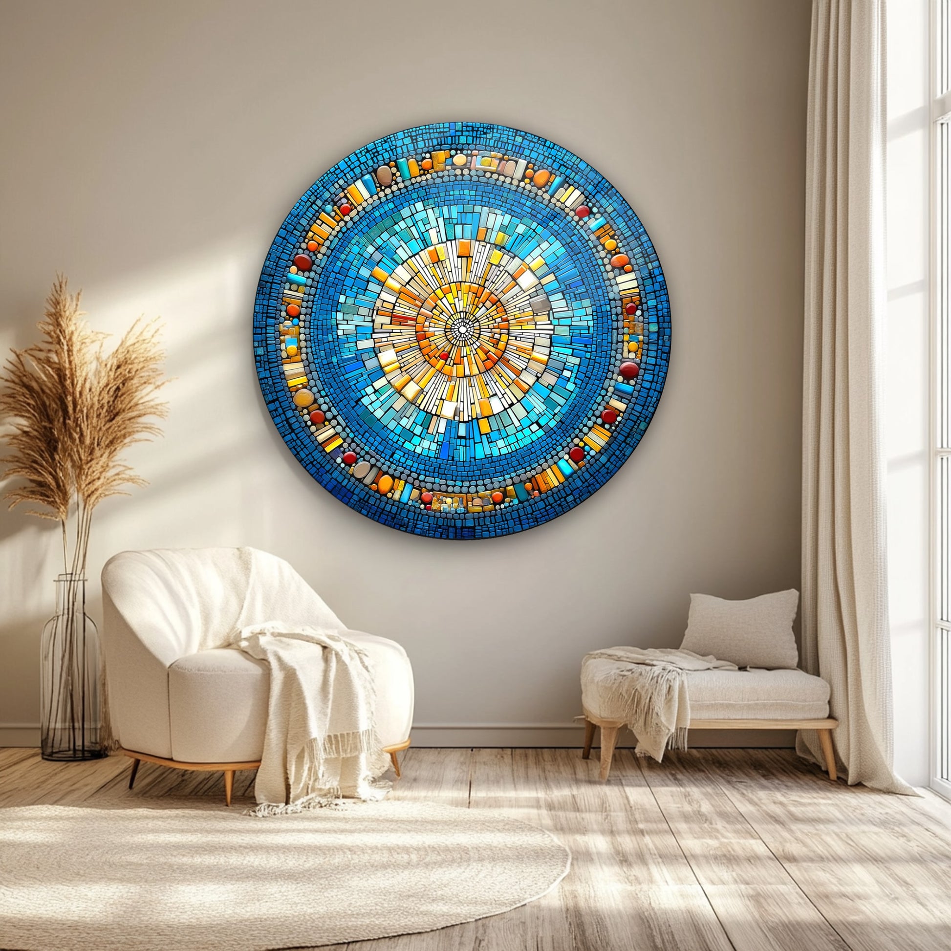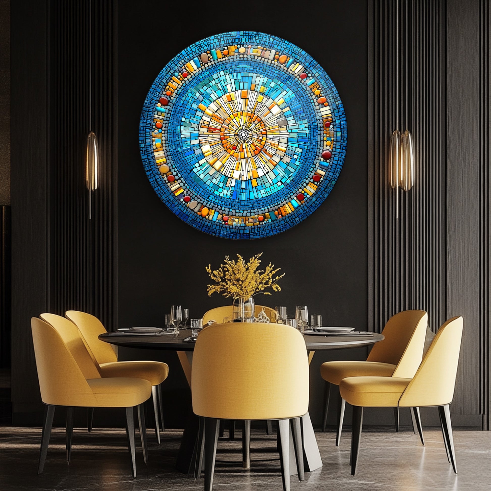 Soyut Mozaik Desen Yuvarlak Cam Tablo