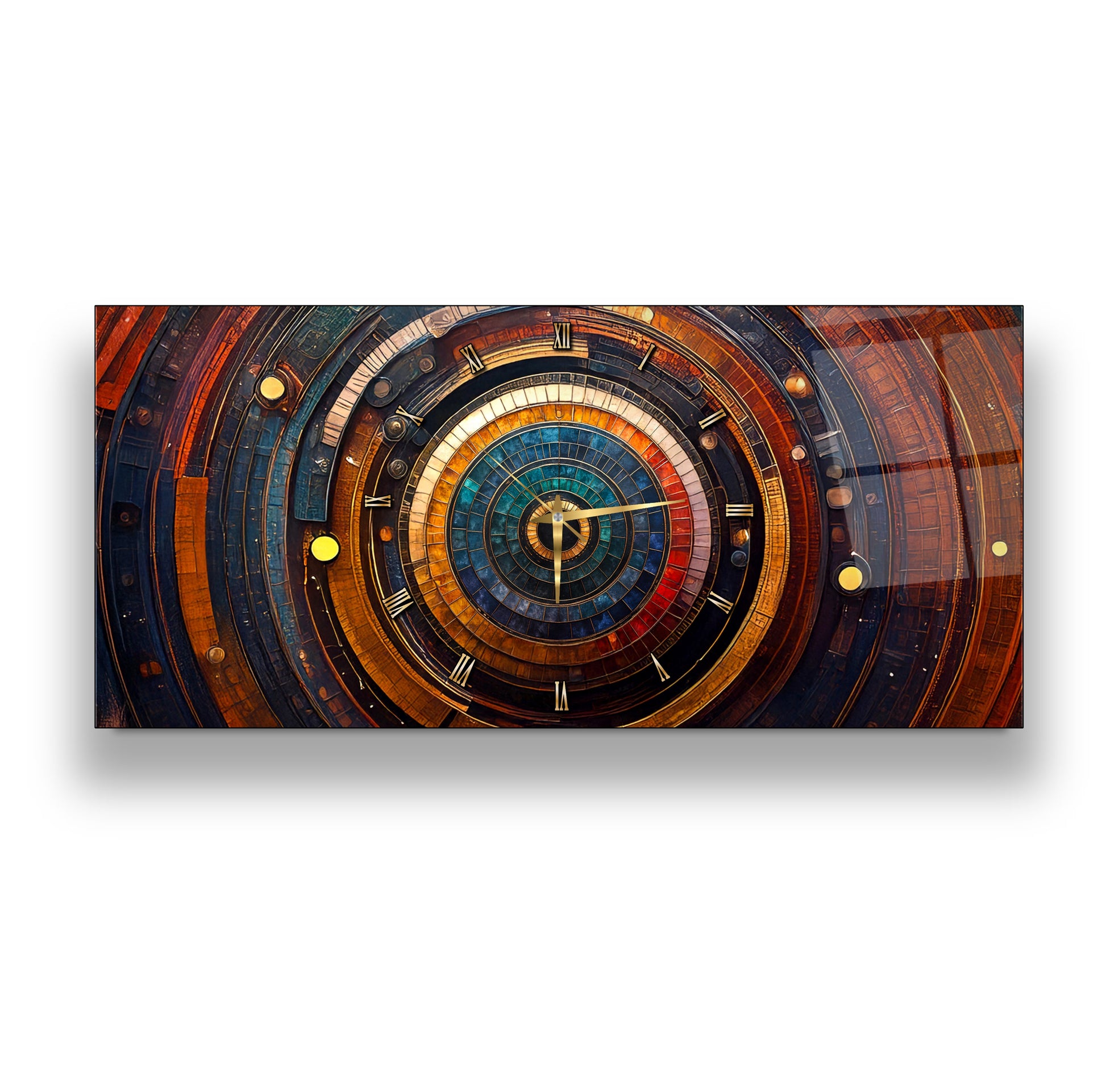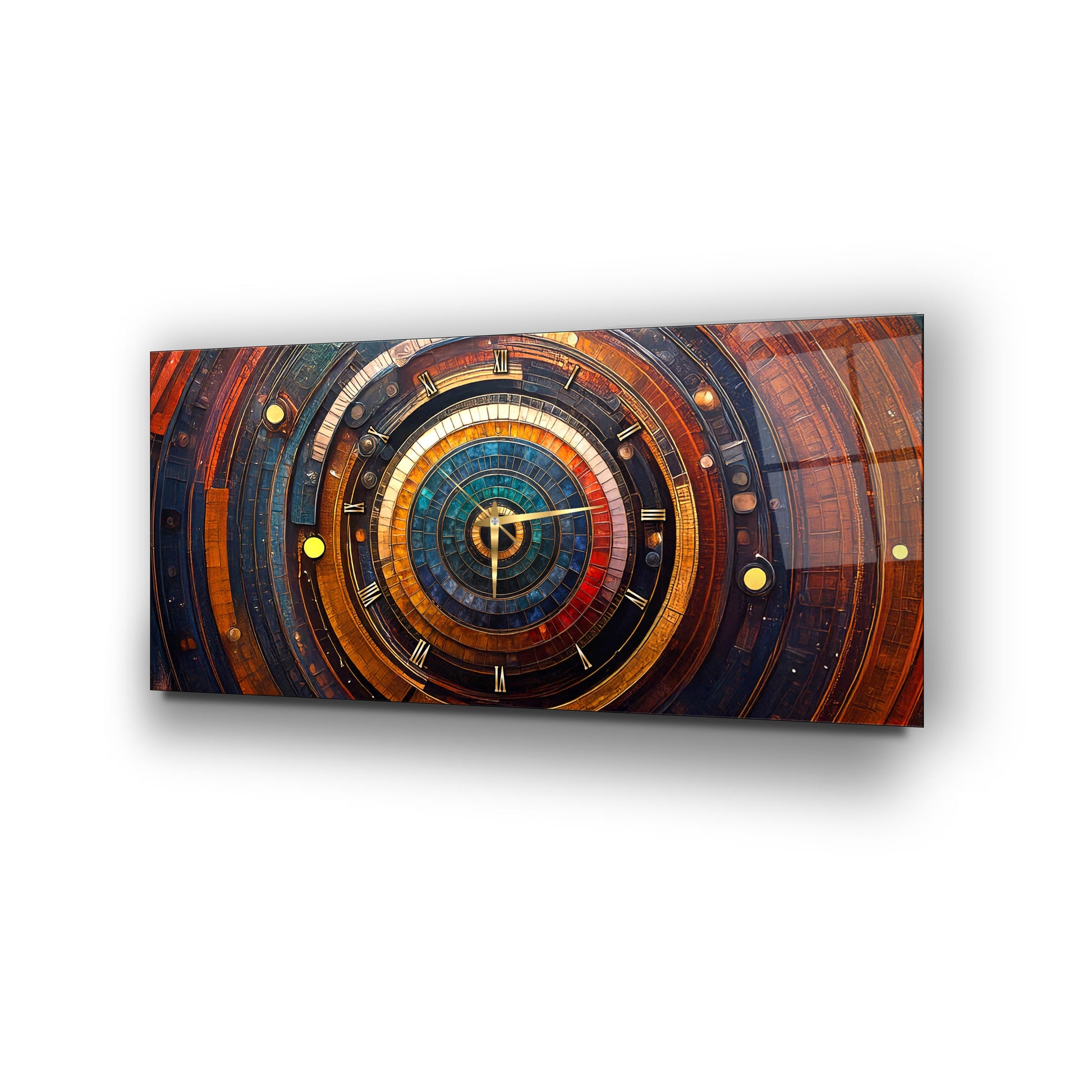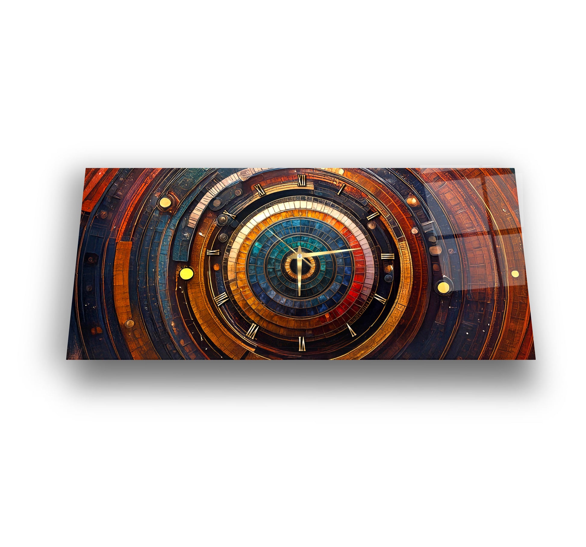 Soyut Etnik Desenler Cam Duvar Saati