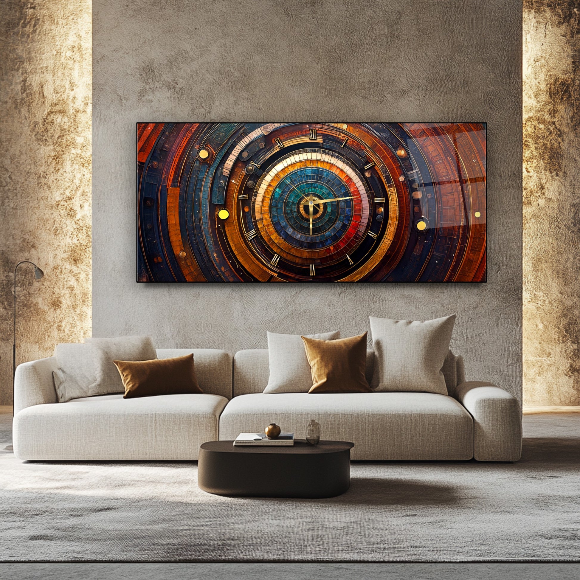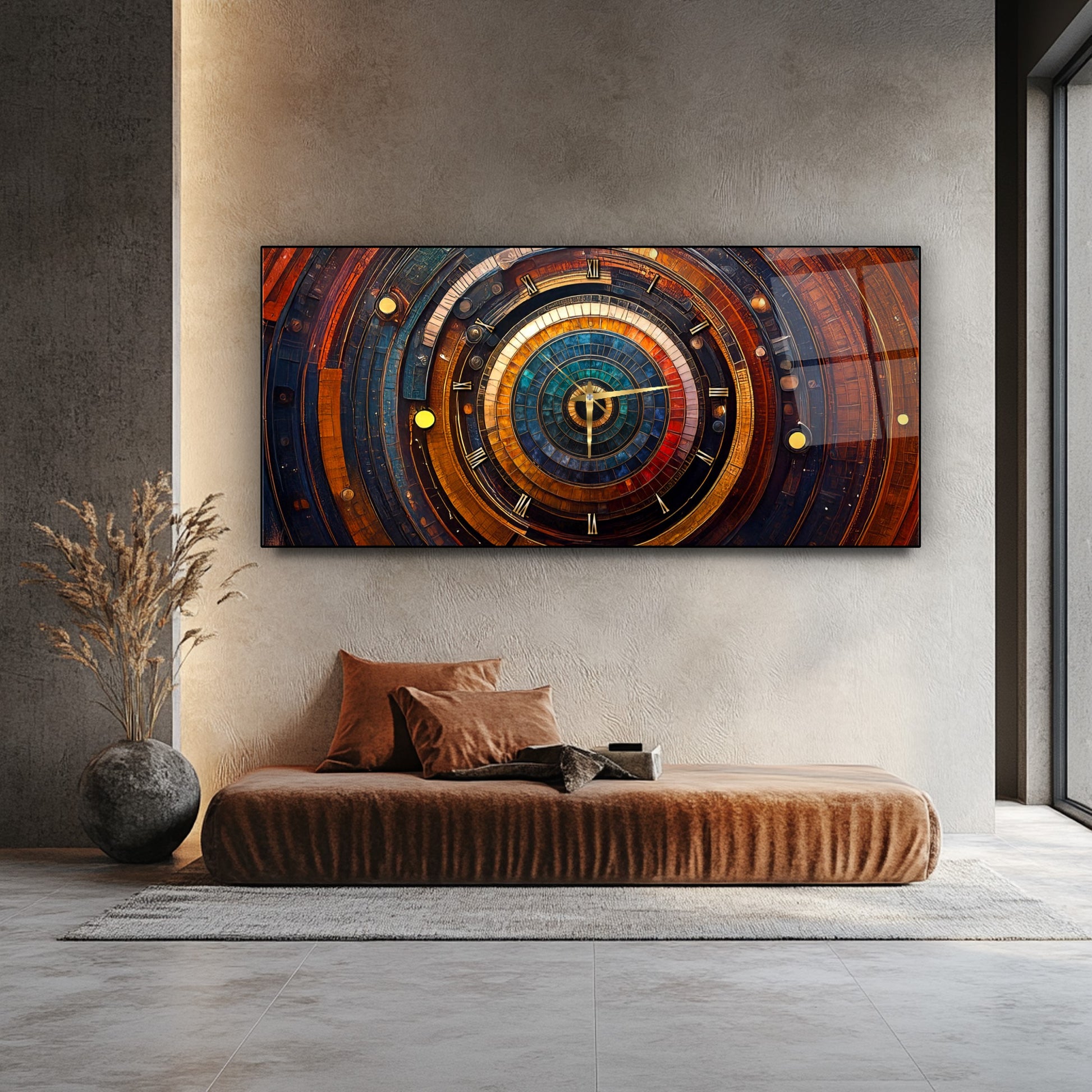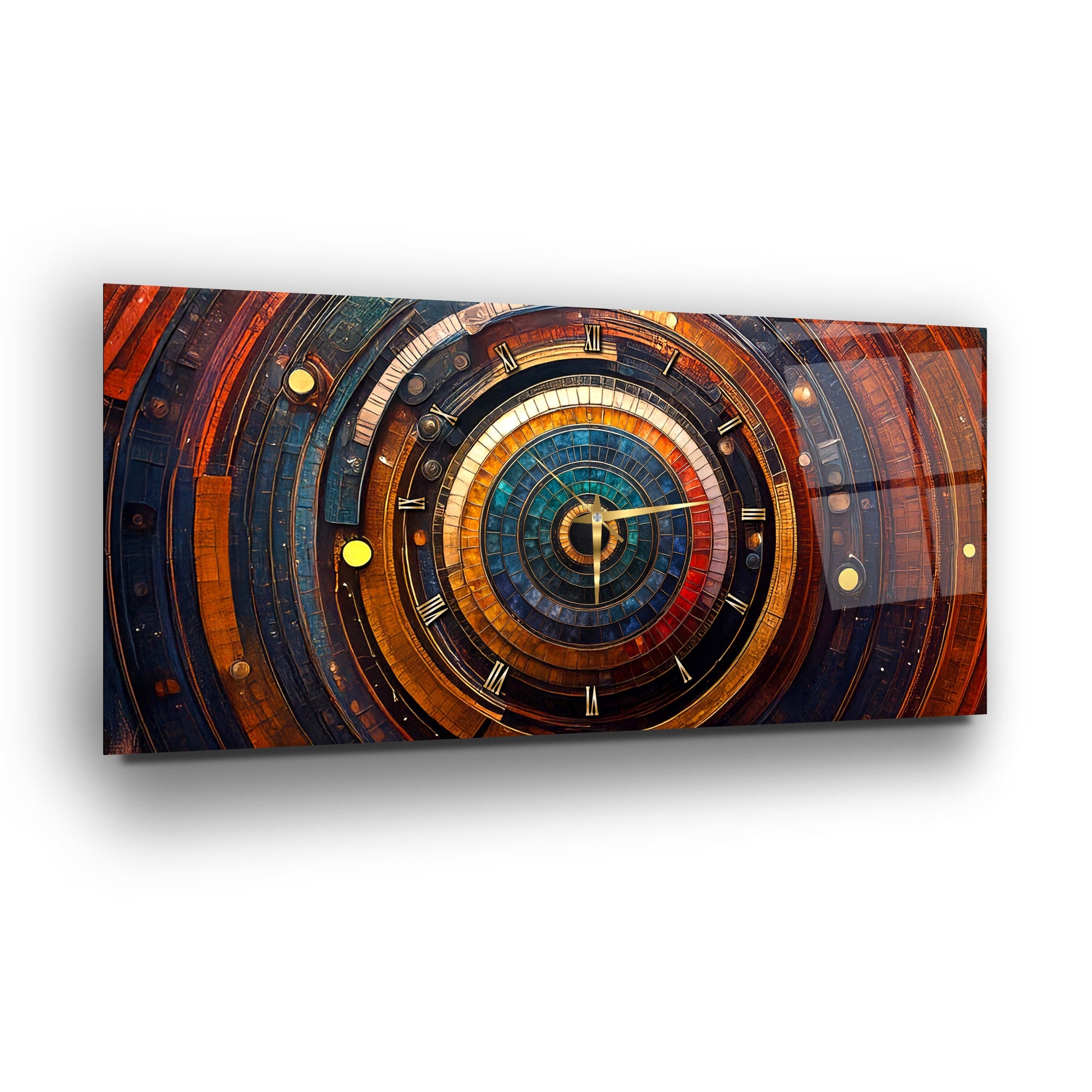 Soyut Etnik Desenler Cam Duvar Saati