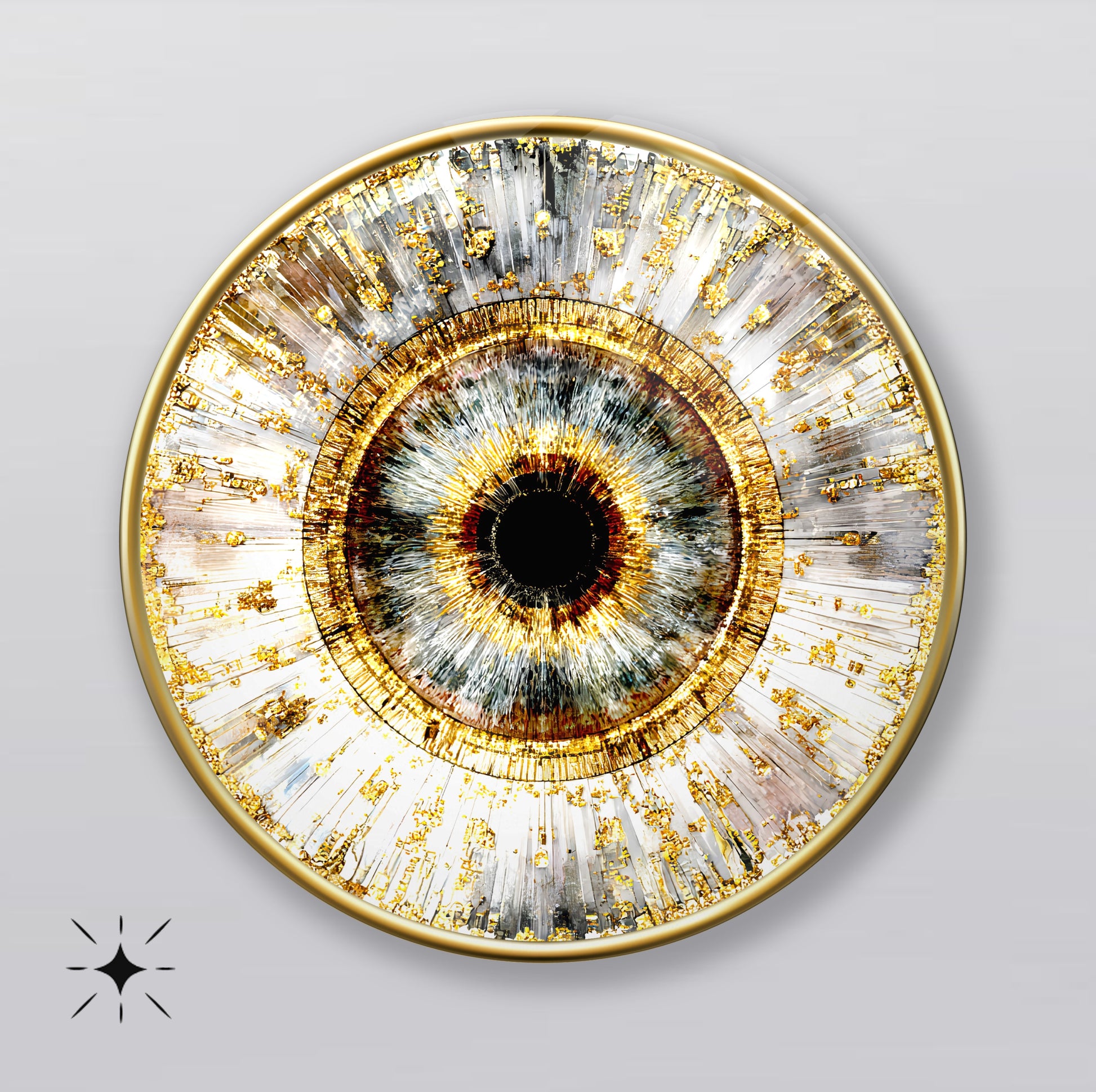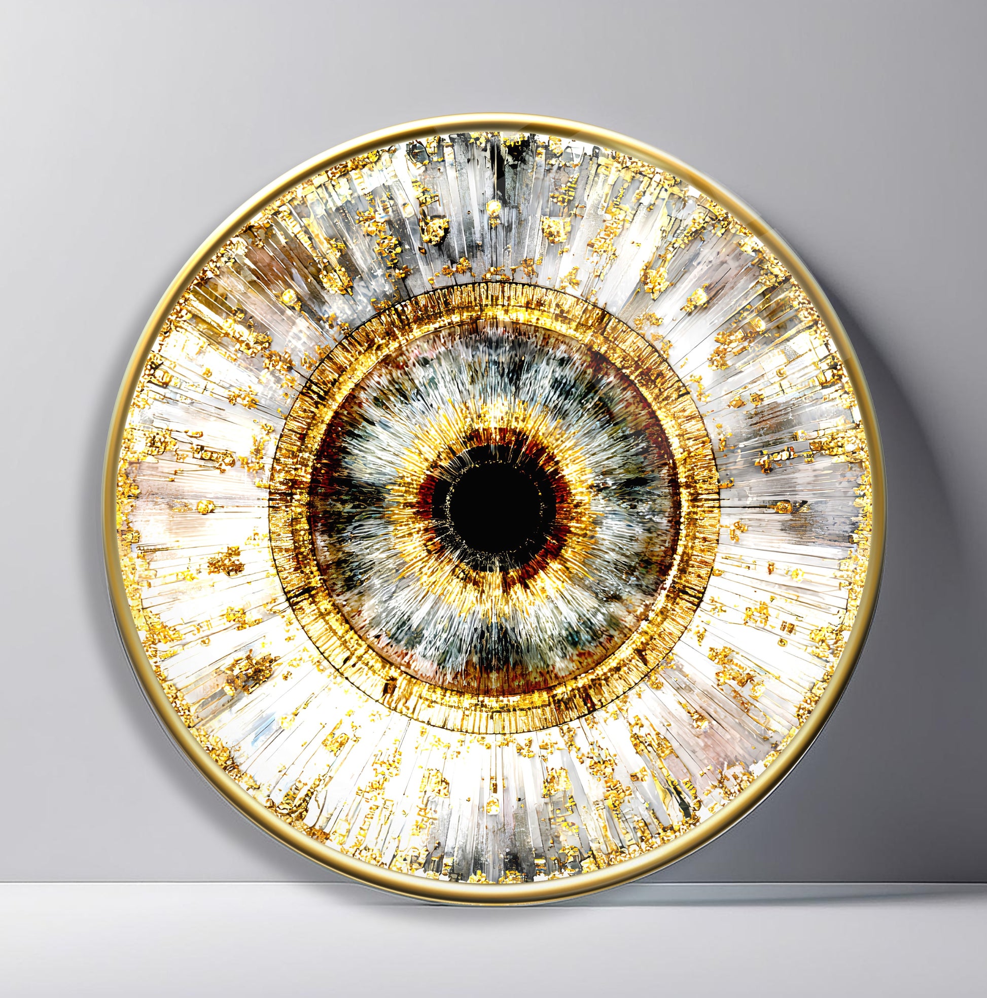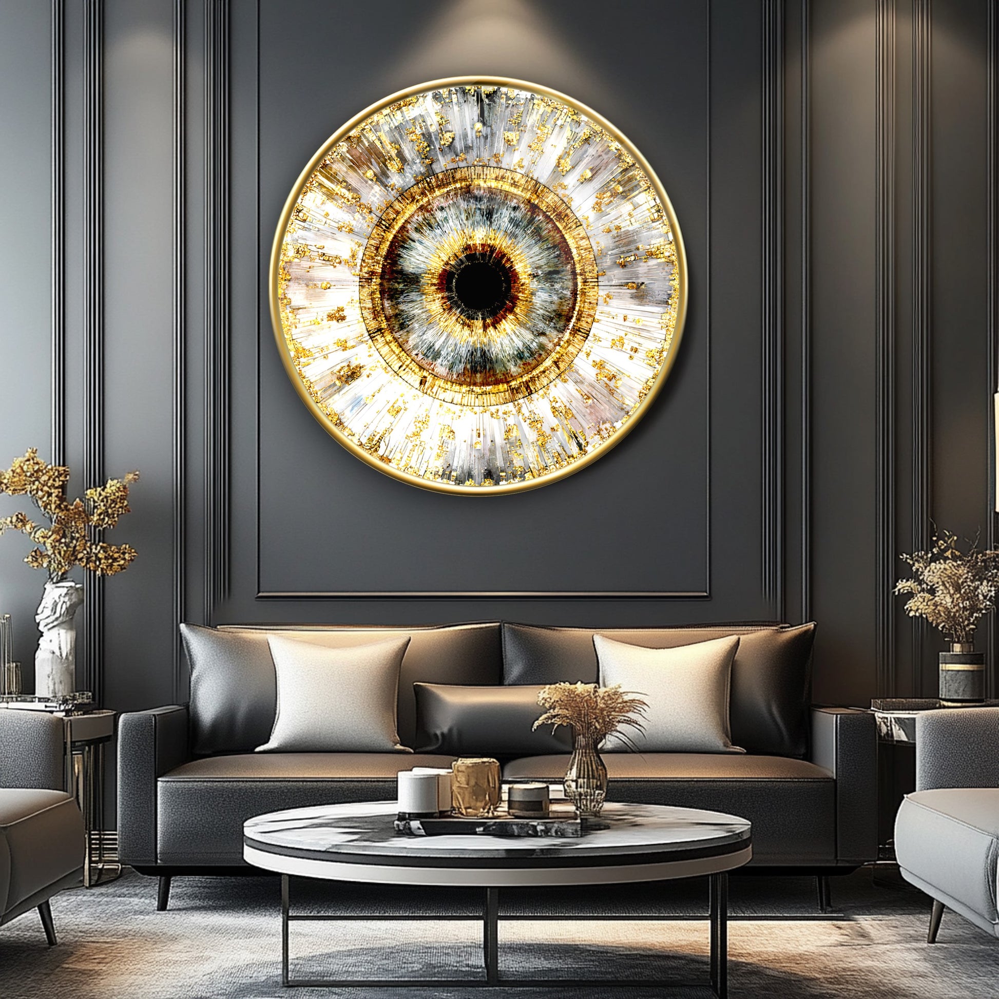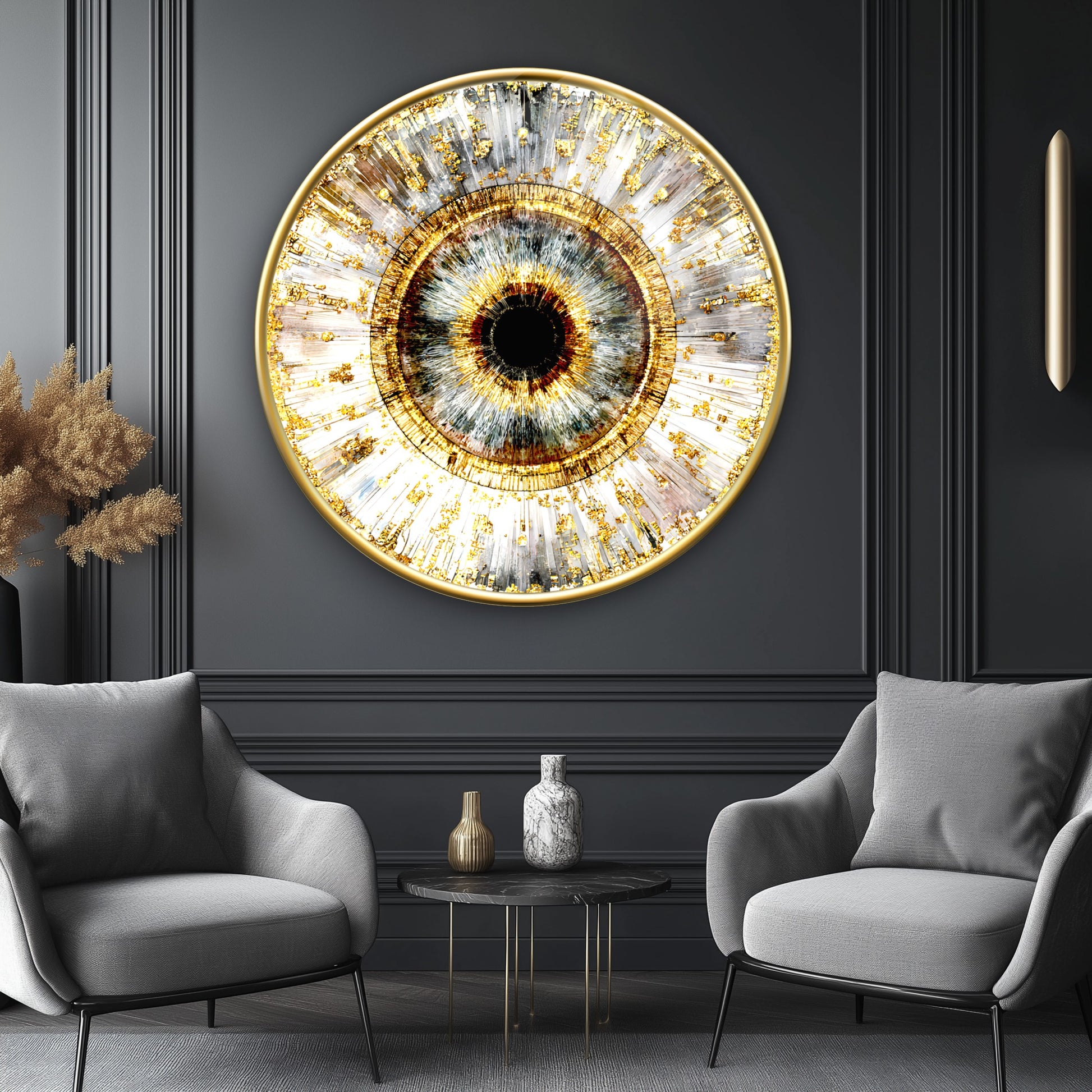 Soyut Gold Gözbebeği Yuvarlak Cam Tablo