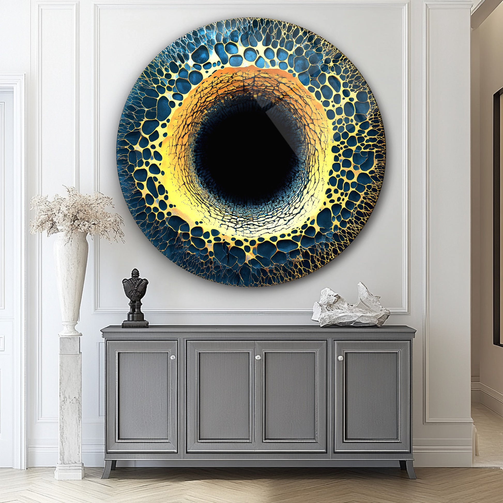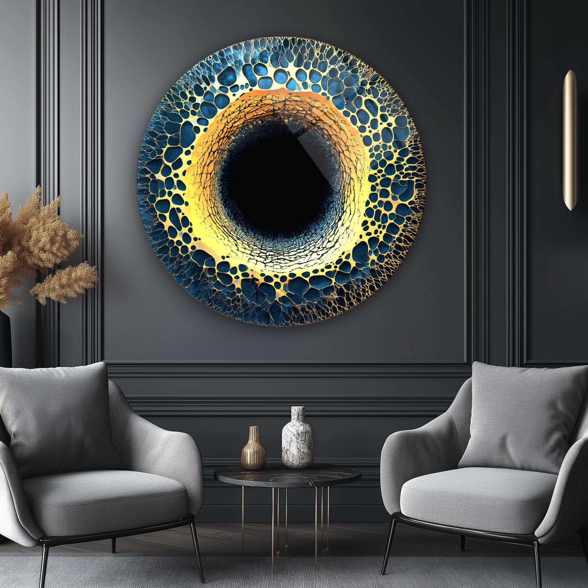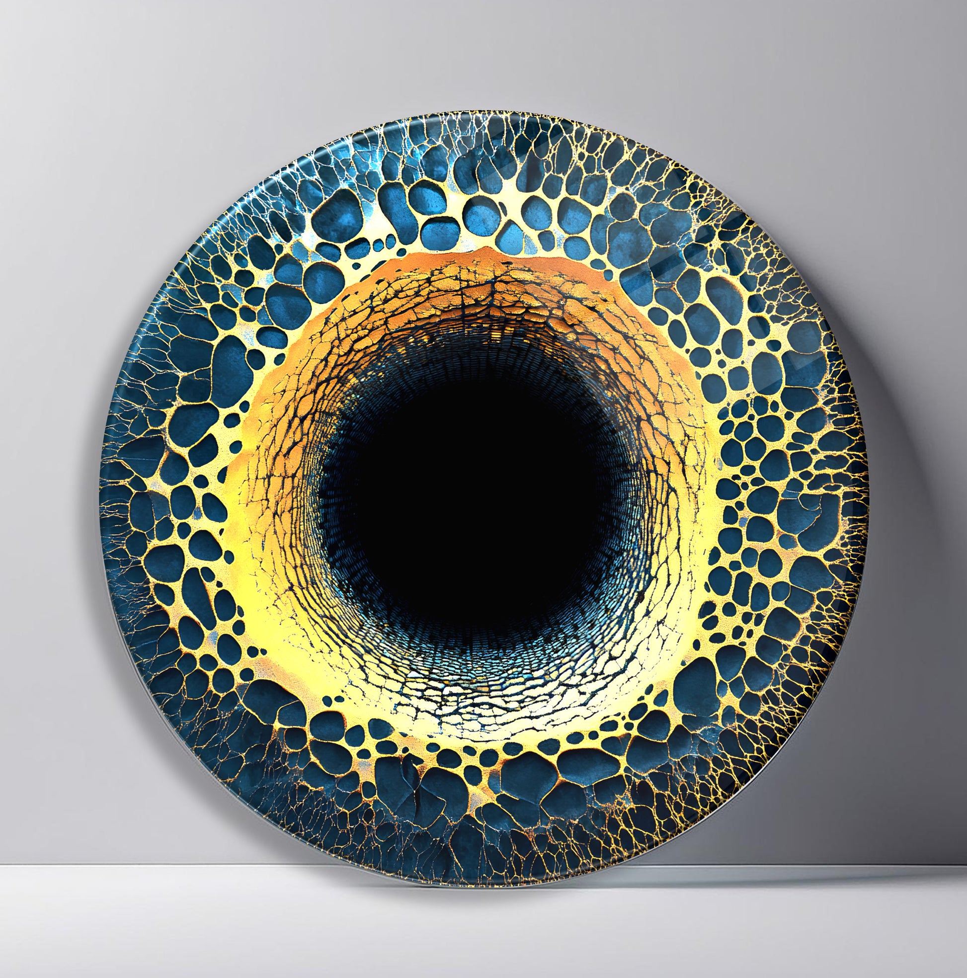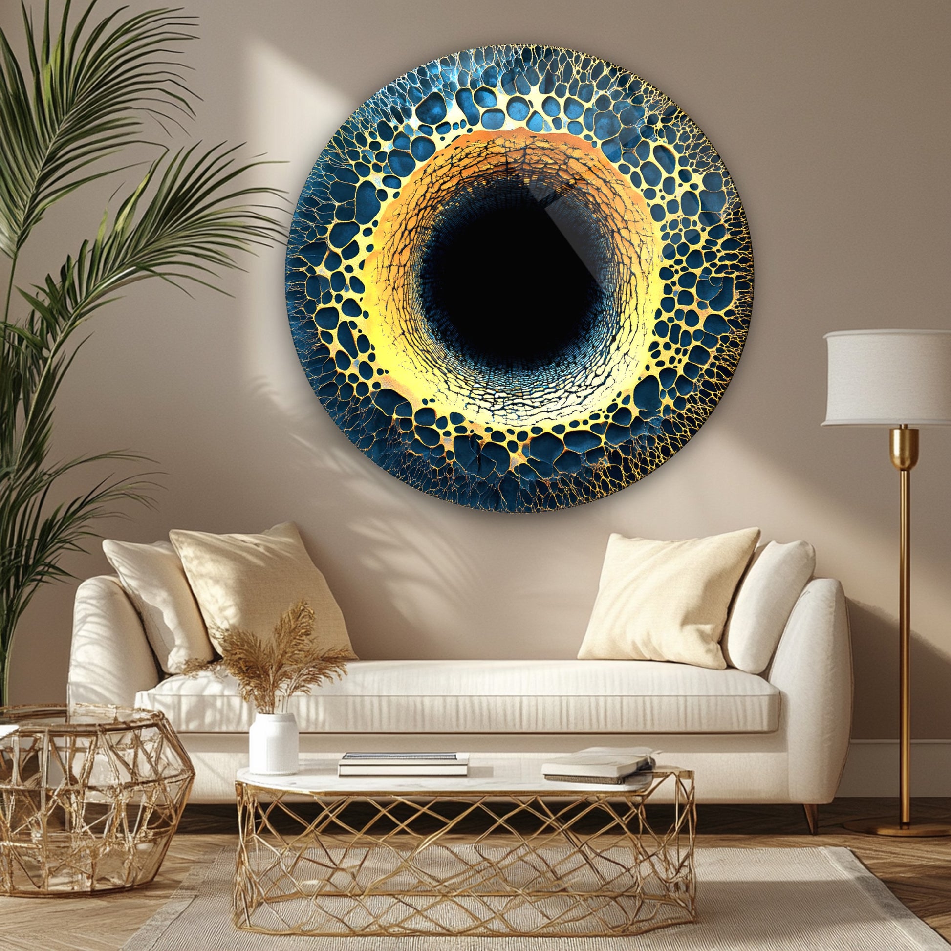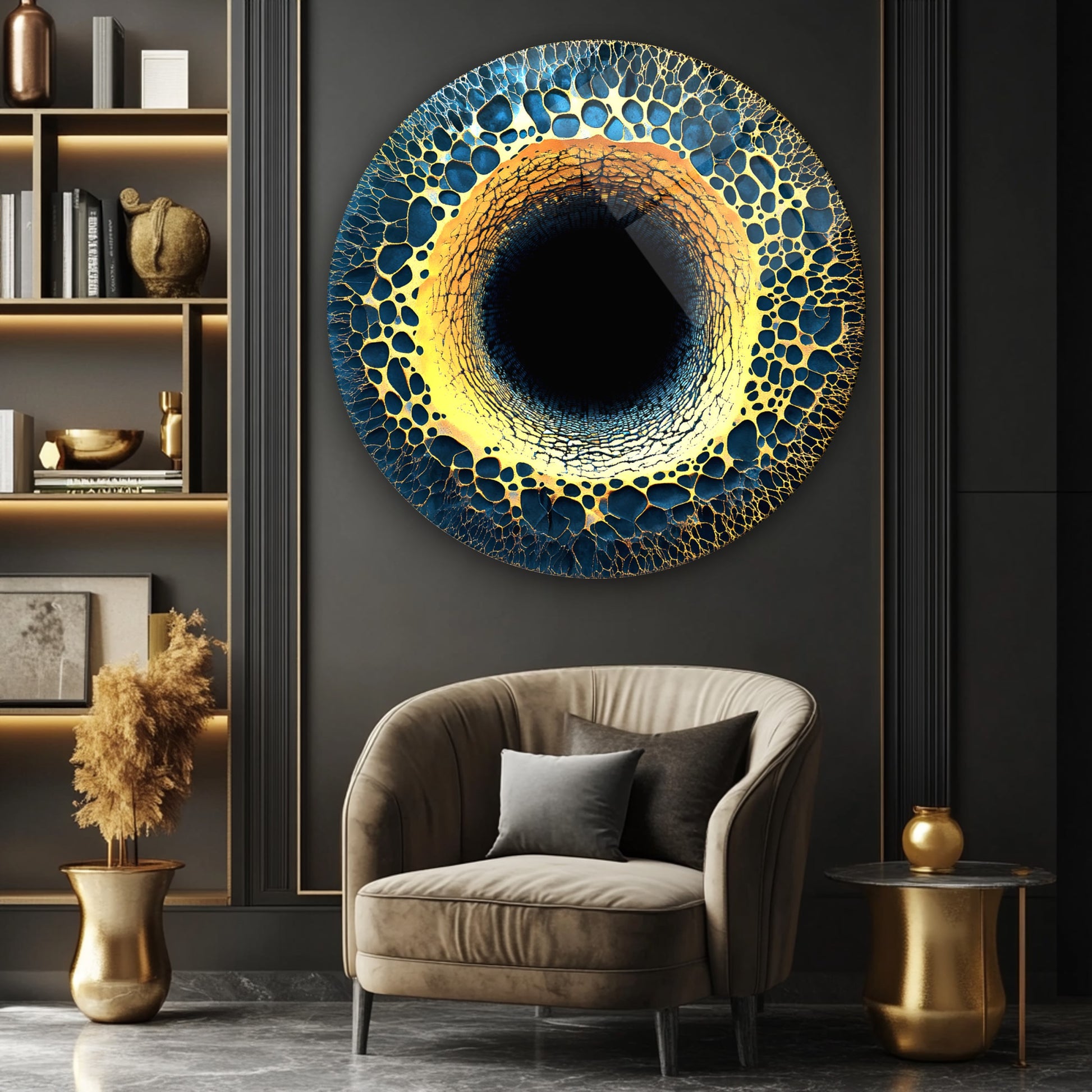 Soyut Gold Yuvarlak Cam Tablo