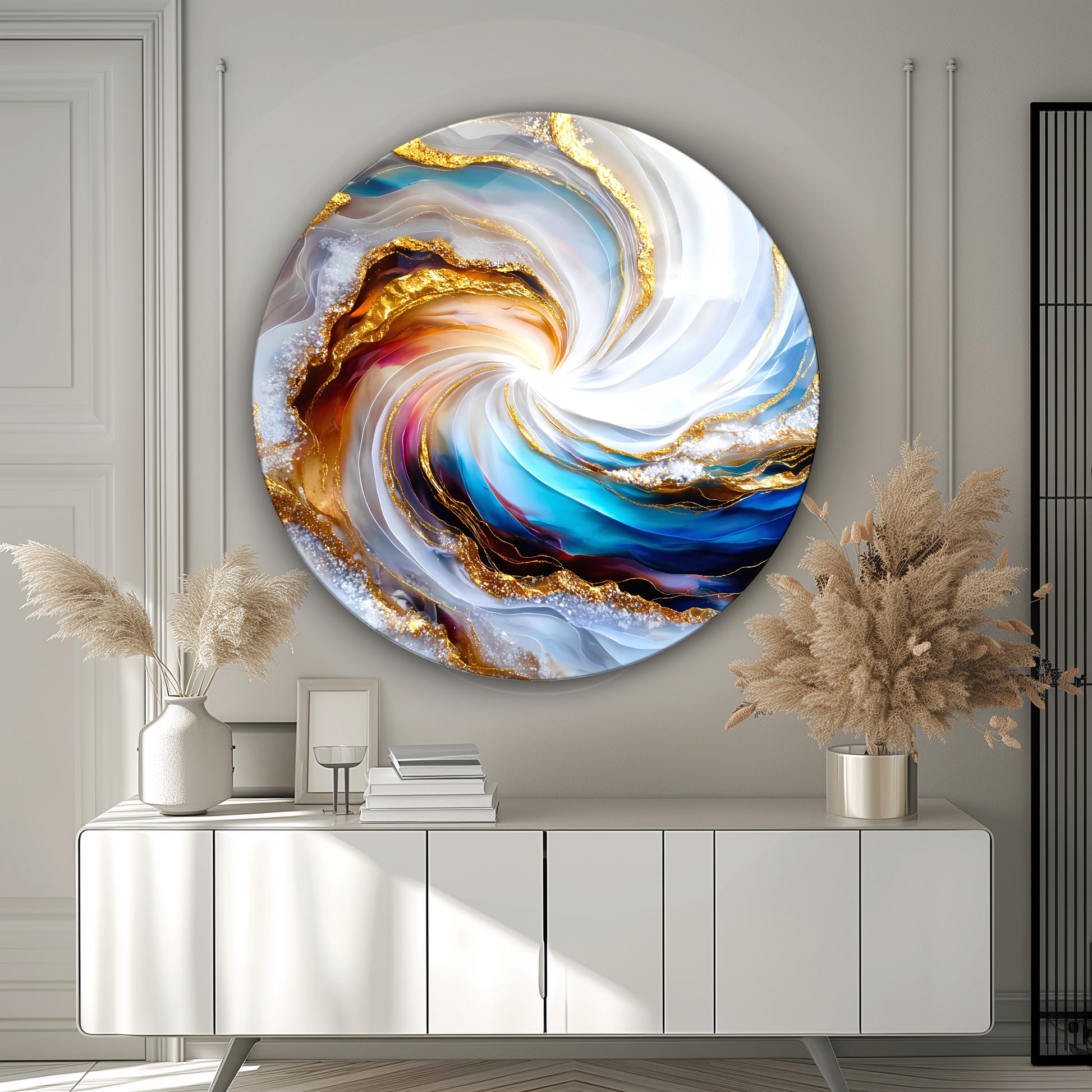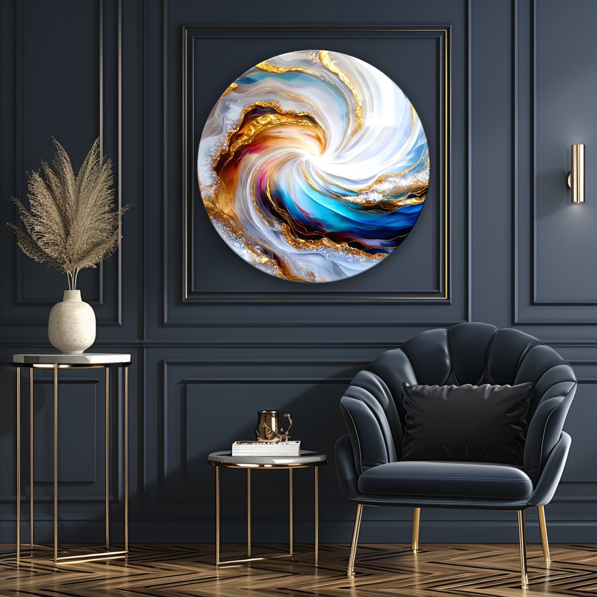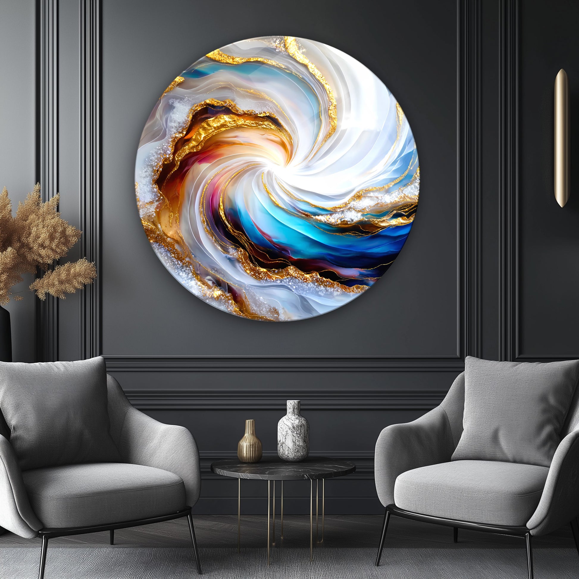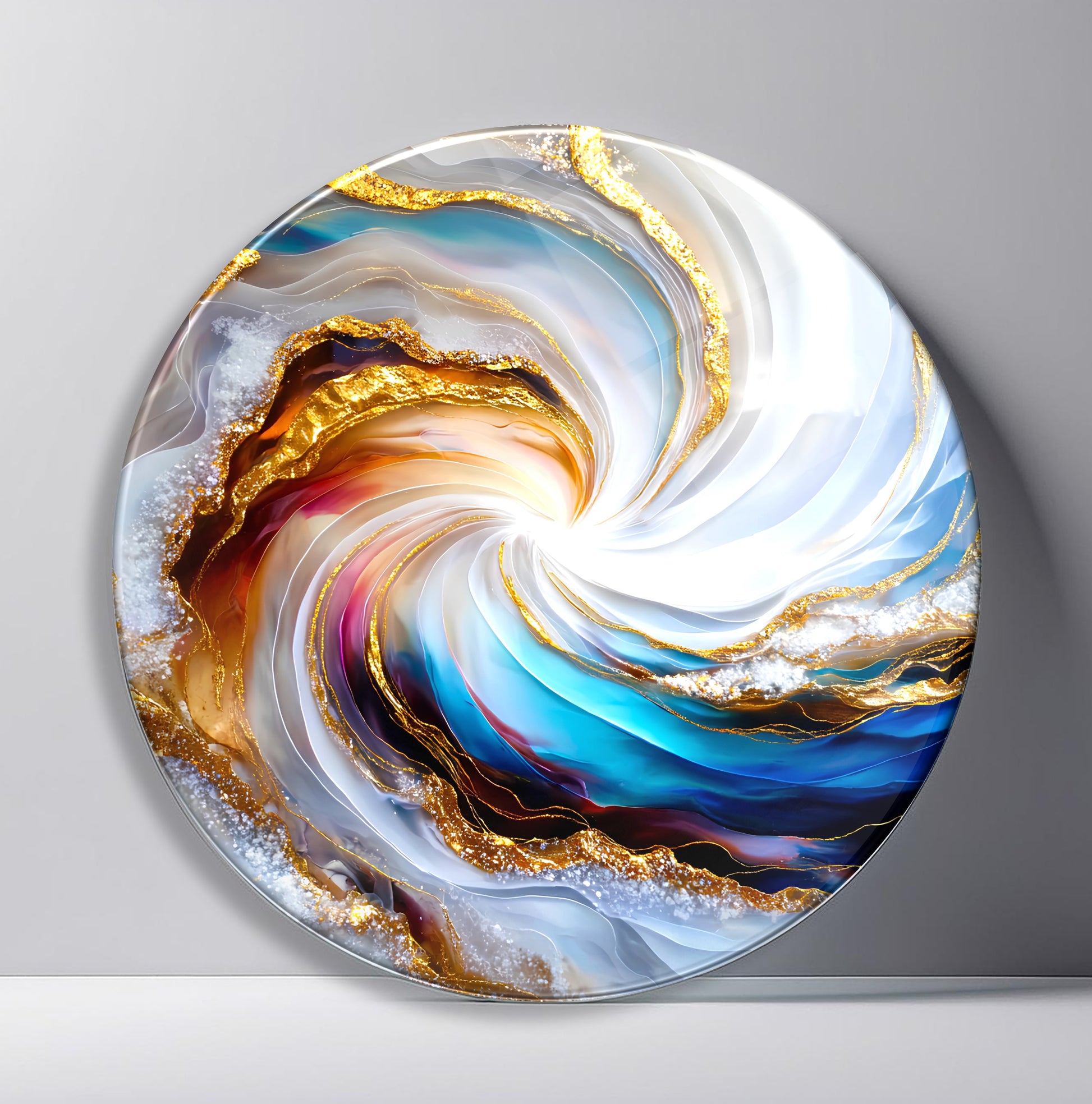Gold Soyut Döngü Yuvarlak Cam Tablo