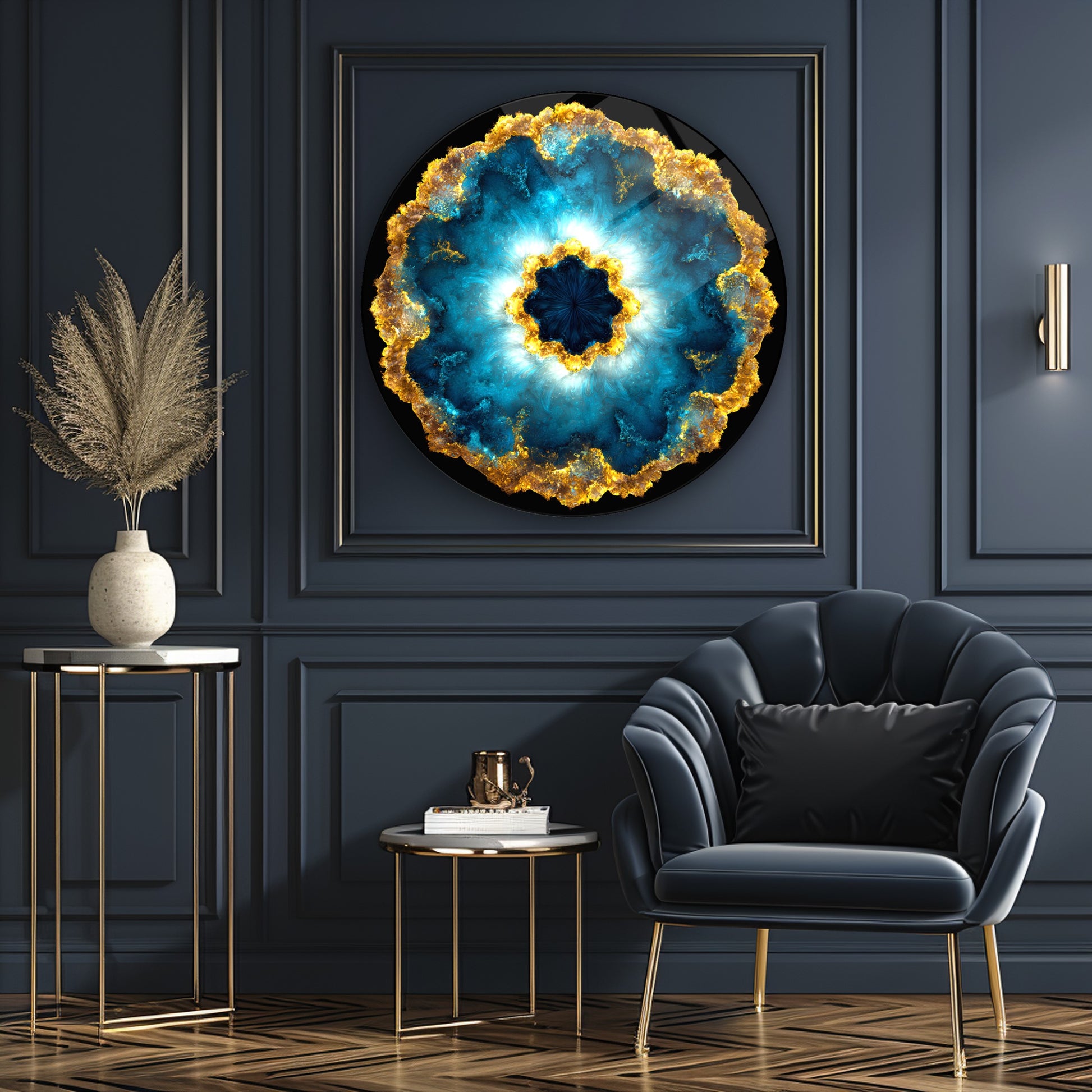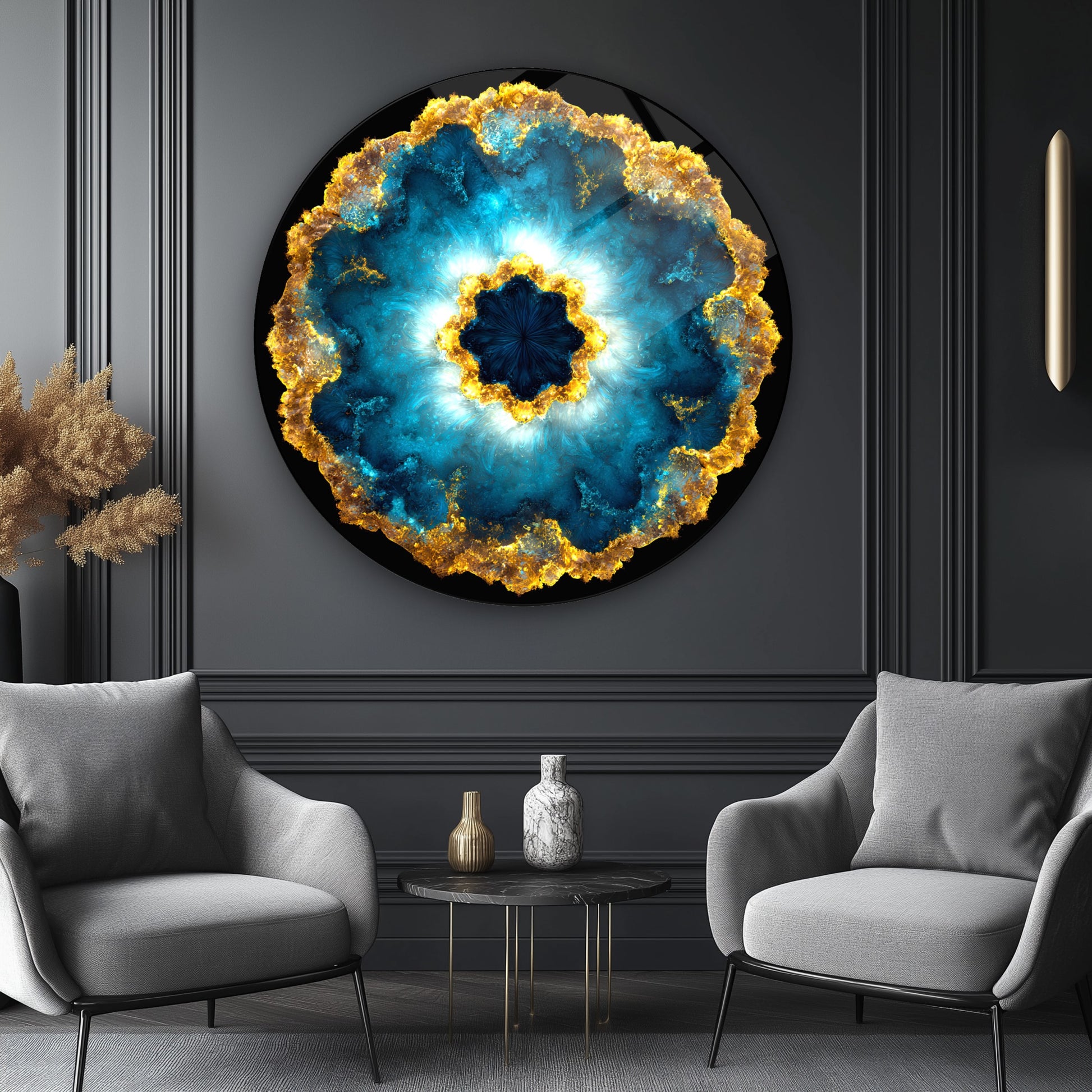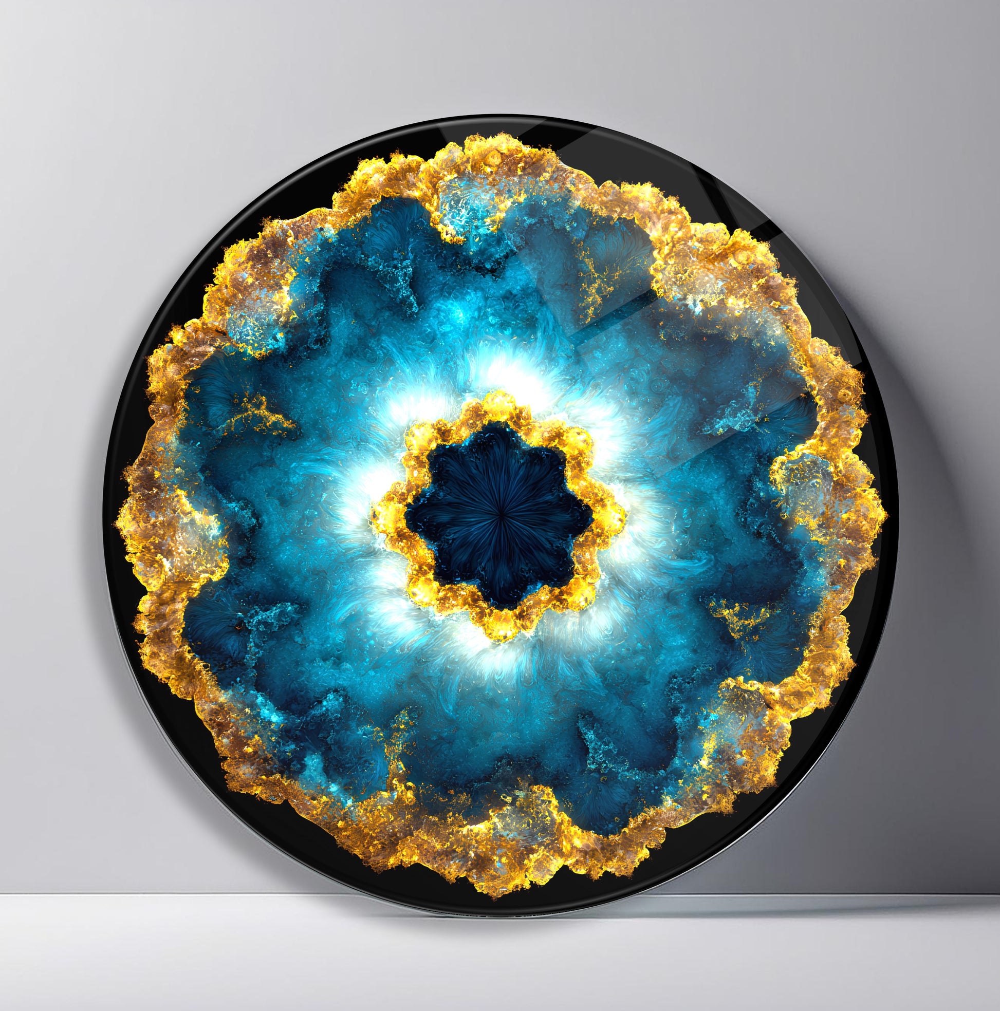 Soyut Gold Mavi Yuvarlak Cam Tablo