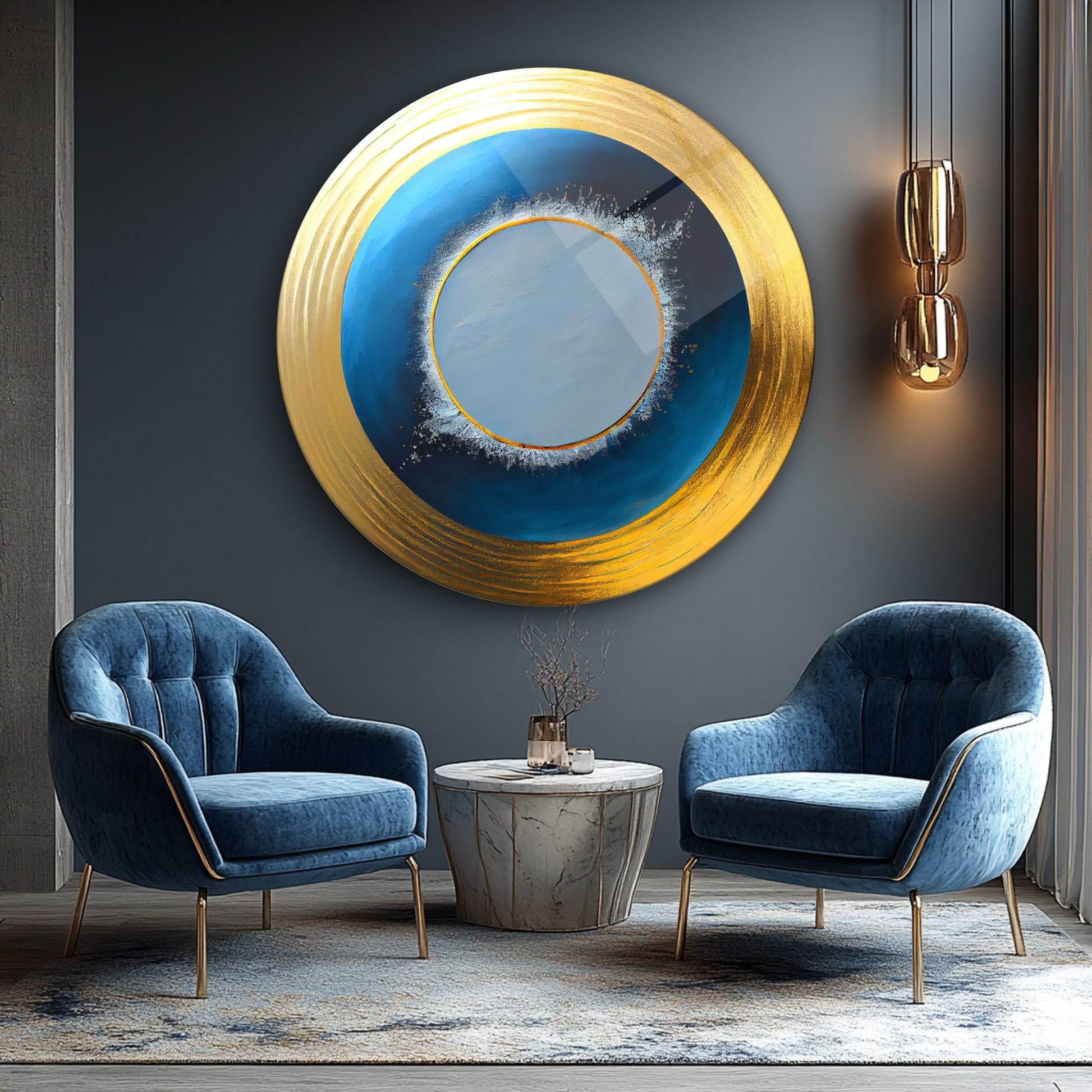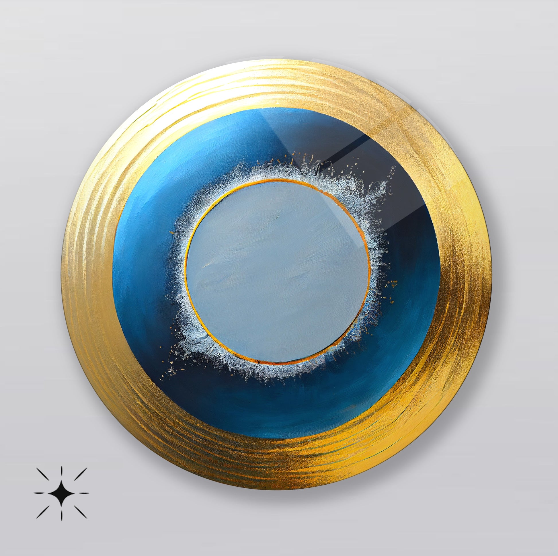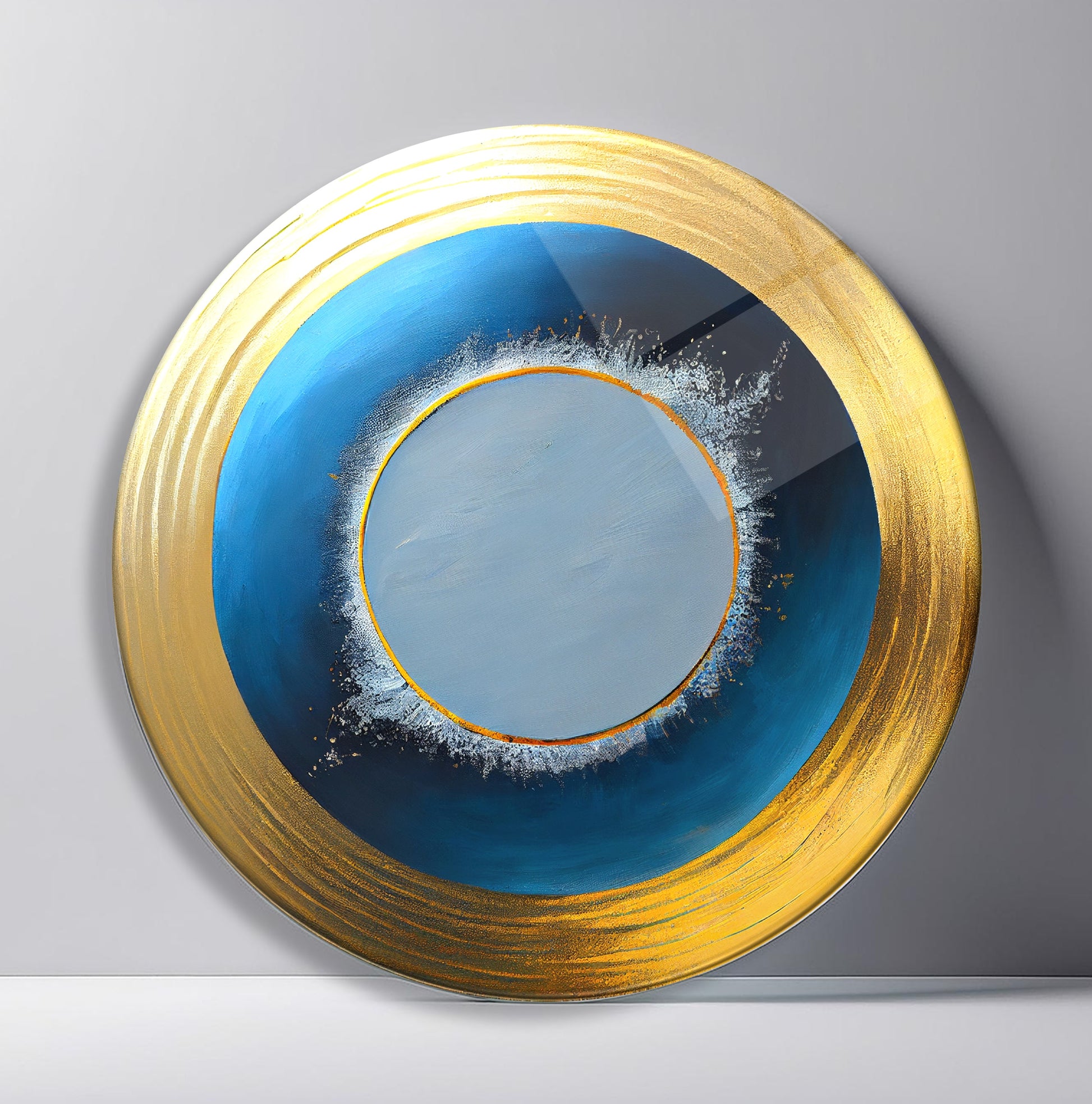 Soyut Gold Mavi Yuvarlak Cam Tablo