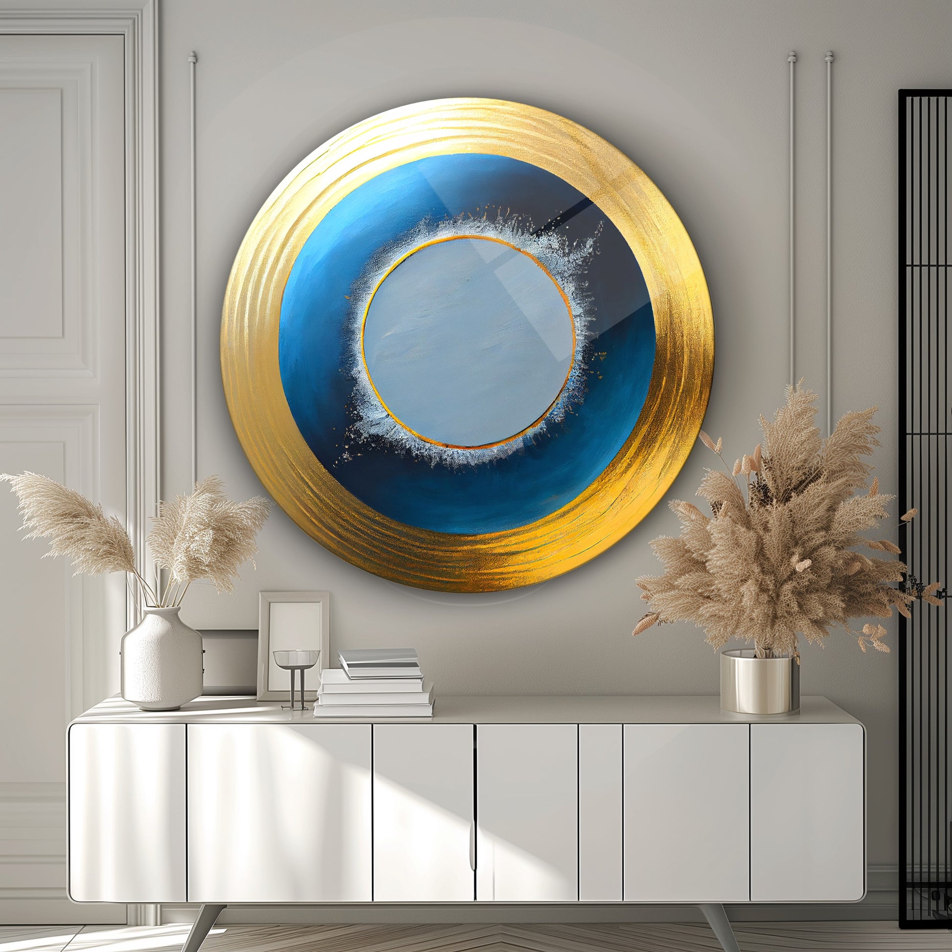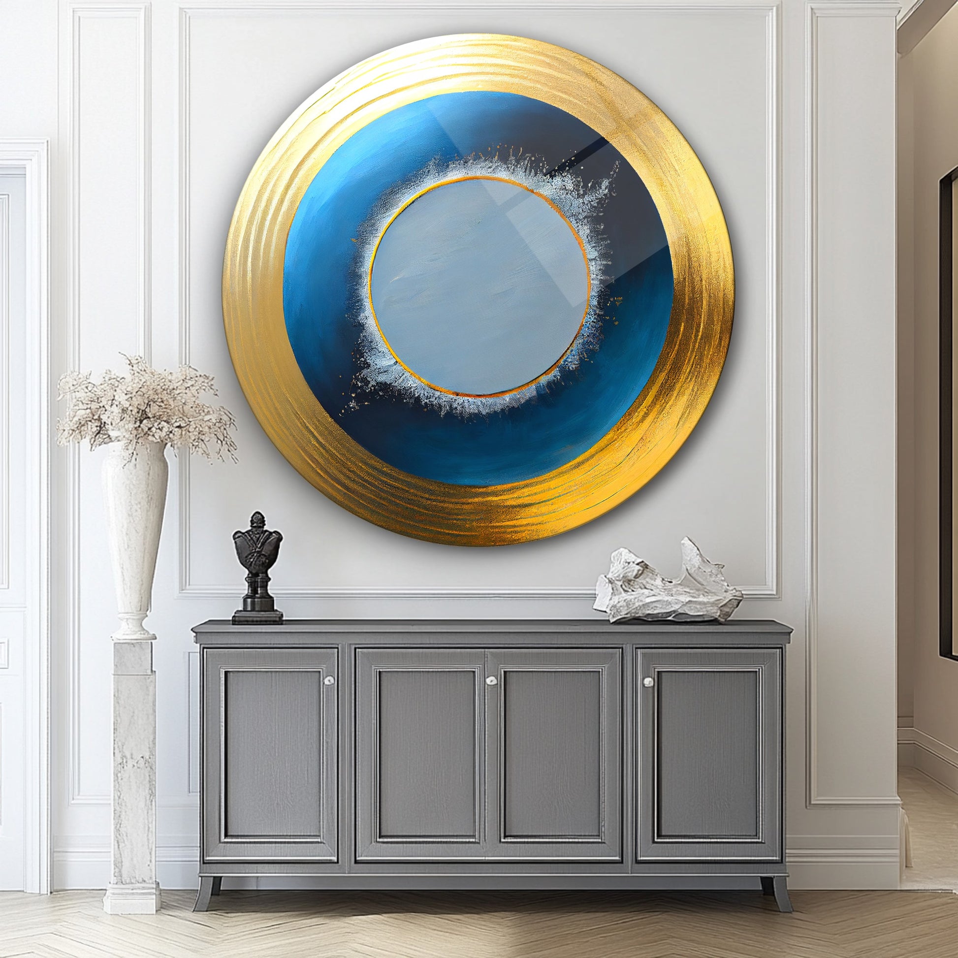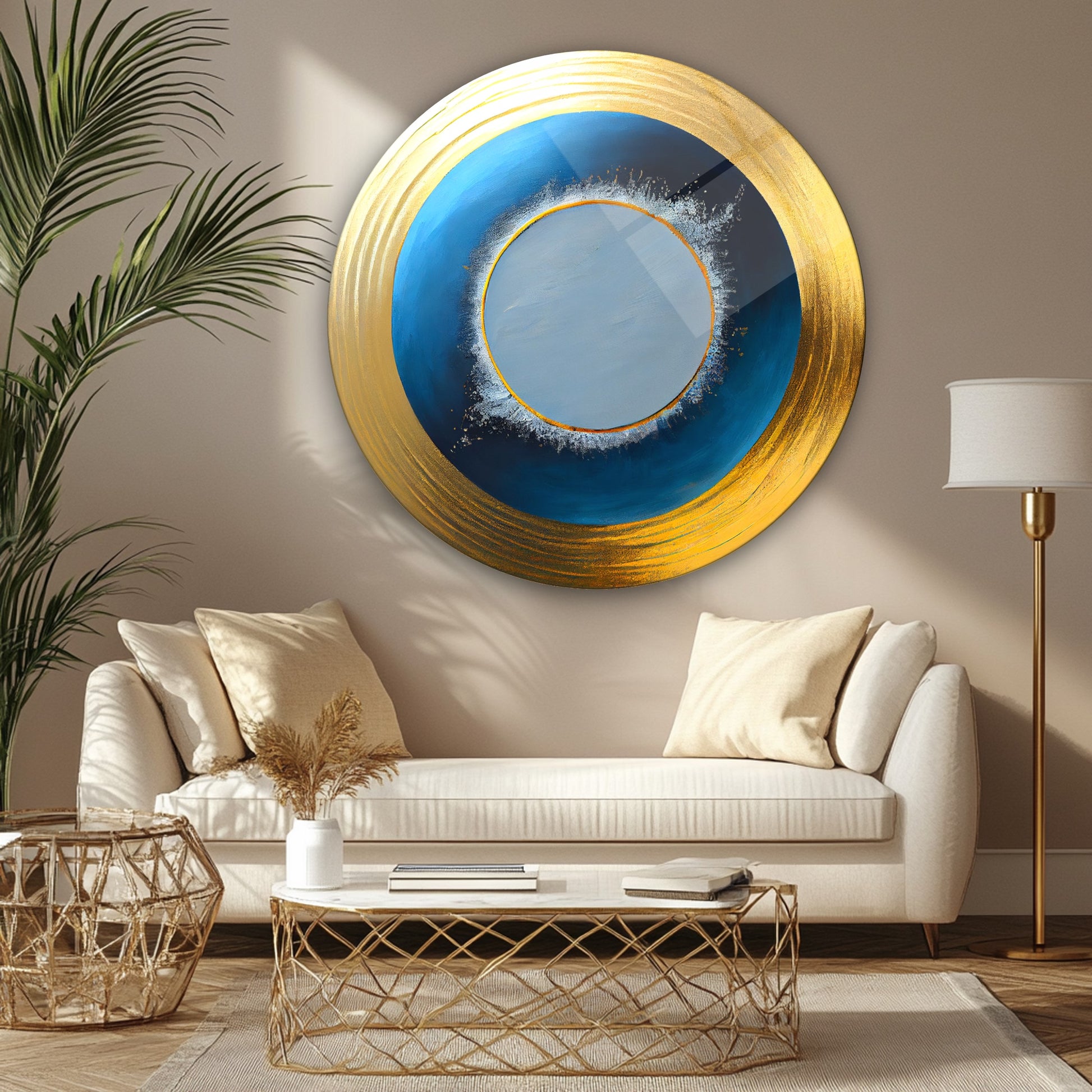 Soyut Gold Mavi Yuvarlak Cam Tablo