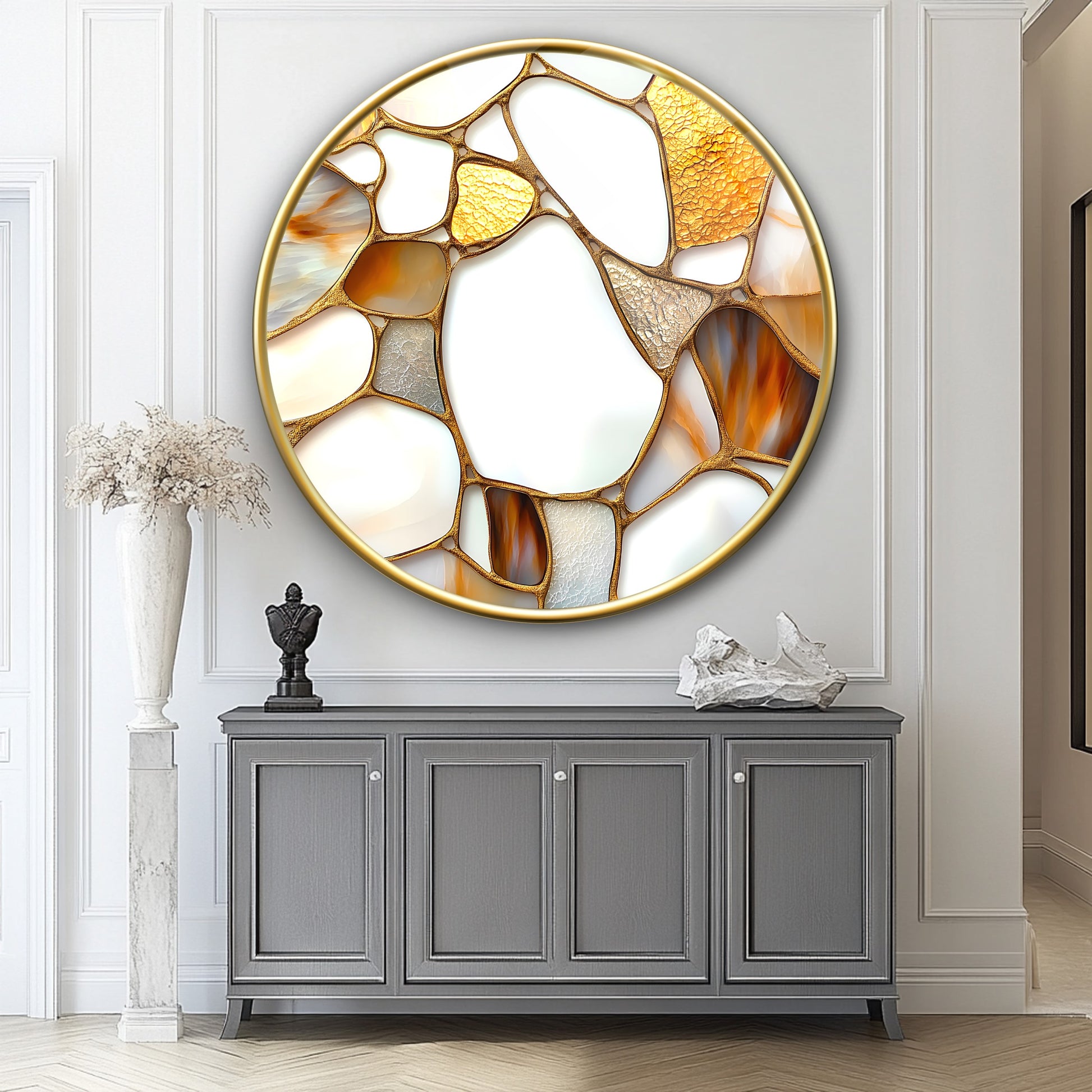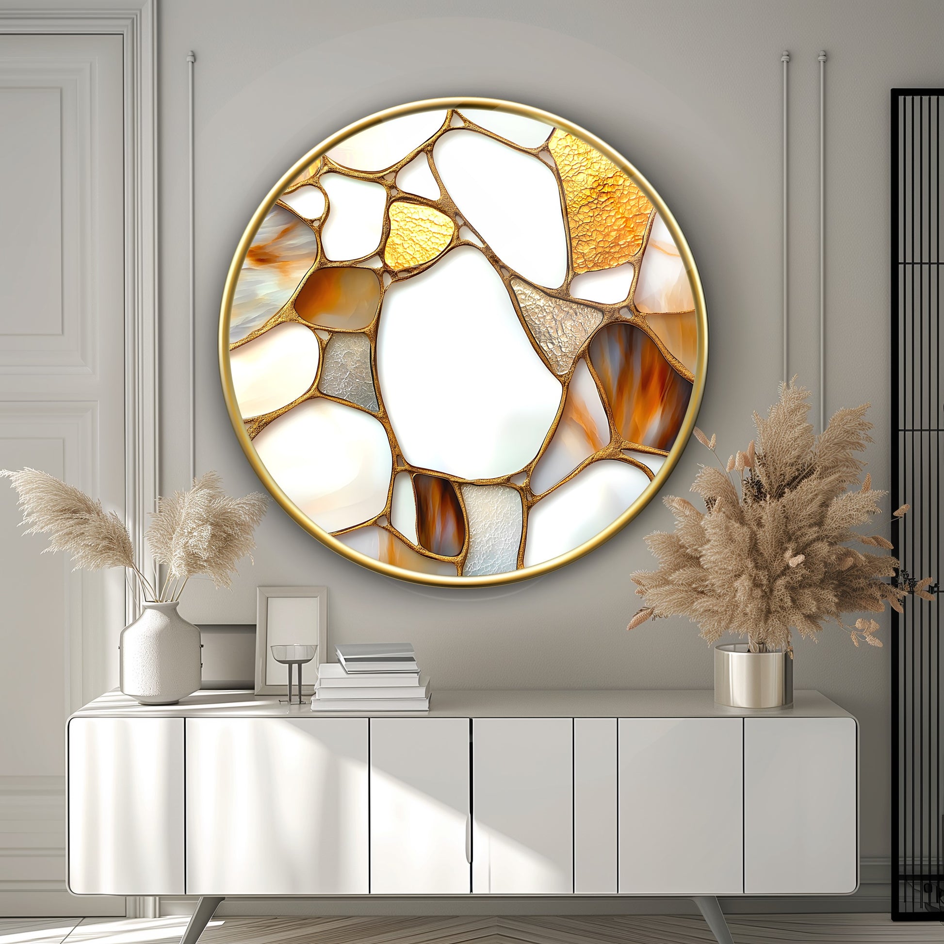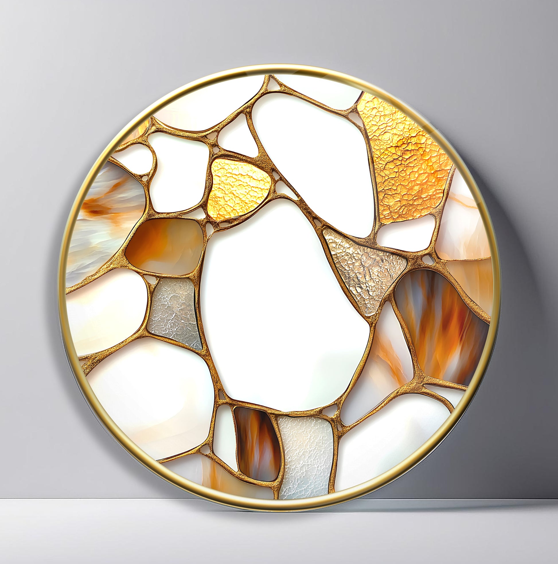 Soyut Gold Mermer Desen Yuvarlak Cam Tablo