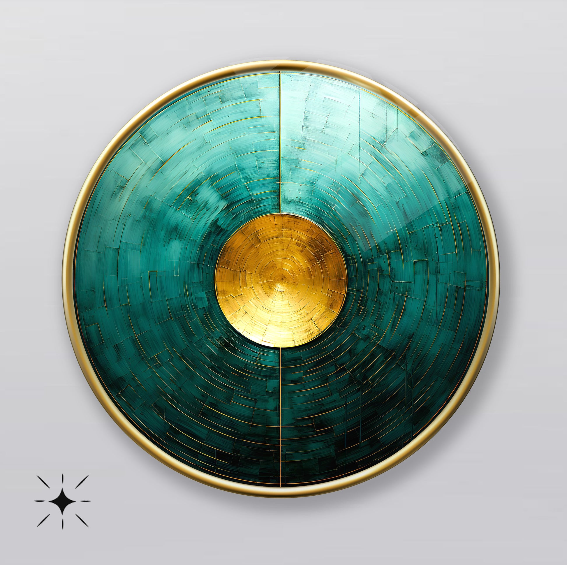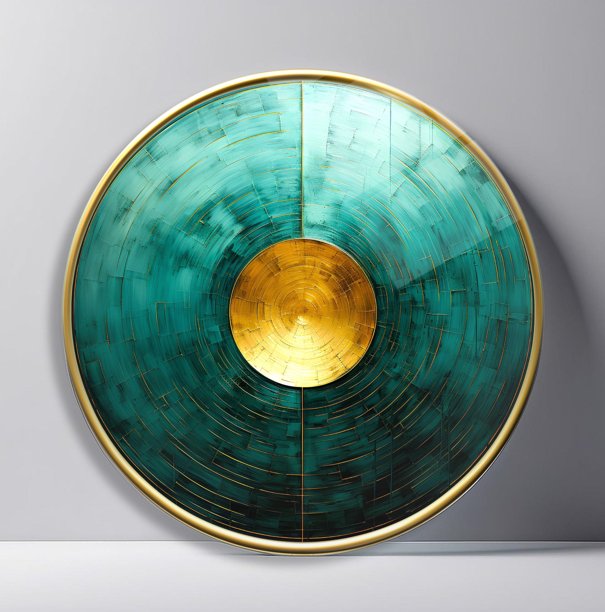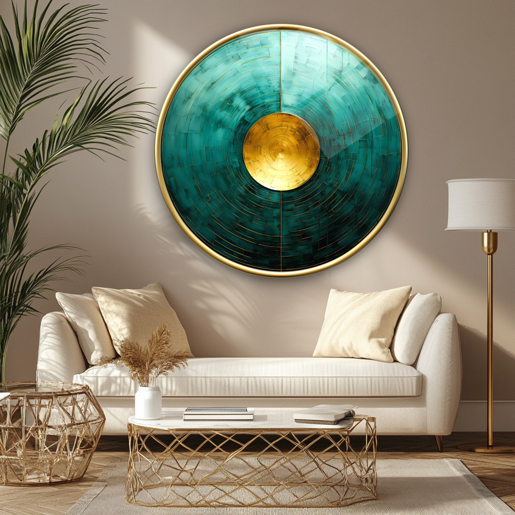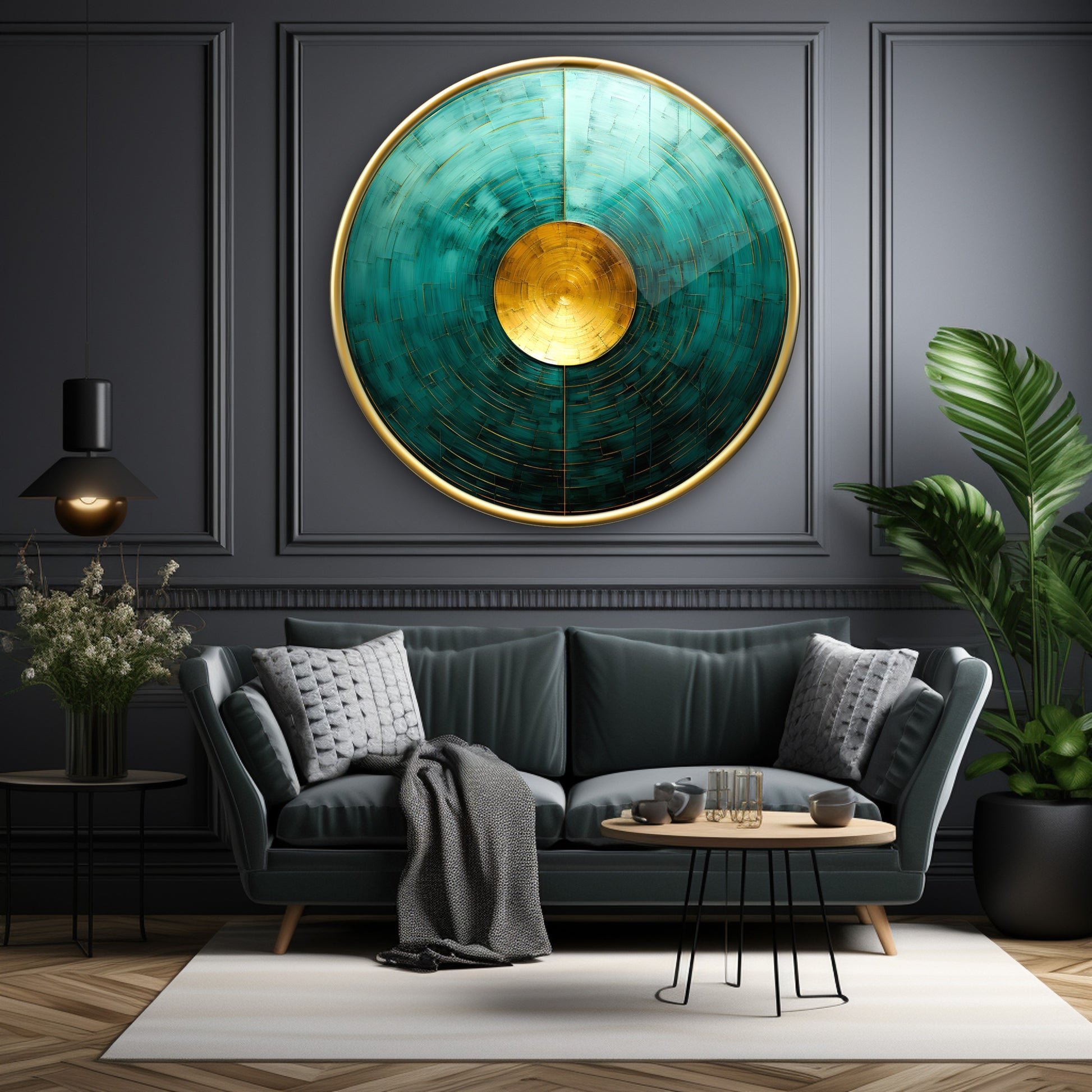 Soyut Gold Yeşil Yuvarlak Cam Tablo