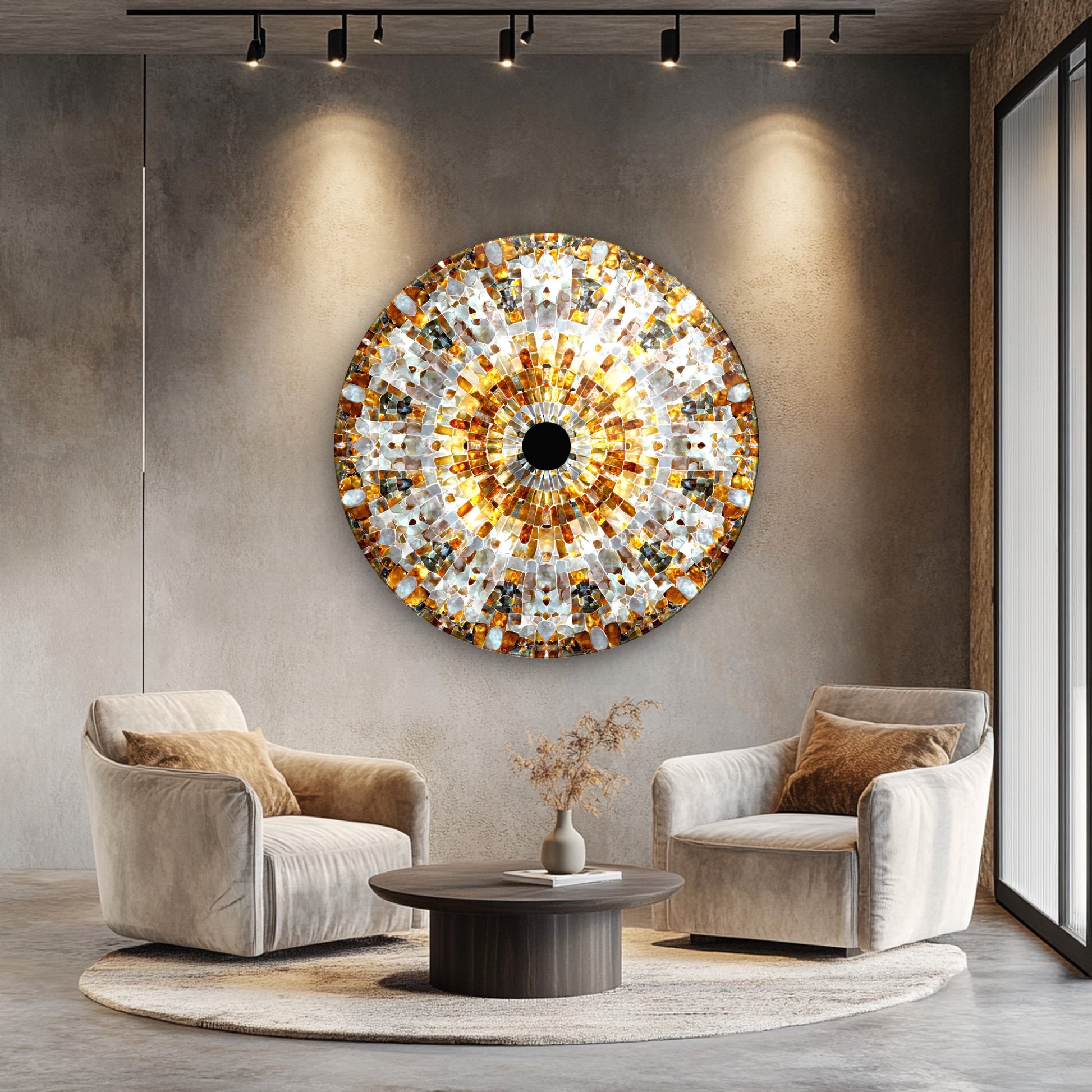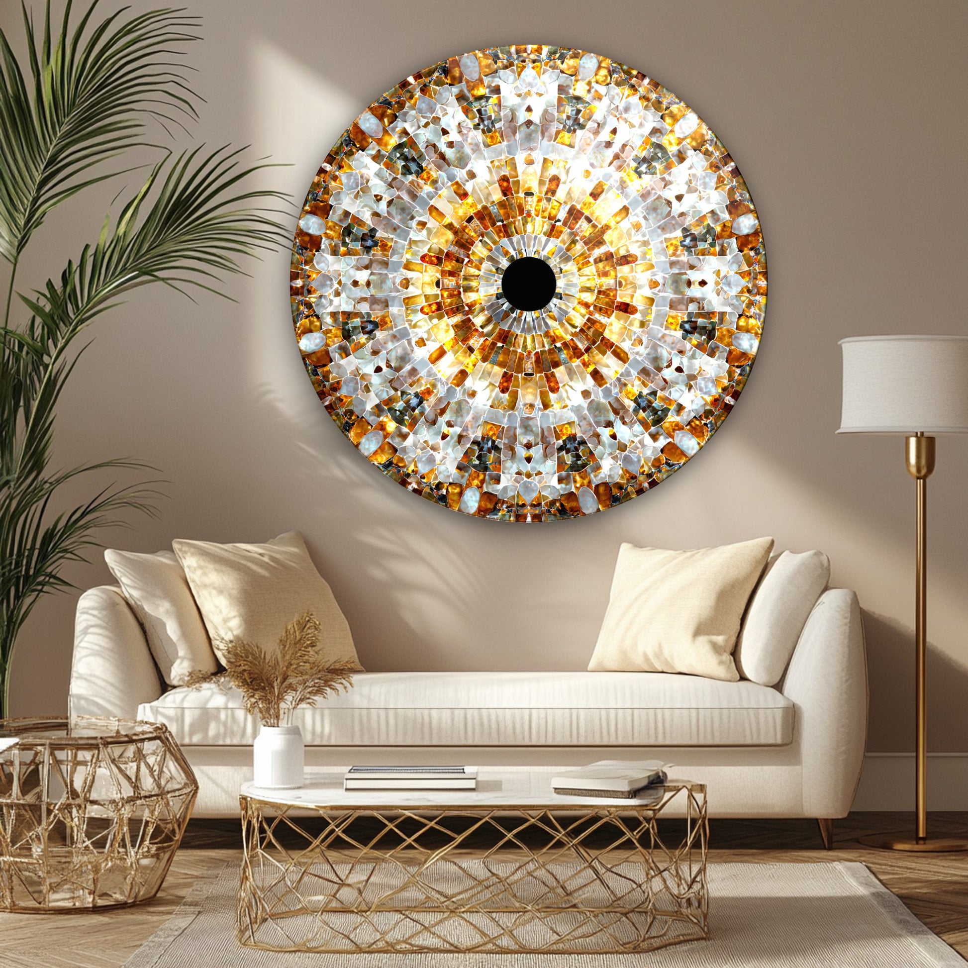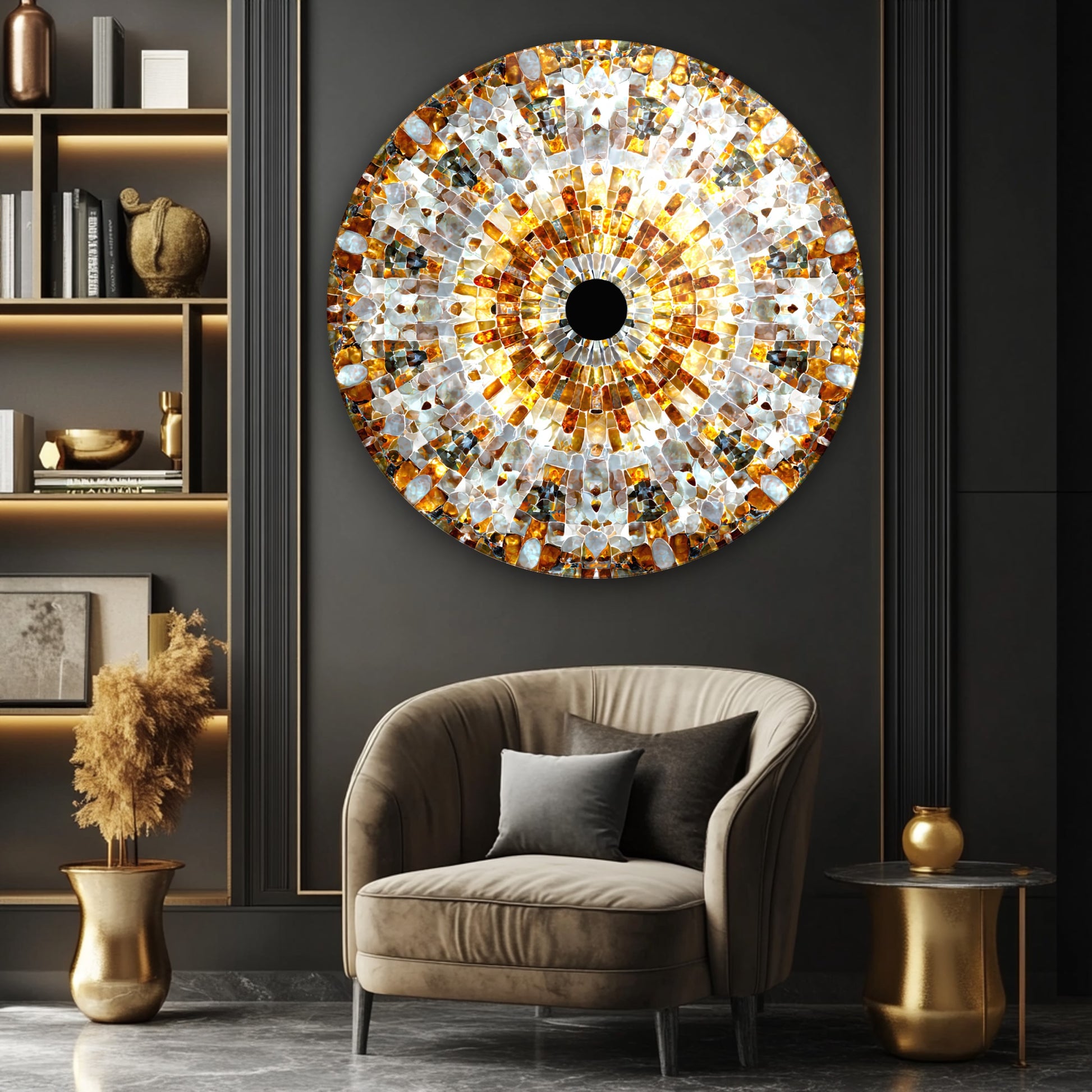 Gold Soyut Mozaik Yuvarlak Cam Tablo