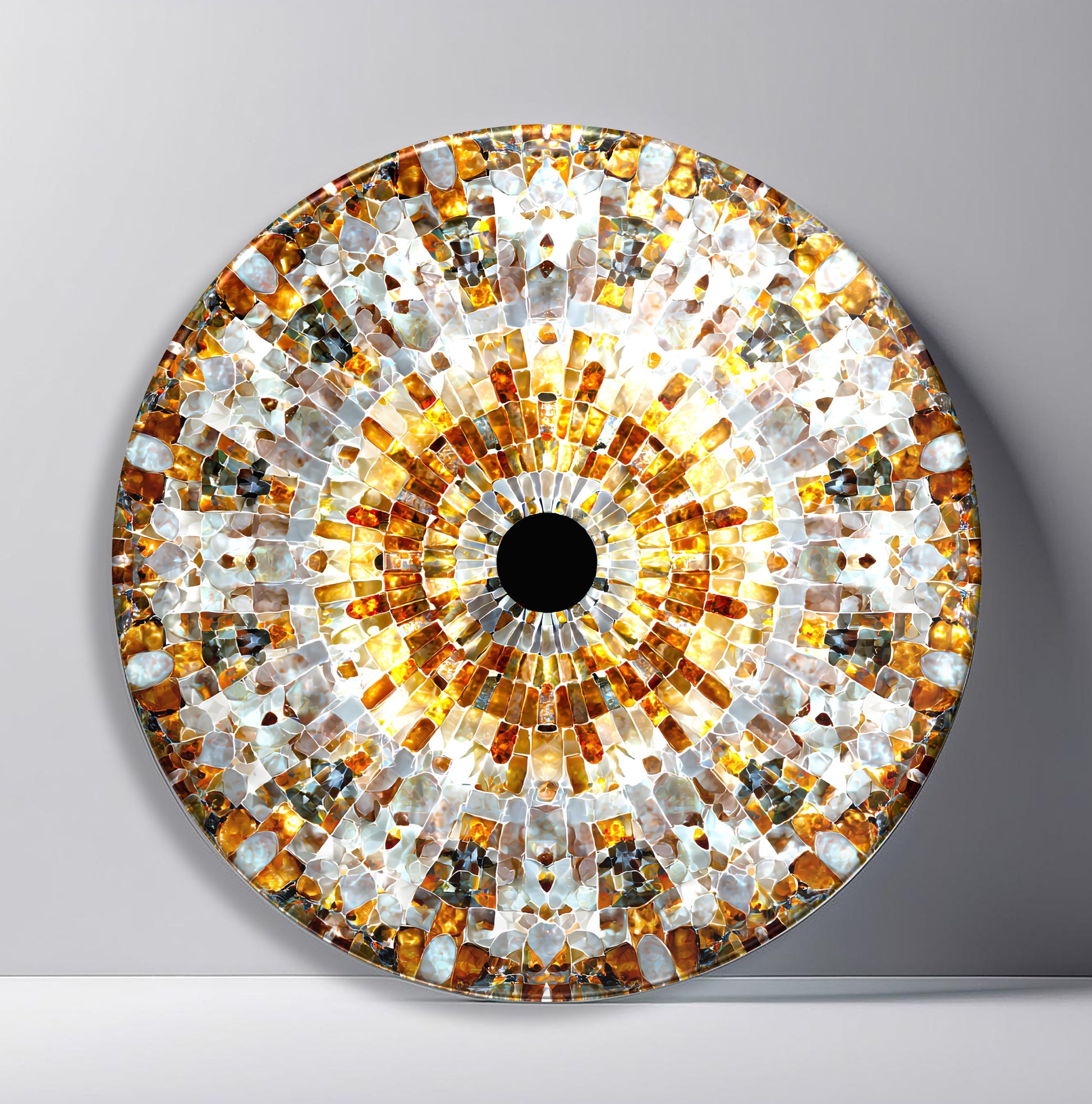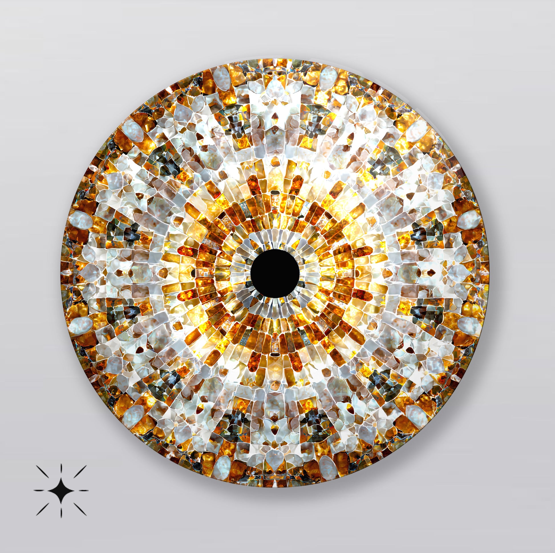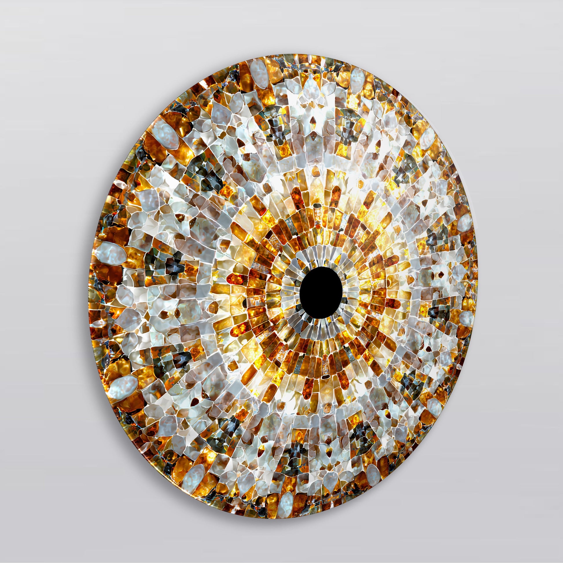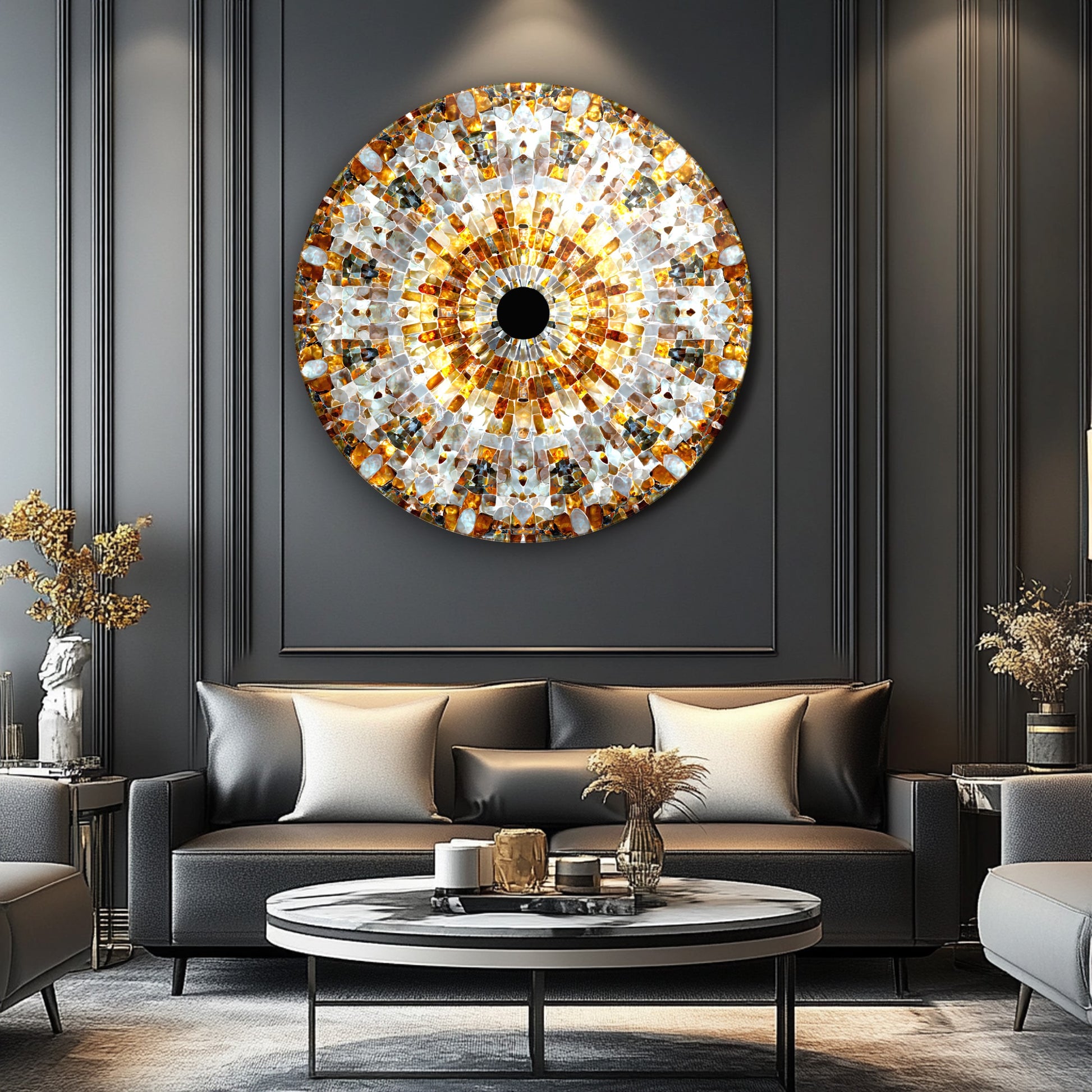 Gold Soyut Mozaik Yuvarlak Cam Tablo