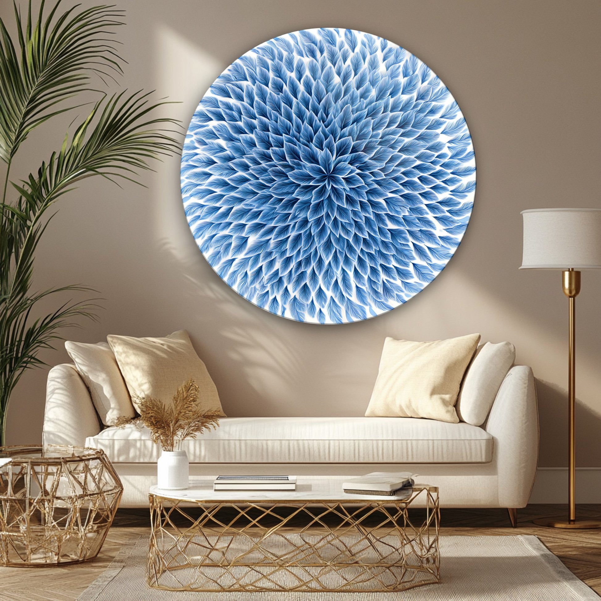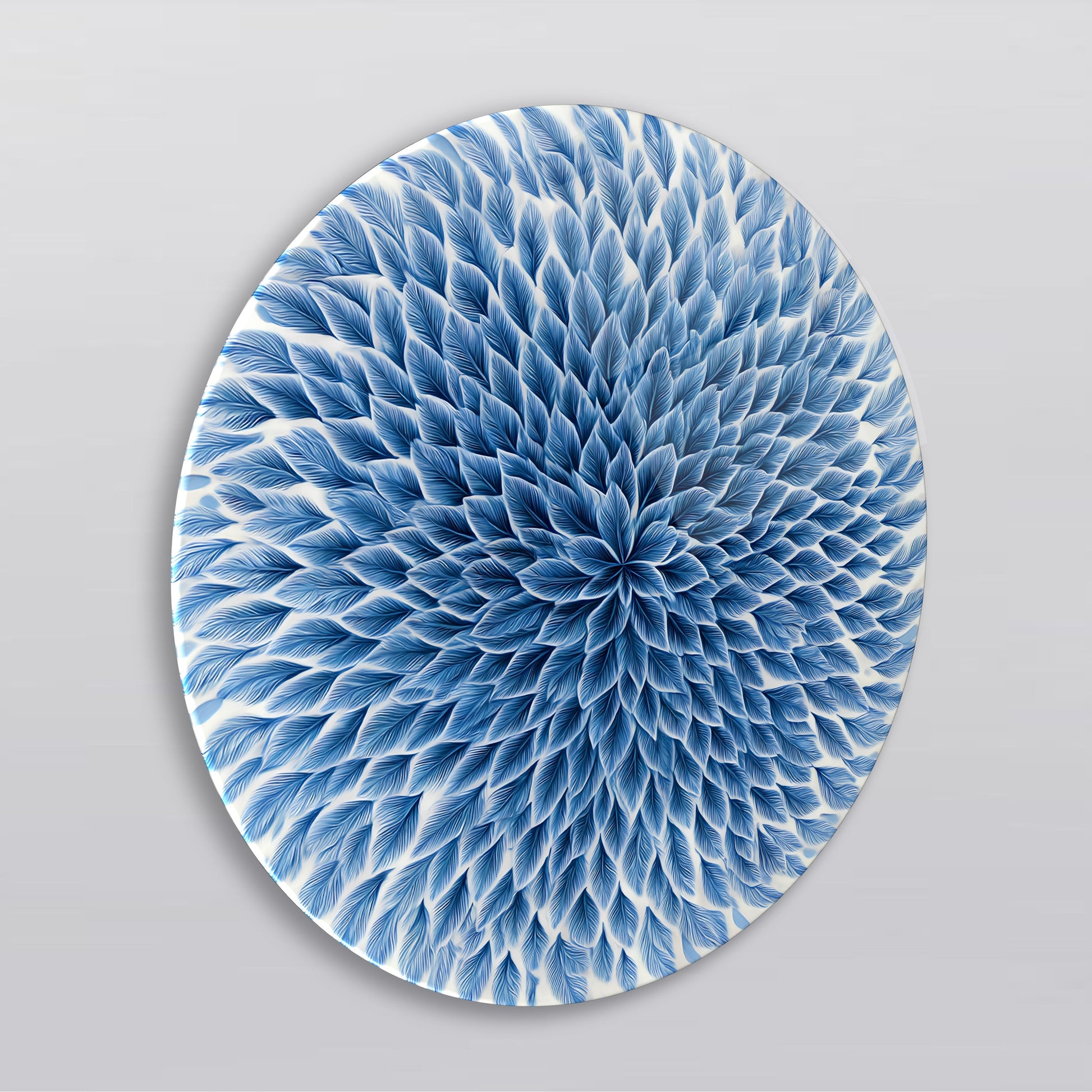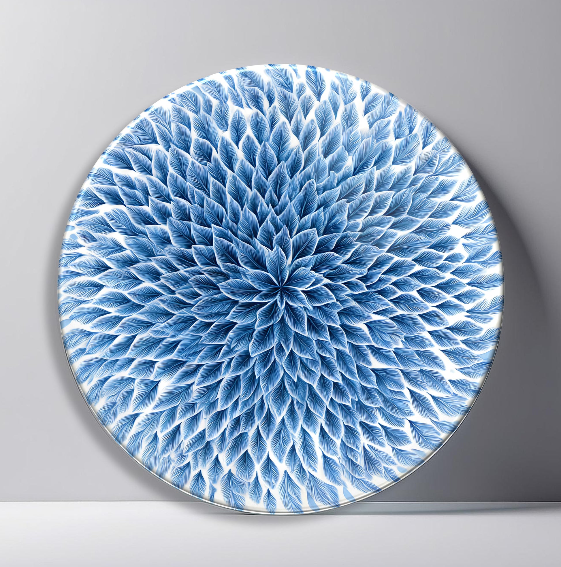 Mavi Çiçek Yuvarlak Cam Tablo