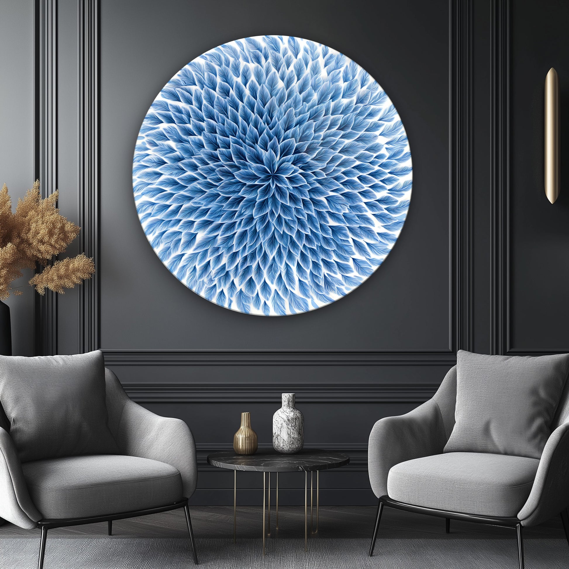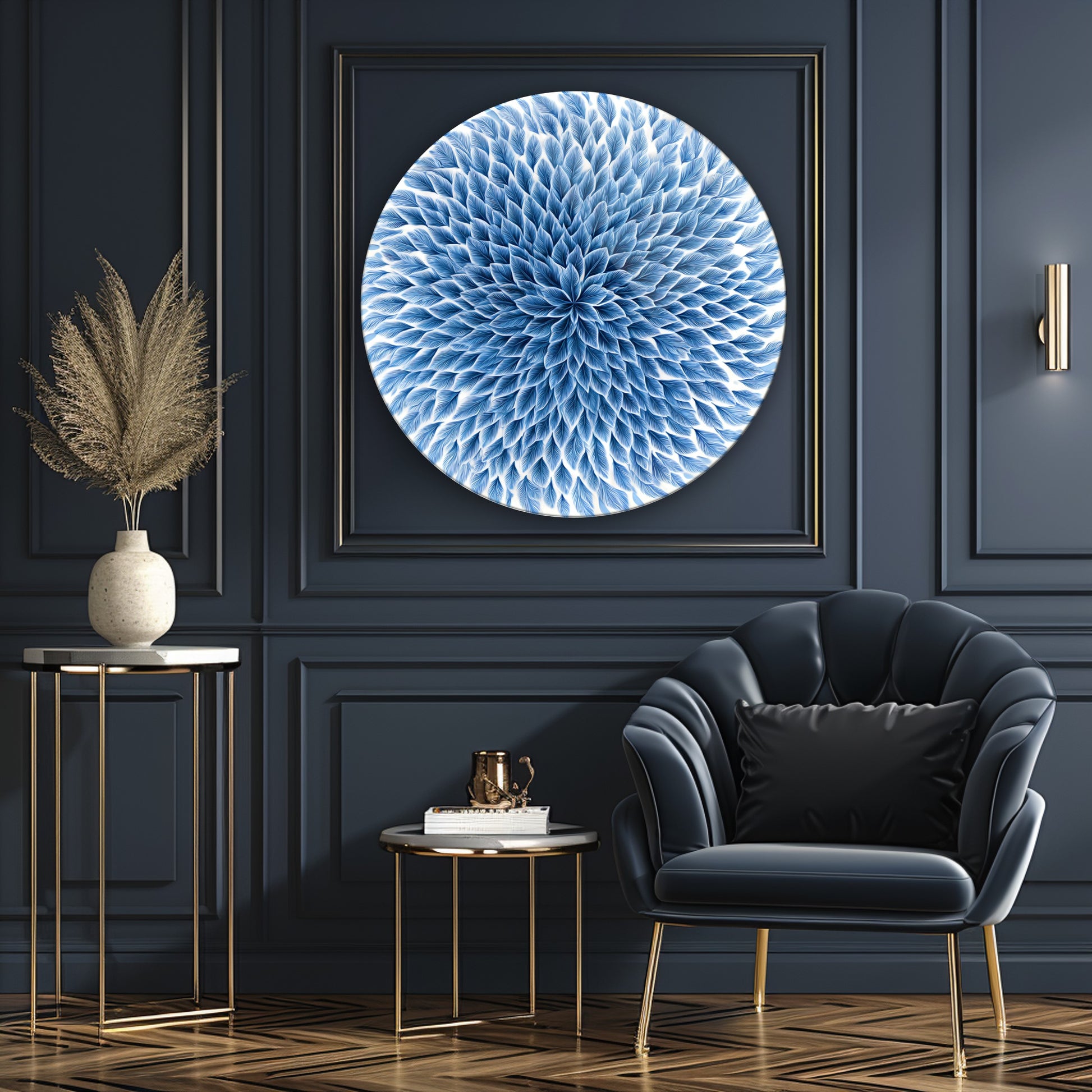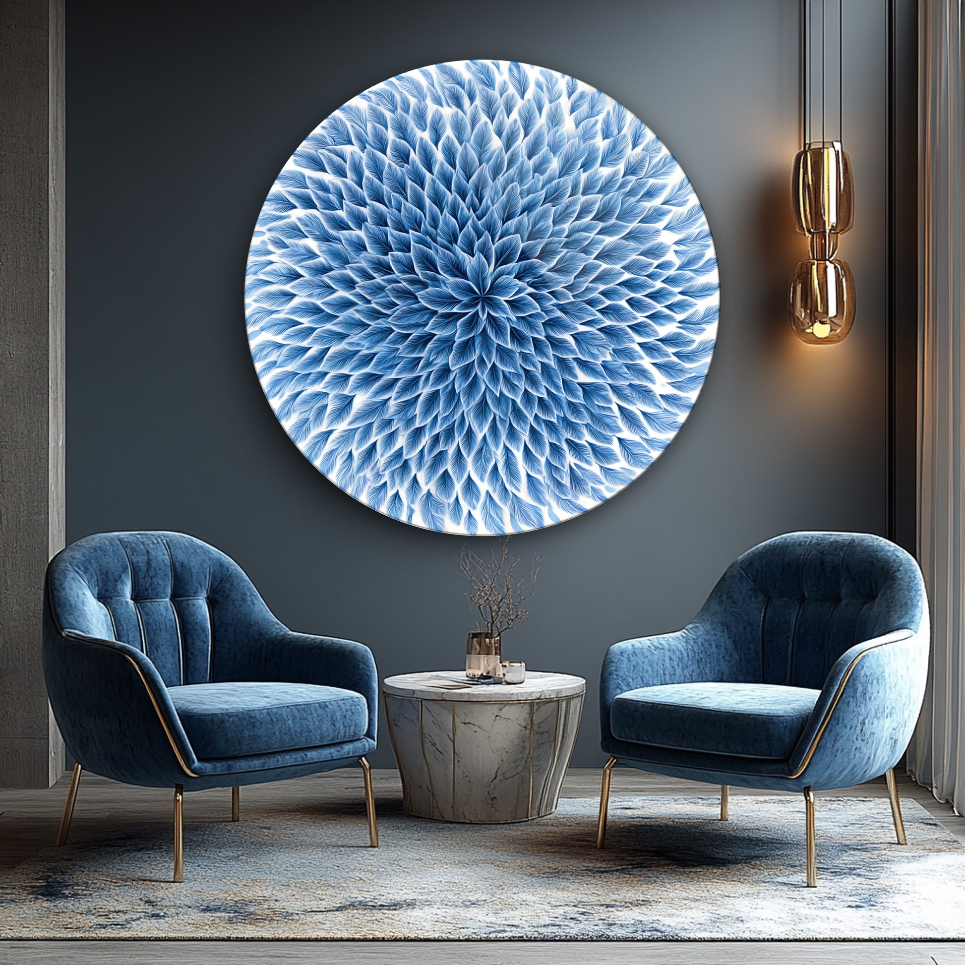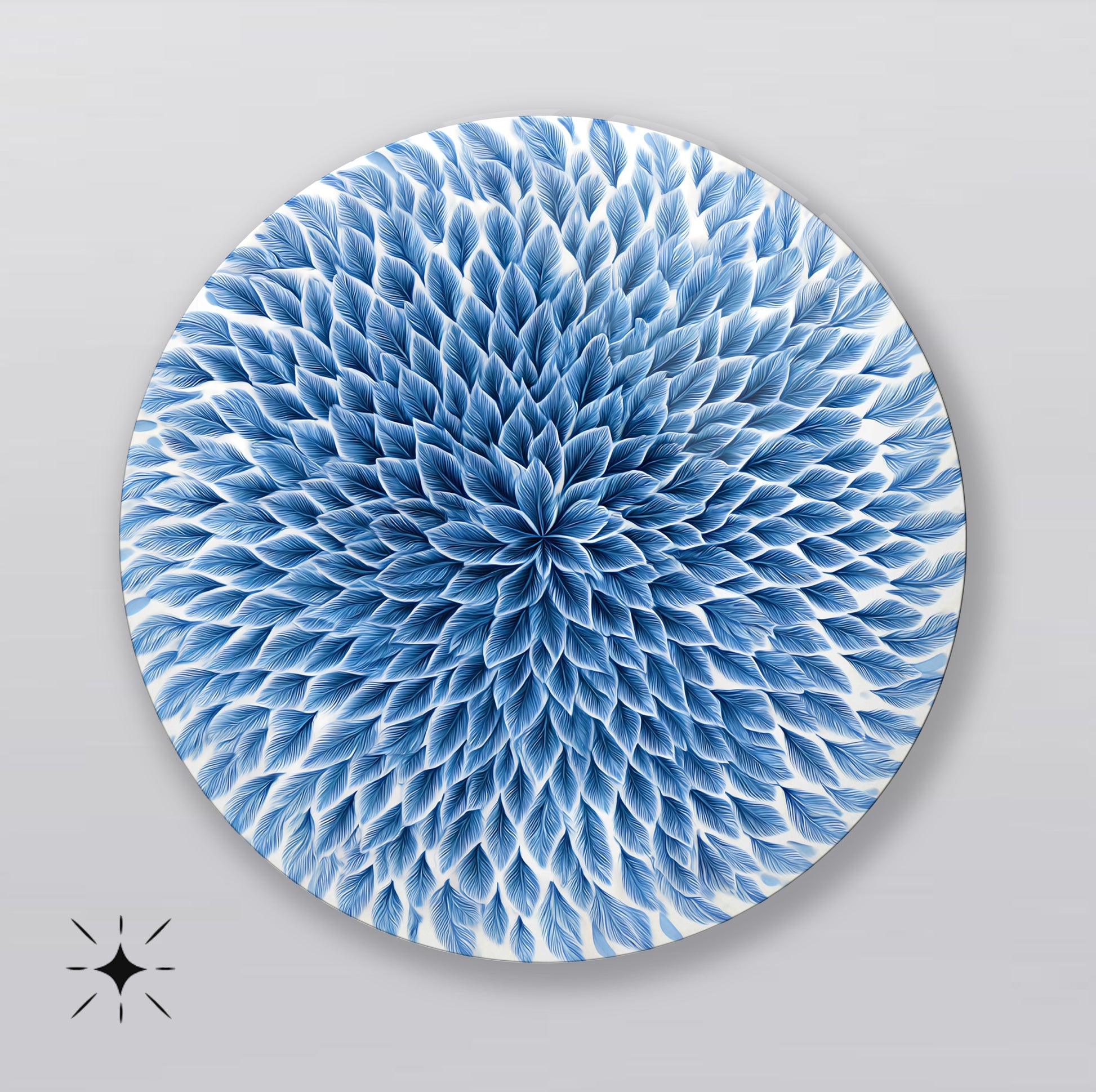 Mavi Çiçek Yuvarlak Cam Tablo